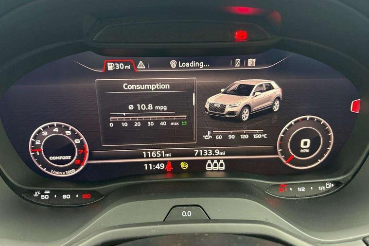 Audi connect navigation and infotainment includes innovative services, Audi connect remote and control connects your vehicle to your smartphone, Audi drive select, Audi drive select with efficiency, Audi smartphone interface, Audi virtual cockpit, Automatic start/stop system with recuperation, Bluetooth interface includes bluetooth audio streaming, Cruise control, E-call, MMI navigation plus with MMI touch, Power operated tailgate, Progressive steering, Rear parking sensors, 2 x SDXC card reader, 6 passive loudspeakers, DAB Digital radio, DVD Drive, Auto dimming rear view mirror, Black window trims, Bumper in full body colour paint finish, Electrically adjustable, folding, auto dimming and heated door mirrors with integrated LED side indicators, Front windscreen with grey tinted sunband, LED daytime running lights, LED headlights with LED rear lights, LED third brake light, Privacy glass - dark tinted rear and rear side windows from B-pillar backwards, Rear side wing doors, Rear wiper, Variable front intermittent wipers, Wheel arch trims in manhattan grey, 12v socket in front, 3 seat bench in 2nd row, 3 spoke flat bottomed multi-function leather sport steering wheel, 4-way electric lumbar support for front seats including seat height adjustment for both front seat, 60/40 split folding rear seat bench, Black cloth headlining, Front and rear head restraints, Front centre armrest, Front/rear floor mats, Height/reach adjust steering wheel, Illuminated door sill trims with S logo, ISOFIX child seat mounting in front passenger and rear outer seats, Single front passenger seat, Stainless steel pedals, Black styling pack - Q2, 3x3 point rear seatbelts, 6 airbags - Front, curtain and front side airbags, Electromechanical parking brake, Electronic stabilisation control including ABS, ASR and EDL, Front passenger airbag deactivation, Hill hold assist, Pre-sense front with pedestrian recognition, Seatbelt monitoring, Tyre pressure warning light, Warning triangle and first aid kit, Anti theft alarm, Anti theft wheel bolts, Electronically operated child locks, Remote central door locking, Aluminium interior element, Matt brushed aluminium trim inlays, Tool kit,