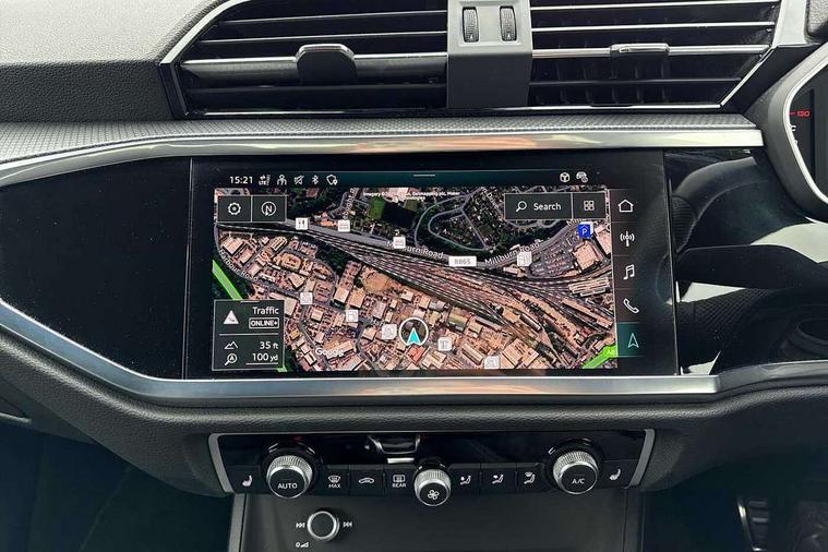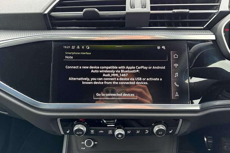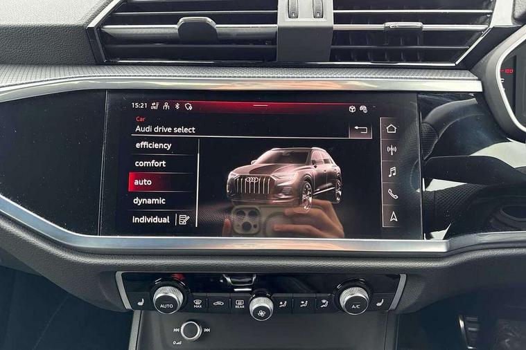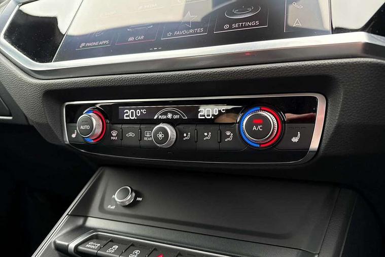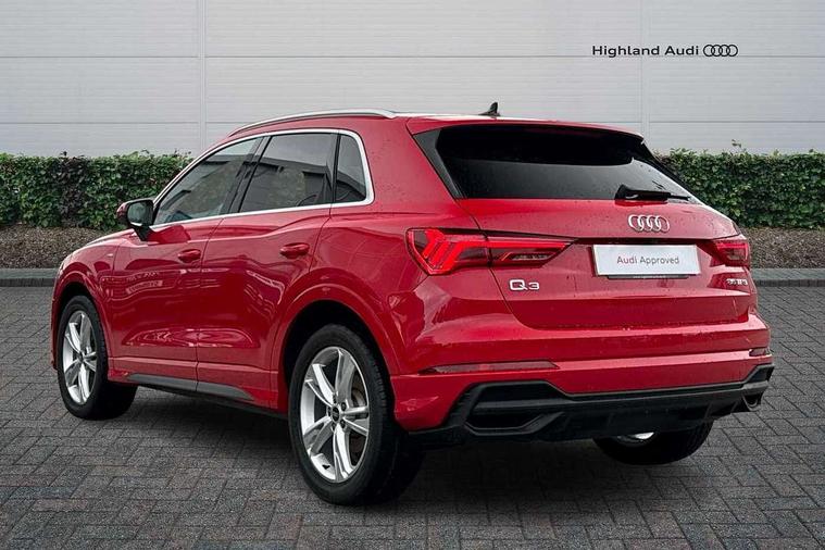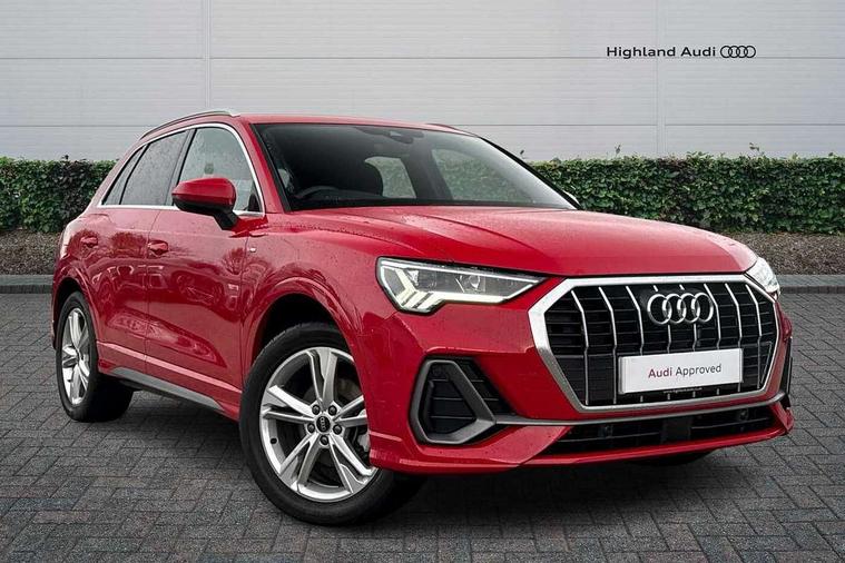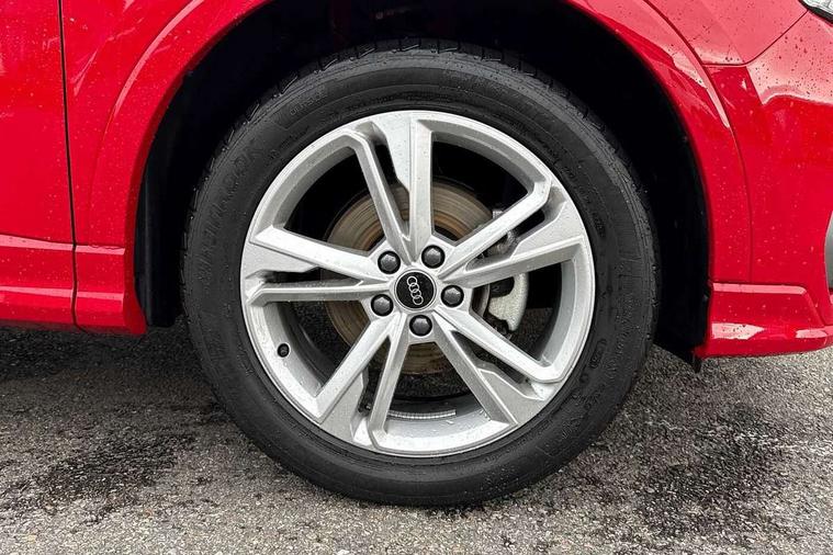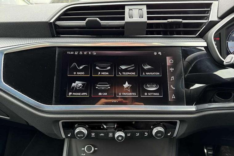 Amazon alexa Integration, Audi drive select, Audi lane departure warning, Audi Virtual Cockpit - 10.25" display, Bluetooth interface, Camera based traffic sign recognition, Legal emergency call, MMI Navigation Plus with high resolution 10.1 inch touchscreen colour display, Power operated tailgate, Progressive steering, Service interval indicator, Smartphone interface includes wireless Apple carplay/Android Auto, Start stop system with recuperation, Voice control system with natural language interaction, Sports suspension, 2 USB-C ports with charge and data functions, 6 passive loudspeakers, DAB digital radio module, Acoustic windscreen, Aluminium roof rails, Aluminium window trim, Auto dimming frameless rear view mirror, Body colour front spoiler blade, Body coloured bumpers, Electrically folding, adjustable and heated door mirrors with integrated LED side indicators and kerb view function for passenger side, Front and rear electric windows, Front fog lights, Front side air inlets in matt platinum grey, Grille vertical bars in aluminium silver/Matt, High gloss black finish B and C pillars, LED Dynamic rear indicators, LED headlights with LED daytime running lights, LED rear lights, LED third brake light, Privacy glass dark tinted rear and rear-side windows (from B-pillar backwards), Rain and light sensors, Rear diffuser grille in grained matt black, Rear diffuser strip in matt titanium black, Rear side wing doors, Rear wiper, S line badges on front wings, S Line front and rear bumpers, Side skirt insert in matt Platinium grey, Titanium black radiator grille, Variable front intermittent wipers, 12V socket in rear centre console, 3 seat bench in 2nd row, 40:20:40 folding with manual adjustment for 60:40 forwards/backwards position and backrest angle, Adjustable rear seat bench/backrest with centre armrest and cupholder, Black cloth headlining, Dual zone electronic climate control, Front and rear black floor mats with contrast stitching in rock grey, Front and rear headrests, Front and rear roof module including reading lights, Front centre armrest, Glove compartment lighting, Height and reach adjustable steering wheel, Illuminated door sill trims with S logo, ISOFIX child seat mounting for front passenger with airbag deactivation and outer rear seat including top tether attachment point for outer rear seats, Luggage compartment light, Manual front seats with height adjustment, Perforated leather gearknob, Single front passenger seat, Stainless steel luggage compartment sill finisher, Stainless steel pedals, Ambient lighting pack - Q3, Non smoking pack - Q3, 3x3 point rear seatbelts, 6 airbags - Driver, front passenger, curtain and side windows, Audi pre-sense front with pedestrain and cyclist recognition, Electrically operated child locks on rear doors, Electromechanical parking brake, Electronic stabilisation control including ABS, ASR and EDL, Front seatbelt reminder, Hill descent control, Hill hold assist, Pre sense basic, Seatbelt monitoring, Tyre pressure warning, Warning triangle and first aid kit, Anti theft alarm, Anti theft wheel bolts, Immobiliser, Remote central locking, Dark matt brushed aluminium inlay, Detail dashboard around MMI touch colour display in glass look, black with surround in aluminium look, Leatherette door armrest,