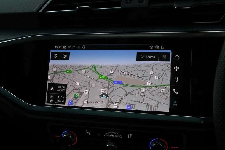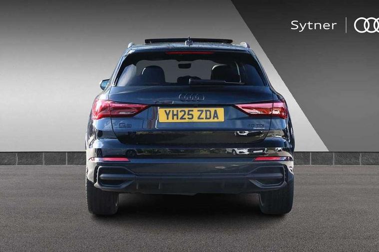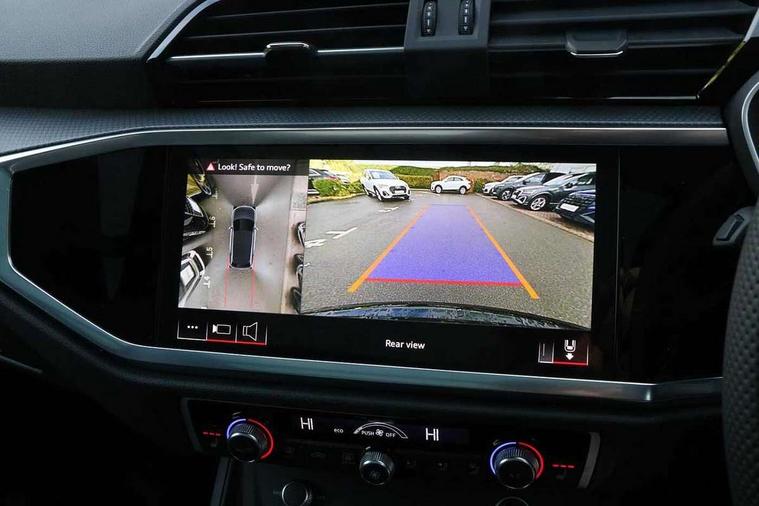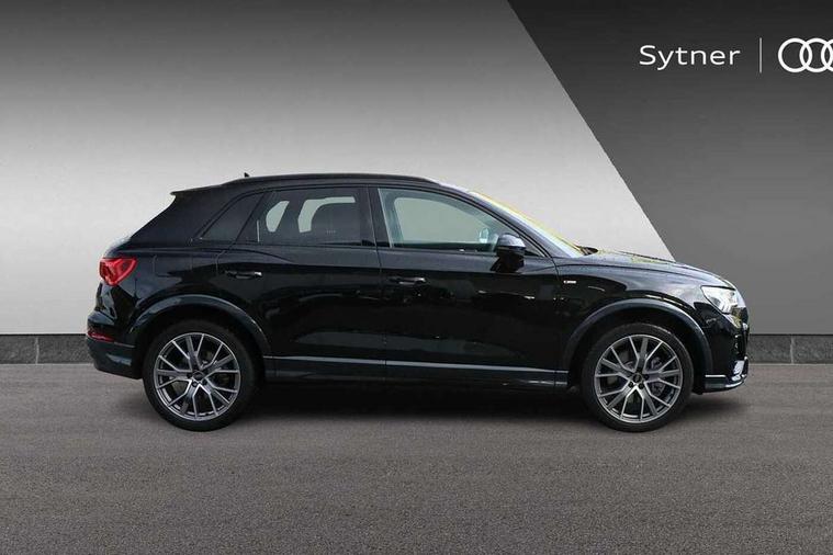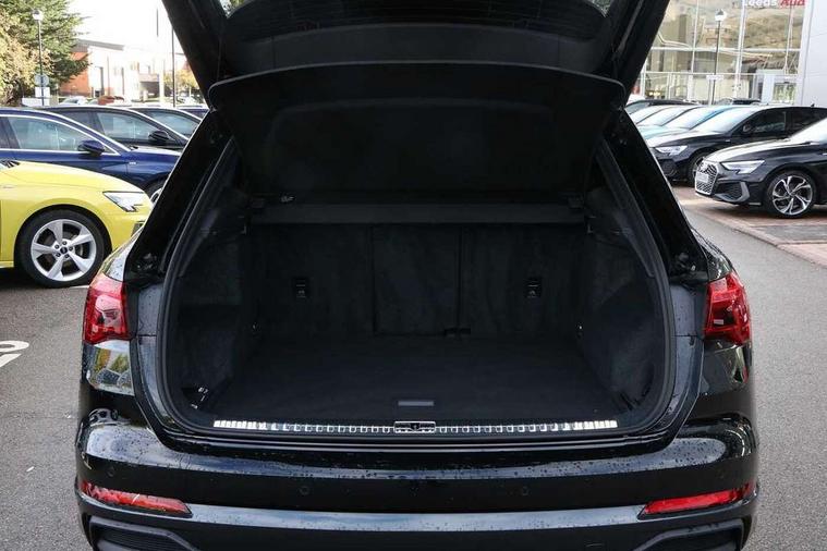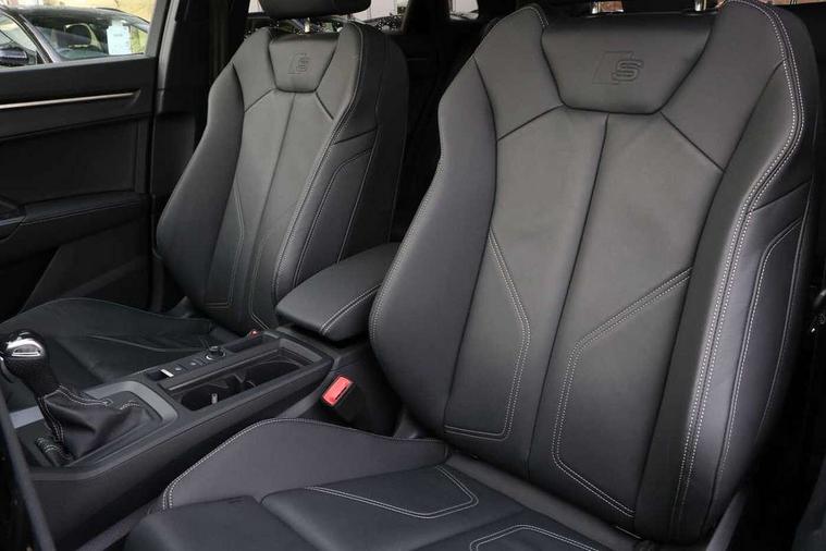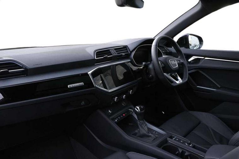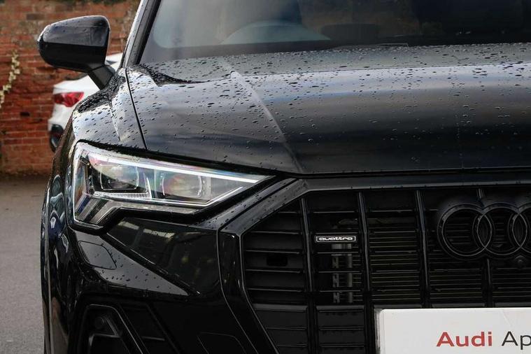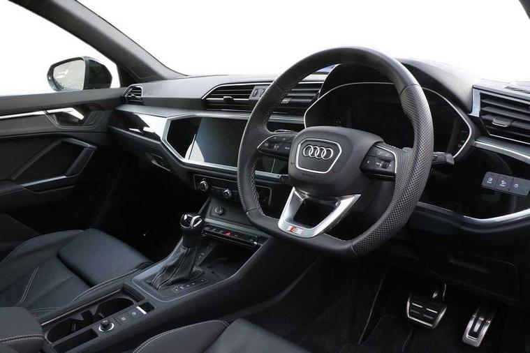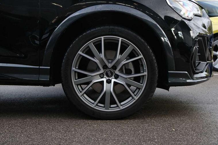 Amazon alexa Integration, Audi connect safety and service, Audi drive select, Audi lane departure warning, Audi Virtual Cockpit - 10.25" display, Bluetooth interface, Camera based traffic sign recognition, Distraction and Fatigue warning, Legal emergency call, MMI Navigation Plus with high resolution 10.1 inch touchscreen colour display, Power operated tailgate, Progressive steering, Service interval indicator, Smartphone interface includes wireless Apple carplay/Android Auto, Start stop system with recuperation, Voice control system with natural language interaction, Diesel particulate filter, Sports suspension, 2 USB-C ports with charge and data functions, 6 passive loudspeakers, DAB digital radio module, Acoustic windscreen, Audi Beam uses LEDs to project the Audi logo onto the ground as you exit your Q3, Auto dimming door mirrors, Auto dimming frameless rear view mirror, Black roof rails, Electrically folding, adjustable and heated door mirrors with integrated LED side indicators and kerb view function for passenger side, Front and rear electric windows, Front fog lights, Grille vertical bars in aluminium silver/Matt, High gloss black finish B and C pillars, LED Dynamic rear indicators, LED headlights with LED daytime running lights, LED rear lights, LED third brake light, Privacy glass dark tinted rear and rear-side windows (from B-pillar backwards), Rain and light sensors, Rear diffuser grille in grained matt black, Rear diffuser strip in matt anthracite black, Rear side wing doors, Rear wiper, S line bumpers in contrasting Manhattan grey, Variable front intermittent wipers, 12V socket in rear centre console, 3 seat bench in 2nd row, 40:20:40 folding with manual adjustment for 60:40 forwards/backwards position and backrest angle, Adjustable rear seat bench/backrest with centre armrest and cupholder, Black cloth headlining, Dual zone electronic climate control, Electric lumbar support, Front and rear black floor mats with contrast stitching in rock grey, Front and rear headrests, Front centre armrest, Height and reach adjustable steering wheel, Illuminated door sill trims with S logo, ISOFIX child seat mounting for front passenger with airbag deactivation and outer rear seat including top tether attachment point for outer rear seats, Manual front seats with height adjustment, Perforated leather gearknob, Single front passenger seat, Stainless steel luggage compartment sill finisher, Stainless steel pedals, Twin leather upholstery with front sport seats + S embossing, Black styling pack - Q3, Non smoking pack - Q3, 3x3 point rear seatbelts, 6 airbags - Driver, front passenger, curtain and side windows, Audi pre-sense front with pedestrain and cyclist recognition, Electrically operated child locks on rear doors, Electromechanical parking brake, Electronic stabilisation control including ABS, ASR and EDL, Front seatbelt reminder, Hill descent control, Hill hold assist, Pre sense basic, Seatbelt monitoring, Tyre pressure warning, Warning triangle and first aid kit, Anti theft wheel bolts, Immobiliser, Remote central locking, Thatcham approved category 1 anti theft alarm, Aluminium look interior elements, Detail dashboard around MMI touch colour display in glass look, black with surround in aluminium look, Leatherette door armrest, Piano black inlay,