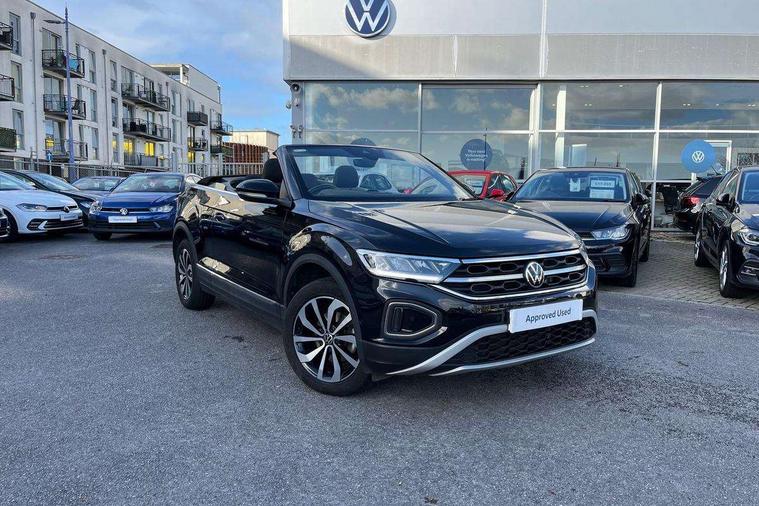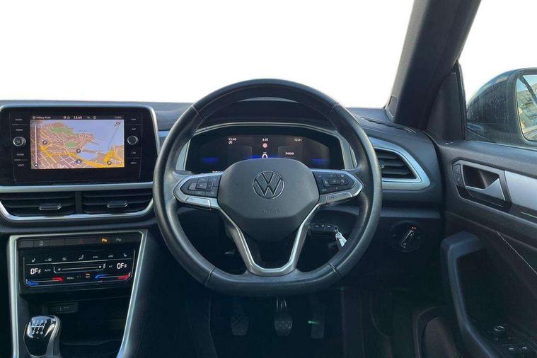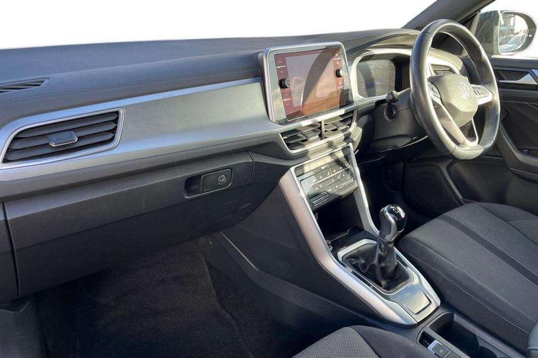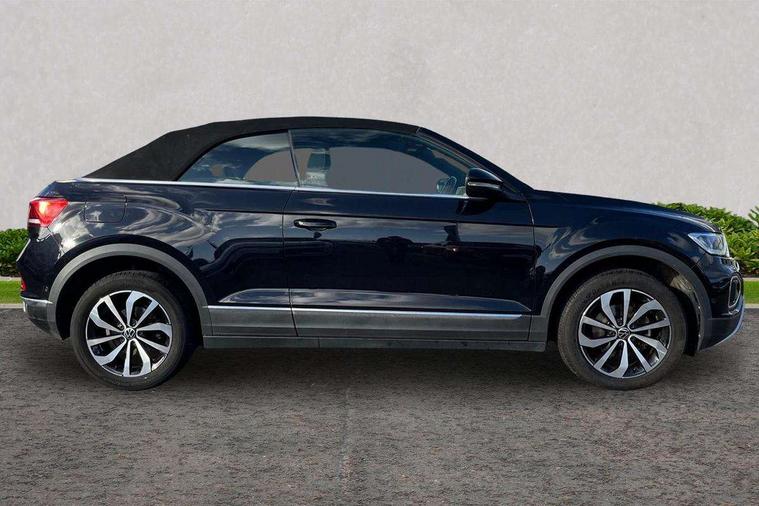 Adaptive cruise control and speed limiter, Bluetooth mobile phone interface, Brake pad wear indicator, Car information display, Driver alert system with fatigue detection, Driver tips and journey analysis, Emergency call service, Modified key software - reduce switch off time for key status change to Long no motion, Multifunction computer with visual gear change recommendation for fuel consumption, Multifunction front facing camera, Park assist including front and rear parking sensors, Speedo and rev counter, electronic odometer, trip, service interval display and exterior temperature gauge, Start/stop system with brake energy recovery, Tailgate/trunk lid release from outside, Warning sound and light for front seatbelts unfastened, Diversity antenna for FM reception, Music playback - MP3, WMA and AAC files, SMS functionality - read, compose and send SMS messages using touch-screen display, Title and cover art display, USB-C Interface and USB charging socket, We Connect and We Connect Plus functionality, Ambient lighting with logo projection, Auto dimming interior rear view mirror, Automatic hazard lights activation under emergency braking, Automatic headlight control with LED separate daytime running lights with coming/leaving home function, Black roof, Body colour door handles, Body colour rear spoiler, Body coloured bumpers and radiator grille with chrome trim and front fog lamps with chrome bezel, Chrome effect left and right trapezoid exhaust tailpipe fascia surround, Dark red rear combination lamps in LED technology, Dusk sensor, Exterior mirrors aspherical on driver side, convex on front passenger side, Headlight range control, Heat insulating glass windscreen, High level 3rd brake light, LED Headlights, LED rear number plate lights, Power operated canvas convertible top, Power windows with comfort operation and circuit breaker, Rain sensor, Rear boot, Rear exhaust tailpipe, Rear fog light on one side and reversing lights on both sides, Remote electrically foldable door mirrors, puddle lights and reverse activated passenger door mirror, Volkswagen roundel, Windscreen wiper with intermittent wipe light, Without exterior ambient lighting, 12V socket in centre console storage area, 2 LED front reading lights, 2 seat bench in 2nd row, 50:50 Split folding rear seat backrests with fixed rear seat bench, Air care climatronic air conditoning system with active combination filter and 2-zone temperature control, Black door lower parts with chrome trim, Chrome plated surround to light, mirror and window switch, Door and side trim panel with leatherette insert, Easy entry backrest release, Front and rear carpet mats with black stitching, Front centre armrest, Front cupholders x 2, Front door pockets, Front seat back storage pockets, Heated multi function steering wheel, Height/reach adjust steering wheel, Instrument lighting, white adjustable panel illumination, Interior light delay, Interior light in footwell, Interior lighting with switch off delay and contact switches on all doors, Interior white ambient lighting and surround lighting, Isofix child seat preparation, Lockable glove compartment with light, Luggage compartment lighting, Rear head restraints, Single front passenger seat, Sun visors with illuminated vanity mirrors, Driver assistance pack without proactive passenger protection - T-Roc cabriolet, 2 x 3-point seatbelts/outer rear seats with ECE label, Driver and front passenger airbag with front passenger airbag deactivation, Driver and front passenger safety-optimised head restraints, Drivers seatbelt reminder, Electronic parking brake, Electronic Stability Control (ESC) including ABS, ASR and EDL, Front and rear disc brakes, Front assist with autonomous emergency braking, Pedestrian monitoring, Predictive pedestrian protection, Rigid safety cell with front and rear crumple zones, Side airbag/thorax airbag system, for front passengers, Single tone horn, Three point height adjust front seatbelts + pretensioners, Tyre pressure loss indicator, Volkswagen roadside assistance, Anti-theft alarm system with interior protection and central locking system with SAFELOCK, radio remote control and 2 remote control folding keys, Electronic engine immobiliser, Trims for alloy wheels,