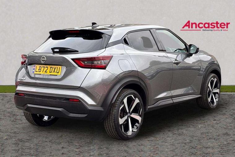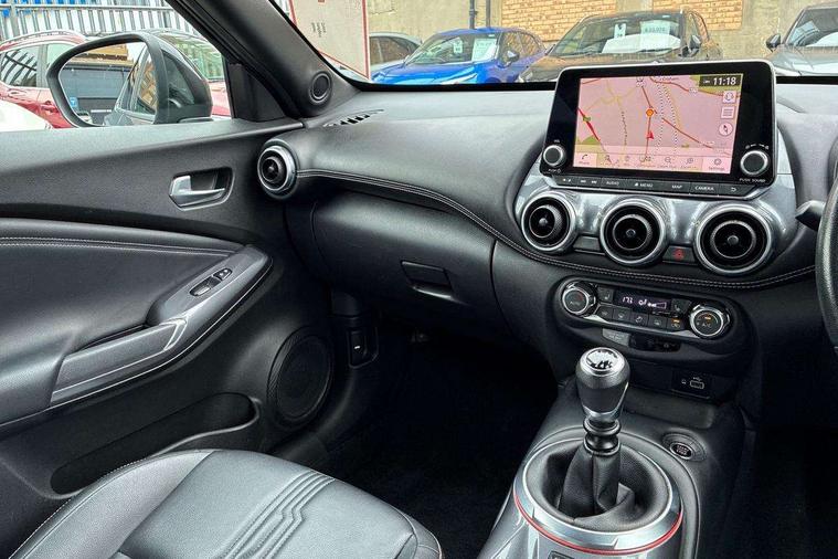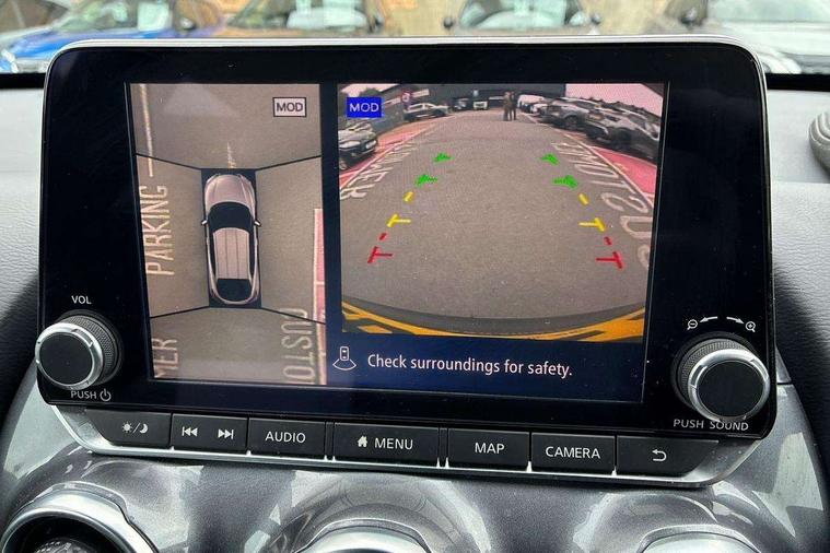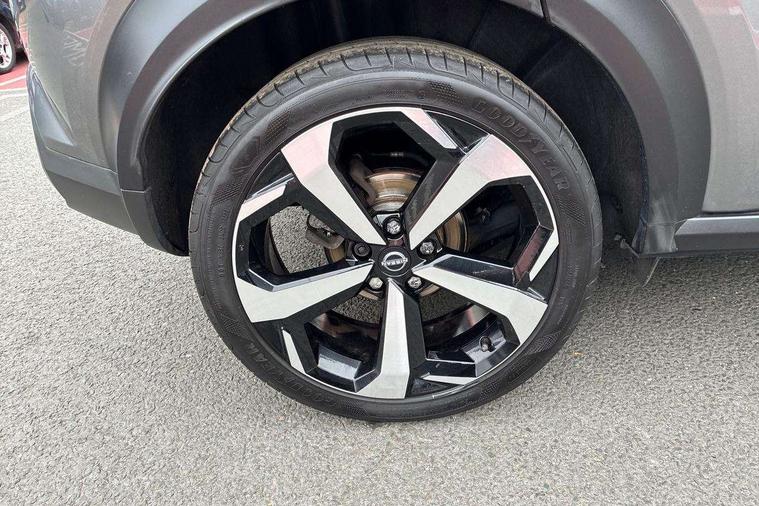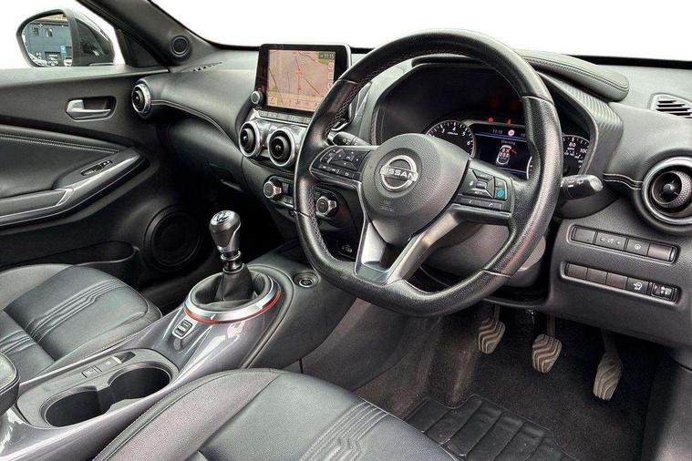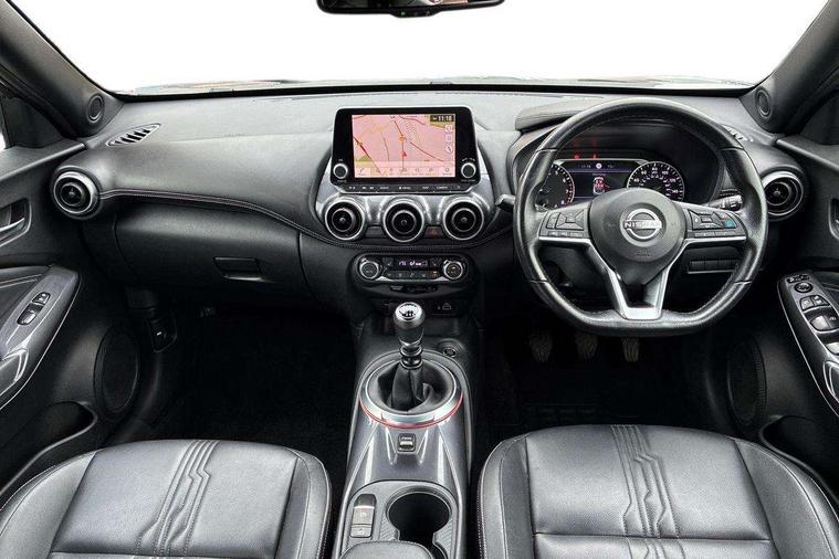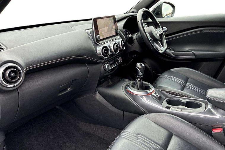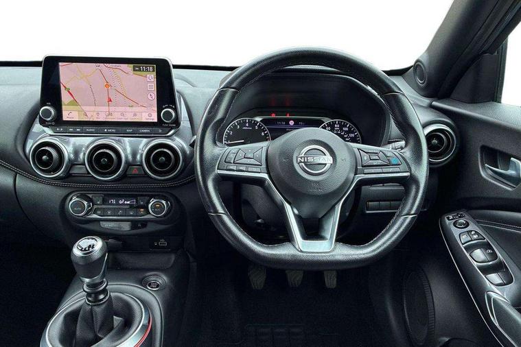7" full colour TFT screen combimeter, Apple CarPlay and Google Android auto, Drive modes select (Eco, normal and sport), Emergency and breakdown call, Front parking sensor, Idle start/stop system, Intelligent lane intervention, Lane departure warning system, Nissan connect 8" touch screen entertainment system, Nissan connect nav with TomTom traffic, Nissan connect services and Wifi connection, Outside temperature sensor, Power Steering, Rear parking sensor, Traffic sign recognition, Trip computer, Voice recognition, Gasoline particulate filter, 10 Bose speakers 6 speakers and 2 headrest speakers for driver/passenger seats, Bluetooth system, USB, Aux-in and 12V socket, Bose personal sound stage control, DAB Digital radio, Rear console USB port, Auto dimming interior rear view mirror, Auto headlights, Automatic hazard signal with emergency stop signal, Body colour bumpers, Body colour door handles, Electrically adjustable door mirrors with integrated indicators, Follow me home headlights, Front and rear electric window with one touch driver window, Heated and auto folding door mirrors, High beam assist, LED daytime running lights, LED front fog lights, LED headlamps, LED rear fog lamp, LED rear lamps, Rain sensor windscreen wipers, Rear privacy glass, Rear side wing doors, Rear wiper, Thermaclear heated windscreen, Three blink turn signal, 3 height adjustable rear headrests, 3 seat bench in 2nd row, 60/40 split folding rear seat, Automatic climate control, Card holder on driver sunvisor, Door ambient lighting, Driver and passenger sliding and reclining seats, Driver seat back pocket, Driver side rear coat hanger, Driver/passenger sunvisors and vanity mirrors, Front and rear cabin lights, Front armrest, Front door pockets with bottle holders, Front head restraints, Front passenger isofix child seat anchorage point, Front/rear passenger grab handles, Gear console ambient circle lighting, Grey synthetic leather kneepad, Heated front seats, Height adjustable driver's seat, Height adjustable passenger seat, Internal chrome door handles, Leather gearshift knob, Leather steering wheel, Luggage board, Luggage space lighting, Monoform sporty seats, Multifunction steering wheel, Passenger seat back pocket, Rear door bottle holders, Single front passenger seat, Synthetic leather upholstery, Telescopic steering wheel adjustment, Two cupholders in front centre console, Two rear isofix child seat anchorage points with top tether, Welcome light and console tray ambient lighting, Advanced safety shield pack - Juke, ABS with EBD and brake assist, Active ride control, Active Trace Control, Driver and passenger airbags, Driver and passenger side airbags, Electric handbrake with auto hold function, Electronic Stability Programme (ESP), Front and rear curtain airbags, Height adjustable seatbelts, Hill start assist, Intelligent emergency braking with pedestrian and cyclist recognition, Rear door child safety locks, Seatbelt reminder for driver/front passenger and rear seats, Single tone horn, Three 3 point rear seatbelts, Traction control, Tyre pressure monitoring system, VDC Dynamic Vehicle Control, Ventilated rear brake discs, Alarm, Immobiliser, Intelligent key and start push button with walk away lock and approach unlock functions, Remote central locking,