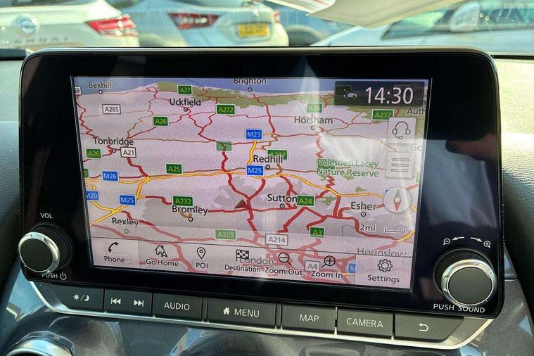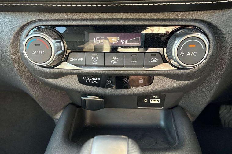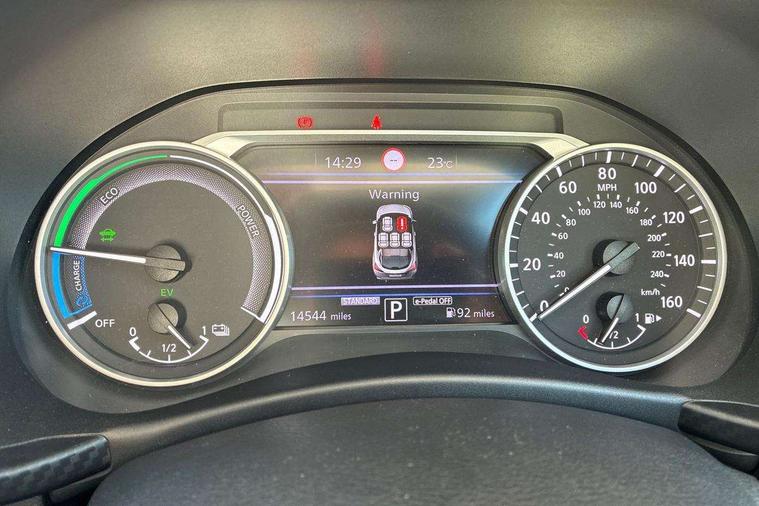 7" full colour TFT screen combimeter, Apple CarPlay and Google Android auto, Drive modes select (Eco, normal and sport), e-Pedal step, Emergency and breakdown call, EV mode selector, Front parking sensor, Intelligent lane intervention, Lane departure warning system, Nissan connect 8" touch screen entertainment system, Nissan connect nav with TomTom traffic, Nissan connect services and Wifi connection, Outside temperature sensor, Power Steering, Rear parking sensor, Traffic sign recognition, Trip computer, Voice recognition, Gasoline particulate filter, 6 speakers, Bluetooth system, USB, Aux-in and 12V socket, DAB Digital radio, Rear console USB port, Auto dimming interior rear view mirror, Auto headlights, Automatic hazard signal with emergency stop signal, Body colour bumpers, Body colour door handles, Electrically adjustable door mirrors with integrated indicators, Follow me home headlights, Front and rear electric window with one touch driver window, Heated and auto folding door mirrors, High beam assist, LED daytime running lights, LED headlamps, LED rear fog lamp, LED rear lamps, Rain sensor windscreen wipers, Rear privacy glass, Rear side wing doors, Rear wiper, Three blink turn signal, 3 height adjustable rear headrests, 3 seat bench in 2nd row, 60/40 split folding rear seat, Automatic climate control, Card holder on driver sunvisor, Cloth upholstery with black and metallic grey syntech leather inserts, Driver and passenger sliding and reclining seats, Driver side rear coat hanger, Driver/passenger sunvisors and vanity mirrors, Front and rear cabin lights, Front armrest, Front door pockets with bottle holders, Front head restraints, Front/rear passenger grab handles, Grey synthetic leather kneepad, Height adjustable driver's seat, Internal chrome door handles, Leather gearshift knob, Leather steering wheel, Luggage board, Luggage space lighting, Monoform sporty seats, Multifunction steering wheel, Rear door bottle holders, Single front passenger seat, Steering wheel mounted gearshift paddles, Telescopic steering wheel adjustment, Two cupholders in front centre console, Two rear isofix child seat anchorage points with top tether, Welcome light and console tray ambient lighting, ABS with EBD and brake assist, Active ride control, Active Trace Control, Driver and passenger airbags, Driver and passenger side airbags, Electric handbrake with auto hold function, Electronic Stability Programme (ESP), Front and rear curtain airbags, Height adjustable seatbelts, Hill start assist, Intelligent emergency braking with pedestrian and cyclist recognition, Rear door child safety locks, Seatbelt reminder for driver/front passenger and rear seats, Single tone horn, Three 3 point rear seatbelts, Traction control, Tyre pressure monitoring system, VDC Dynamic Vehicle Control, Ventilated rear brake discs, Alarm, Immobiliser, Intelligent key and start push button with walk away lock and approach unlock functions, Remote central locking,