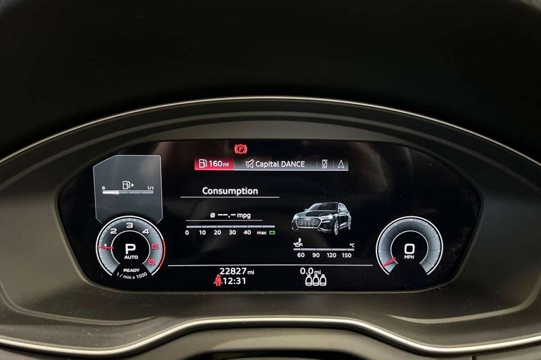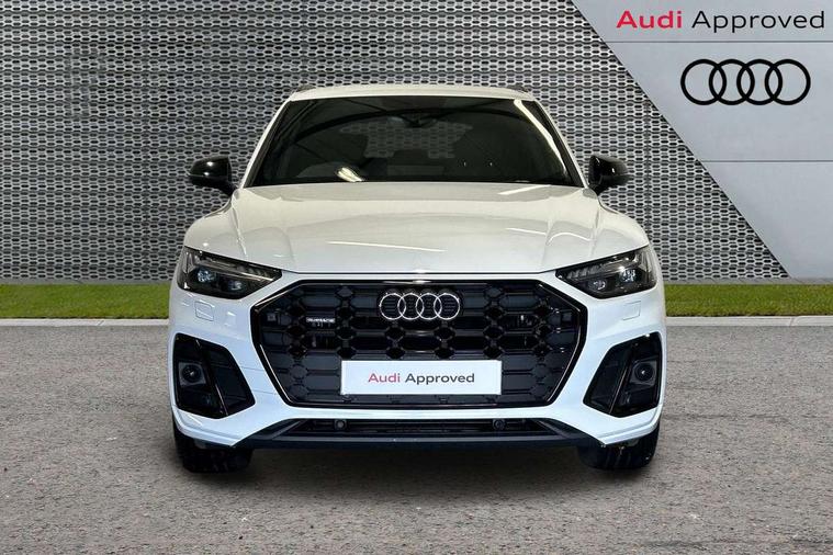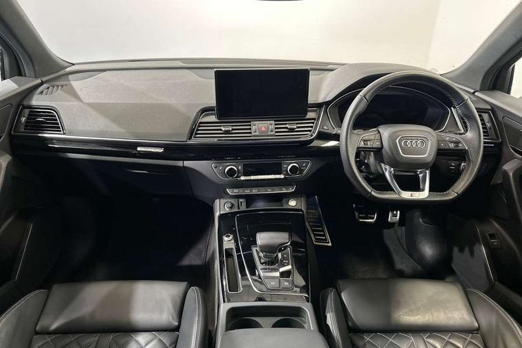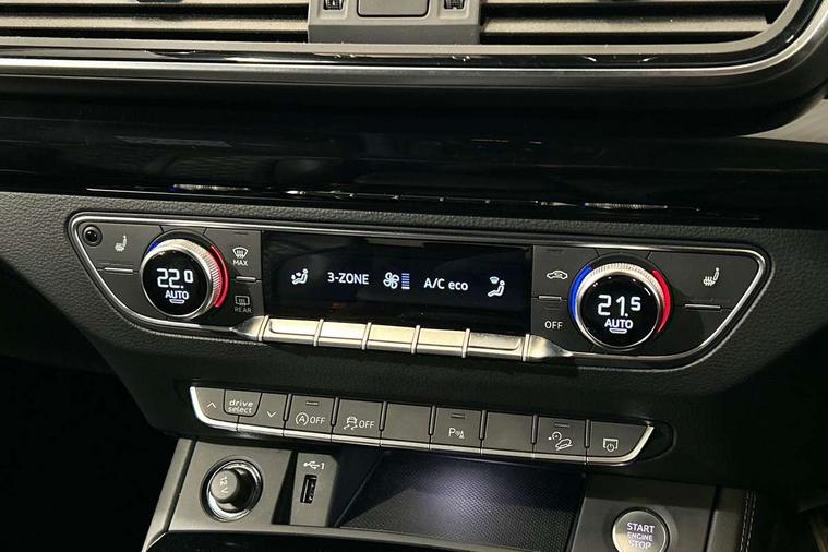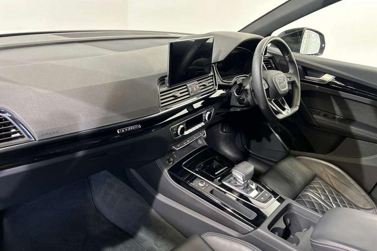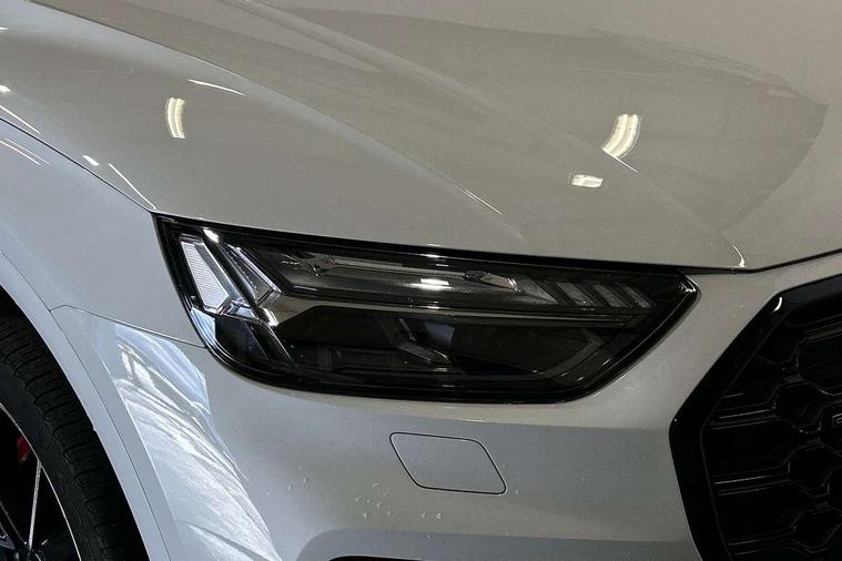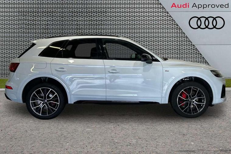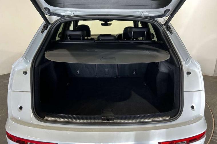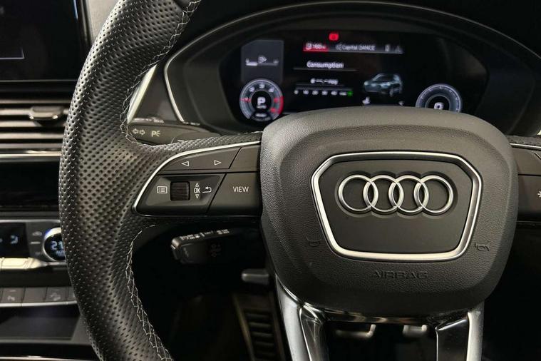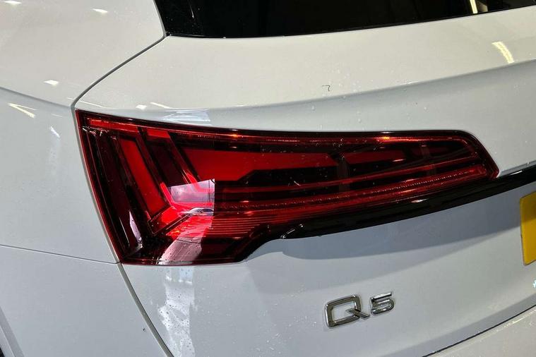 Audi connect safety and service (e-call), Audi connect with Amazon Alexa Integration, Audi drive select, Audi virtual cockpit plus with 12.3" screen and three different layout designs, Audi wireless smartphone interface, Automatic start-stop system with coasting functionality and efficiency programme, Bluetooth interface, Electro - mechanical power assisted steering, MMI navigation plus with 10.1" touch screen, Power tailgate, Reversing camera, Service interval indicator, Voice control system with Audi hotword activation "Hey Audi", Diesel particulate filter, Quattro on demand, S line sports suspension, 2 x USB charging port with aux input socket, DAB Digital radio, Acoustic windscreen, Audi matrix LED headlights with dynamic front and rear indicators, Audi rings at front and rear in black, Audi rings decal on rear doors, Auto dimming door mirrors, Auto dimming rear view mirror, Automatic headlights and windscreen wipers, Black door mirrors, Black roof rails, Body colour bumpers, Body colour underbody protection, Chrome plated exhaust trims, Daytime running lights, Door sills in Selenite silver, Electric adjustable/heated/folding door mirrors, Front air inlet surrounds in titanium black, Front and rear electric windows, Headlight washers, High gloss black B pillar trims and triangular rear door trim, High level LED brake light, Rear chrome trim strip below lights, Rear privacy glass and rear side windows, Rear side wing doors, Rear wiper, Roof bars, S Line rear spoiler, 3 rear headrests, 4 way electric lumbar support for driver and front passenger, 40:20:40 split folding 3 rear bench seat in 2nd row with rear centre armrest, Black cloth headlining, Comfort front centre armrest, Contrast stitching on seats, steering wheel and gear lever gaiter, Deluxe 3 zone electronic climate control, Electrically adjustable front seats, Fine Nappa leather upholstery with diamond pattern contrast stitching + front sport seats with S embossed logo, Front/rear floor mats, Gear lever in black leather, Heated front seats, Height adjustable front head restraints, Height/reach adjustable steering column, Illuminated door sill trims with S logo, ISOFIX child seat mounting and top tether, Rear seat bench plus, Removable luggage compartment floor, Single front passenger seat, Stainless steel pedals, Sunvisors with vanity mirrors, Black styling package - Q5 Edition 1, Extended interior upholstery pack - Q5, Extended LED Interior multi coloured Lighting Pack - Q5, 3 point seatbelts on all seats, 6 airbags - Driver, front passenger, curtain and side airbags, Electrically operated child locks on rear doors, Electromechanical parking brake, Electronic stabilisation control including ABS, ASR and EDL, Front and rear brake calipers painted in red, Front passenger airbag deactivation, Hill descent control, Hill hold assist, Multi collision brake assist, Pop-up bonnet for pedestrian protection, Pre sense city, Seat belt force limiter, Seatbelt monitoring, Tyre pressure warning, Warning triangle and first aid kit, Anti theft alarm, Anti-theft wheel bolts, Keyless Go access/ignition system, Remote central locking, Piano black finish inlay,