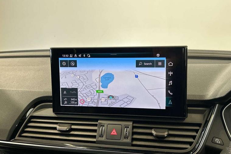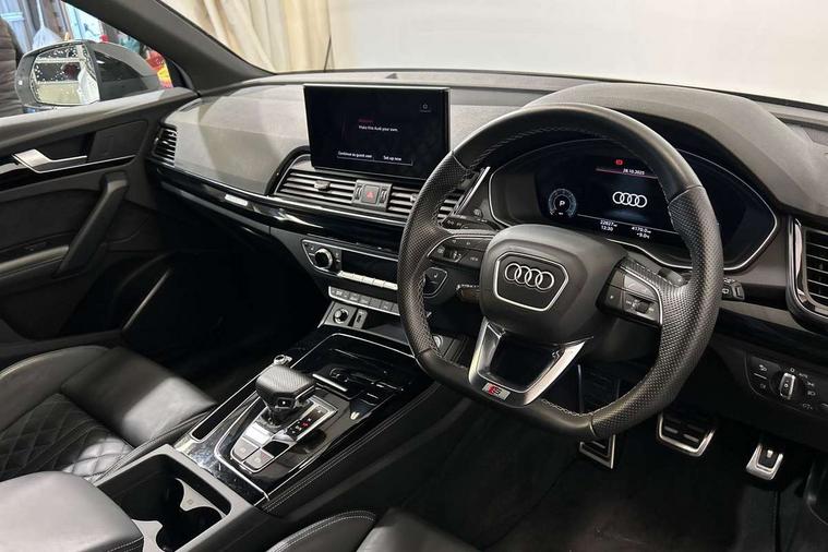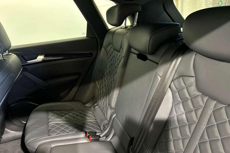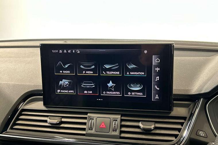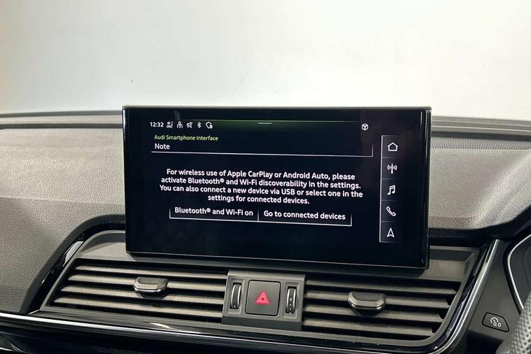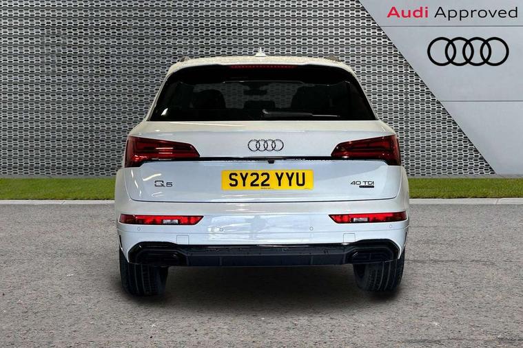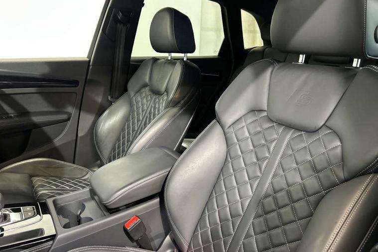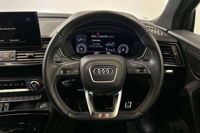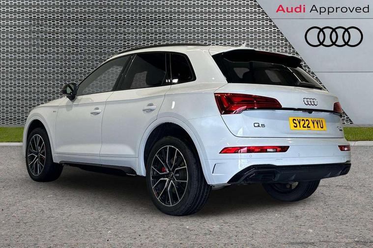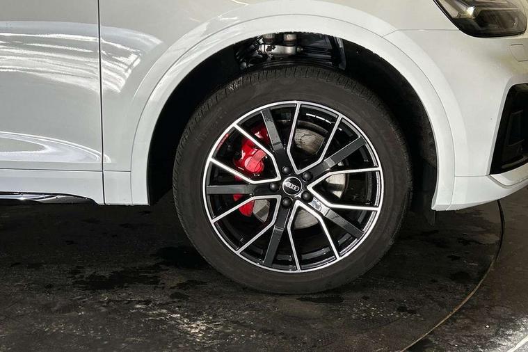 Audi connect safety and service (e-call), Audi connect with Amazon Alexa Integration, Audi drive select, Audi virtual cockpit plus with 12.3" screen and three different layout designs, Audi wireless smartphone interface, Automatic start-stop system with coasting functionality and efficiency programme, Bluetooth interface, Electro - mechanical power assisted steering, MMI navigation plus with 10.1" touch screen, Power tailgate, Reversing camera, Service interval indicator, Voice control system with Audi hotword activation "Hey Audi", Diesel particulate filter, Quattro on demand, S line sports suspension, 2 x USB charging port with aux input socket, DAB Digital radio, Acoustic windscreen, Audi matrix LED headlights with dynamic front and rear indicators, Audi rings at front and rear in black, Audi rings decal on rear doors, Auto dimming door mirrors, Auto dimming rear view mirror, Automatic headlights and windscreen wipers, Black door mirrors, Black roof rails, Body colour bumpers, Body colour underbody protection, Chrome plated exhaust trims, Daytime running lights, Door sills in Selenite silver, Electric adjustable/heated/folding door mirrors, Front air inlet surrounds in titanium black, Front and rear electric windows, Headlight washers, High gloss black B pillar trims and triangular rear door trim, High level LED brake light, Rear chrome trim strip below lights, Rear privacy glass and rear side windows, Rear side wing doors, Rear wiper, Roof bars, S Line rear spoiler, 3 rear headrests, 4 way electric lumbar support for driver and front passenger, 40:20:40 split folding 3 rear bench seat in 2nd row with rear centre armrest, Black cloth headlining, Comfort front centre armrest, Contrast stitching on seats, steering wheel and gear lever gaiter, Deluxe 3 zone electronic climate control, Electrically adjustable front seats, Fine Nappa leather upholstery with diamond pattern contrast stitching + front sport seats with S embossed logo, Front/rear floor mats, Gear lever in black leather, Heated front seats, Height adjustable front head restraints, Height/reach adjustable steering column, Illuminated door sill trims with S logo, ISOFIX child seat mounting and top tether, Rear seat bench plus, Removable luggage compartment floor, Single front passenger seat, Stainless steel pedals, Sunvisors with vanity mirrors, Black styling package - Q5 Edition 1, Extended interior upholstery pack - Q5, Extended LED Interior multi coloured Lighting Pack - Q5, 3 point seatbelts on all seats, 6 airbags - Driver, front passenger, curtain and side airbags, Electrically operated child locks on rear doors, Electromechanical parking brake, Electronic stabilisation control including ABS, ASR and EDL, Front and rear brake calipers painted in red, Front passenger airbag deactivation, Hill descent control, Hill hold assist, Multi collision brake assist, Pop-up bonnet for pedestrian protection, Pre sense city, Seat belt force limiter, Seatbelt monitoring, Tyre pressure warning, Warning triangle and first aid kit, Anti theft alarm, Anti-theft wheel bolts, Keyless Go access/ignition system, Remote central locking, Piano black finish inlay,