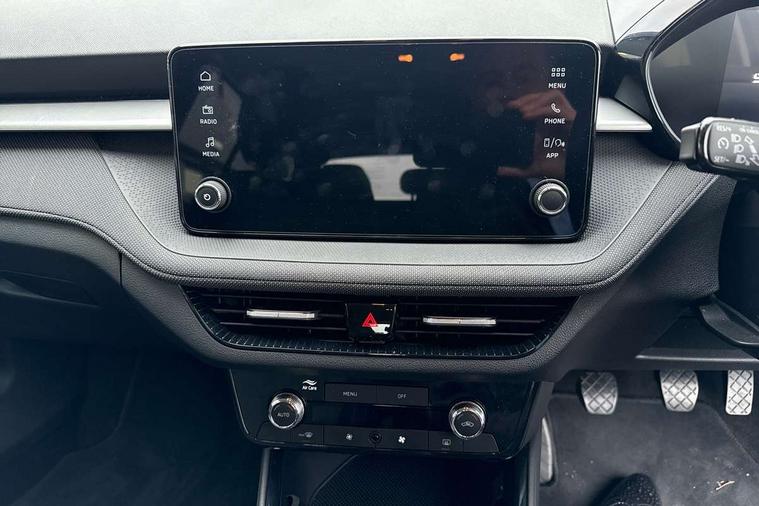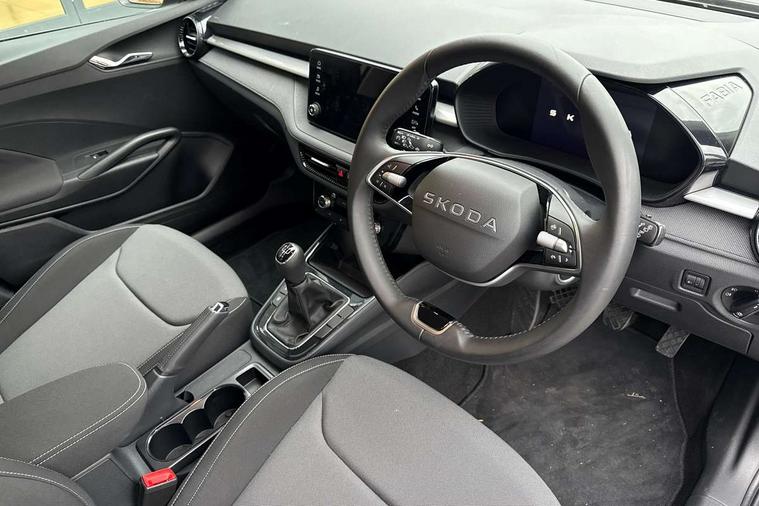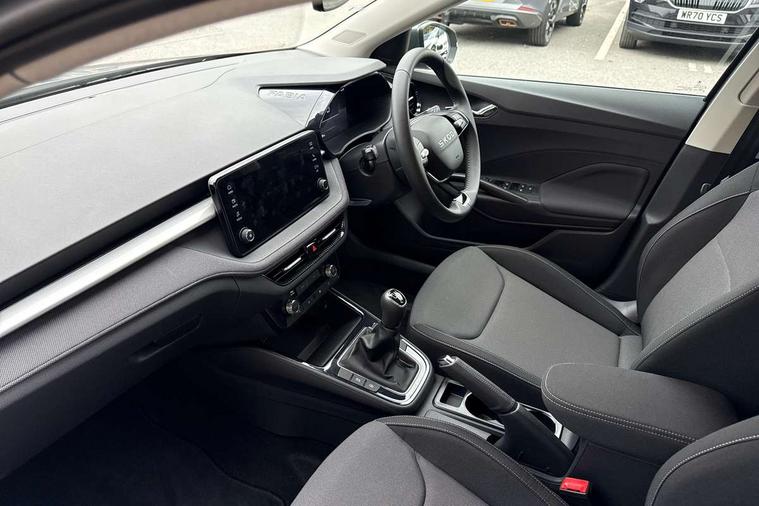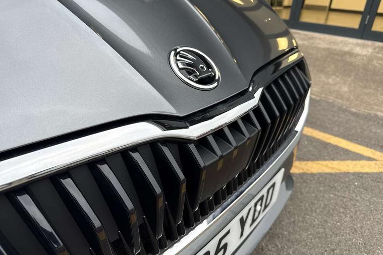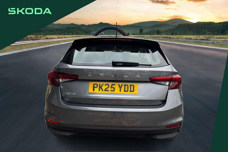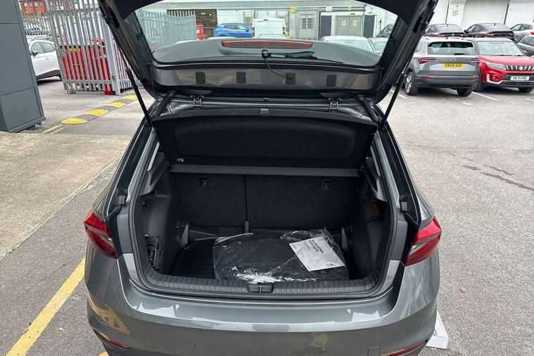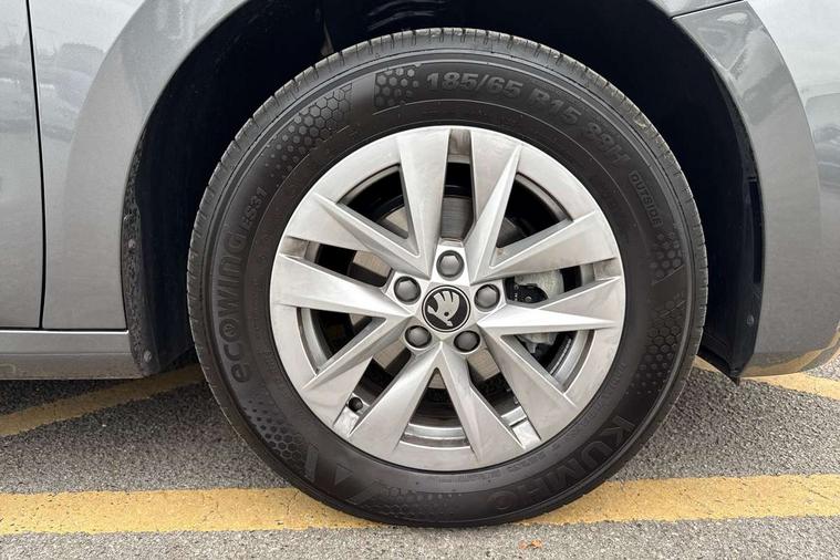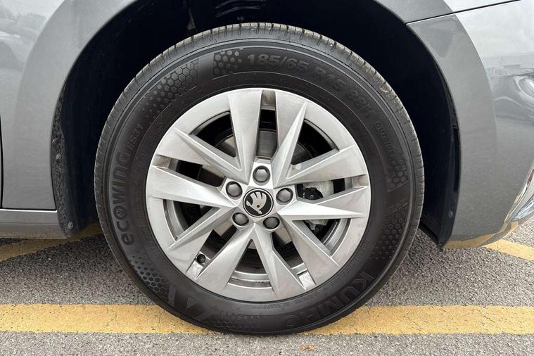 8" Digital instrument display, Advanced driver attention and drowsiness monitor, Bluetooth connection, Electromechanical power steering, Exterior temperature gauge, Service interval indicator, Traffic sign recognition, Wireless SmartLink for Apple CarPlay and Android Auto, 6 Speakers (4 in front and 2 in rear), 8.25" Skoda infotainment touchscreen display, Auxiliary socket for external MP3 player, DAB digital radio reception, Auto dimming rear view mirror, Body colour door mirrors, Body coloured bumpers, Door mirror integrated indicators, Front and rear electric windows, Front window wiper intermittent control, Headlight range control - Automatic, Ice scraper in fuel cap, LED 3rd brake light, LED daytime running lights with coming and leaving home feature, LED rear lights, Rear LED fog light, Rear side wing doors, Rear window wiper with washing nozzles, Roof mounted spoiler, SKODA tailgate lettering in chrome, Unique dark chrome design logo on alloy wheels, 2 reading lights in front and 2 reading lights in rear, 3 rear headrests, Backrest split and folding, Central console with removable cup holder and storage box, Chrome handbrake release button, Dual zone air conditioning with climatronic electronic control, Fabric upholstery, Front centre armrest, Gearshift knob/handle in leather, Grain satin black interior door handles, Hand brake lever handle in leather, Height adjustable front headrests, Height adjustable front seats, Height adjustable steering wheel, ISOFIX and TopTether anchorage points to the outer rear seats, ISOFIX and TopTether on the front passenger seat, Luggage compartment lighting, Manually adjustable lumbar support in front seats, Pollen filter, Rear seat bench unsplit, Single front passenger seat, Skoda lettering on steering wheel, Storm grey headlining, Sun visors with mirror and airbag label on passenger side, Textile floor mats, Ticket holder, Umbrella in drivers door, 3-point height adjustable front seats belts with pretensioner and force limiter, Automatic warning lights in case of crash, Driver and passengers airbag with switch off function, e-Call+, ESC including ABS, MSR, ASR, EDS, HBA and XDS, Front and rear seat belt warning, FRONT ASSIST (AEB City and AEB Inter Urban), Front side airbags, Head airbags, One tone horn, Pedestrian protection, Three rear 3-points safety seat belts with pretensioner and force limiter including stop function for outer rear seat belts, Tyre pressure monitoring system, Anti-theft alarm system including immobiliser, interior monitoring, backup horn, and towing protection, Central locking with radio remote control, interior controls, SAFE function and 2 foldable keys, Black painted air vents, Grain satin black central console cover, Metallic grey upper decorative trim, Satin black door and side trim panel in front, Textile Kota grey lower decorative inserts, Anti-theft wheel bolts protection, Super-low rolling resistance tyres,