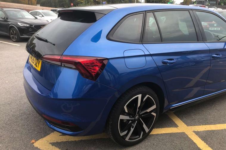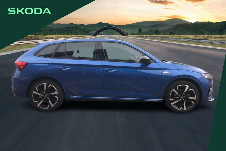 Advanced driver attention and drowsiness monitor, Bluetooth, e-Call (emergency call), Front assist system, PAS, Rear parking sensors, Rear view camera, Speed limiter, Tailgate, Traffic sign recognition, Virtual Cockpit - 10.25" digital display, Voice control system, Wireless smartlink, 4 USB C ports, 8 Speakers, 9.2" Skoda navigation display, DAB radio, Auto dimming rear view mirror, Automatic headlamp activation with Coming home and Leaving home feature, Automatic high/low beam, Automatic intermittent wipers, Black door mirrors, Black lettering on boot lid, Black radiator grille, Black rear diffuser, Black roof spoiler, Body colour bumpers, Body colour door handles, Chrome moulding around grille, Extended tailgate glass, Front and rear electric windows, Heated rear window, LED 3rd brake light, LED brake lights, LED daytime running lights, LED high beam, LED low beam, Light sensors, Monte carlo plaque, Panoramic glass roof, Privacy glass, Rear LED fog light, Rear side wing doors, Rear wiper, Tinted windows, Unique dark chrome design logo on alloy wheels, 12V socket in luggage compartment, 3 seat bench in 2nd row, Aluminium pedals, Ambient lighting in white/red, Black / White armrest stitching, Black ceiling, Black roof headlining, Cargo elements, Chrome inner door handles, Door inserts in art.leather carbon, Driver and passenger sun visors with vanity mirror, Dual zone climate control, Front and rear roof lights, Front centre armrest, Front head restraints, Height adjustable driver seat, Height adjustable passenger seat, Ice scraper, Illuminated glove compartment, Inner circulation control with pollen filter, ISOFIX for front passenger seat, Isofix preparation for back seats, Leather gearknob and handbrake lever, Luggage net under rear parcel shelf, Manual lumbar support for front seats, Monte Carlo cloth upholstery, Net package and top tether hooks in boot space, Pocket on the back of both front seats, incl. mobile phone pockets, Rear centre armrest, Red hotstamping, Single front passenger seat, Skoda lettering on steering wheel, Sport seats, Textile floor mats, Third rear headrest, Ticket holder, Top tether for front passenger seat, Umbrella in driver's door, Light and view plus pack - Scala, 3x3 point rear seatbelts, ABS, Child locks, Curtain airbags and front side airbags, Disc brakes, Driver and front passenger airbags, ESP, Hill hold control, Manual leather parking brake, One tone horn, Passenger airbag switch off function, Seatbelt reminder for driver and front passenger, Tyre pressure monitoring system, Anti theft alarm system with interior monitoring, backup horn and towing protection, Anti-theft wheel bolts, Remote central locking with 2 remote folding keys, SAFE function for remote central locking, Carbon effect decorative inserts, 18" Ursa black diamond cut alloy wheels,