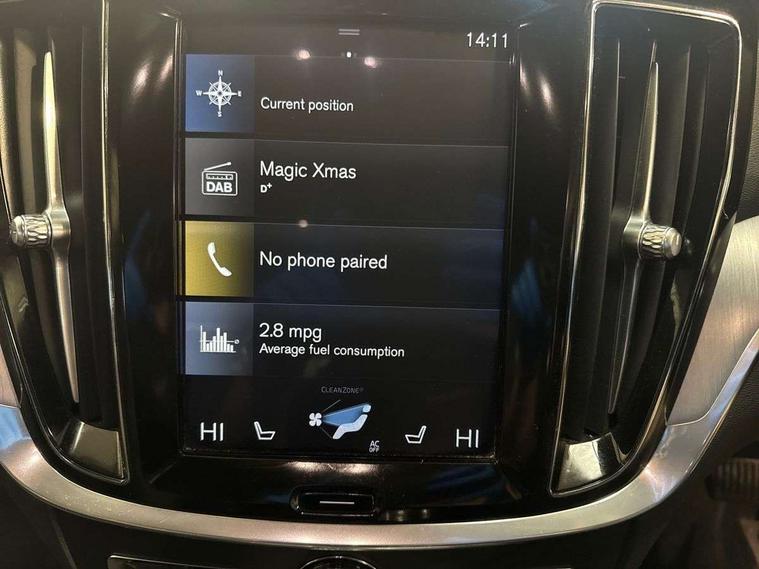 12.3" Active TFT crystal driver's instrument display, 9" centre console touch screen, Adjustable steering wheel force, Bluetooth hands free telephone kit, Drive mode settings, Driver alert control with lane keeping aid, Information centre, Oncoming Lane Mitigation, Power operated tailgate, Sensus navigation with European mapping and traffic information, Service interval indicator, Speed limiter, Speed sensitive steering, Trip computer, Voice activated control for key functions, Volvo on call, 8 speed automatic transmission with start/stop + manual change functions, DAB Digital radio, Steering wheel remote infotainment controls, Adaptive brake lights with high level LED brake lights, Auto dimming interior mirror, Automatic headlight levelling system, Automatic LED Headlights + Active high beam incorporating daytime running lights, Body colour bumpers, Colour coordinated auto folding and heated power door mirrors, Front aluminium tread plates, Home safe and approach lighting, Piano black front grille with chrome surround, Power front and rear windows, Rain sensor with automatic windscreen wiper activation, Rear wiper, Roof antenna, Roof spoiler, Single exhaust pipes with chrome sleeve, Visible VIN plate, 12V socket in cargo area, 12V socket in front + rear tunnel console, 2 zone electronic climate control with Clean zone air quality system + pollen filter, 3 spoke leather steering wheel with chrome trim, A-pillar parking ticket holder, B Pillar ventilation, Bright metal luggage compartment threshold, Cargo load hooks, Centre console cupholders and storage, Floor mats, Front footwell illumination, Front head restraints, Front reading lights + Theatre lighting and centre armrest storage illumination, Glovebox compartment with illumination, Heated front seats, Height/reach adjustable steering column, Illuminated vanity mirrors + ticket holder, Isofix attachments on rear seats, Leather gear knob, Leather upholstery, Load cover, Load protection net, Lockable glovebox, Lockable load floor, Luggage compartment illumination, Power driver seat with memory + exterior mirrors memory, Rear armrest with storage + cupholders, Rear head restraints, Underfloor cargo storage, Versatile split folding rear seat - 60/40, WHIPS - Whiplash Protection System, 5 x 3 point seatbelts, City safety with steering support with Pedestrian + cyclist + large animal detection + front collision warning with full auto brake, Dual stage driver/passenger airbags, First aid kit, Hill start assist, IC (Inflatable Curtains) - Full Length, Passenger airbag cut-off switch, Power parking brake with auto hold function, Road sign information display, Run off Road Mitigation, Run off Road Protection, Seatbelt reminder and pretensioners for all seats, SIPS (Side Impact Protection System), SIPS airbags, Slippery road and hazard light alert, Stability and Traction Control with Spin control, Engine Drag Control and Corner Traction Control, Tyre pressure monitoring system, Vehicle deceleration control with Anti-lock Brake System, Electronic Brake Distribution and Emergency Brake Assist, Warning triangle, Anti-theft alarm including immobiliser/volume sensor + level sensor, Key integrated remote control central locking + fuel flap with deadlocking system and auto open/close power windows, Keyless Start, Locking wheel nuts, Private locking for tailgate, Iron ore aluminium inlays,