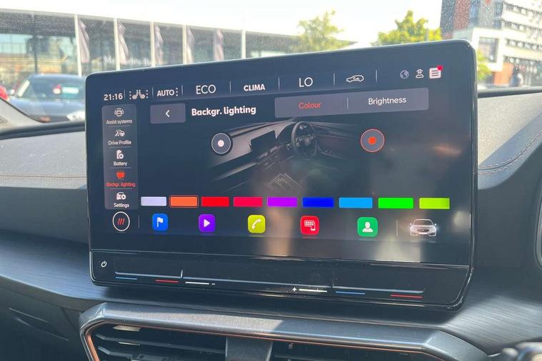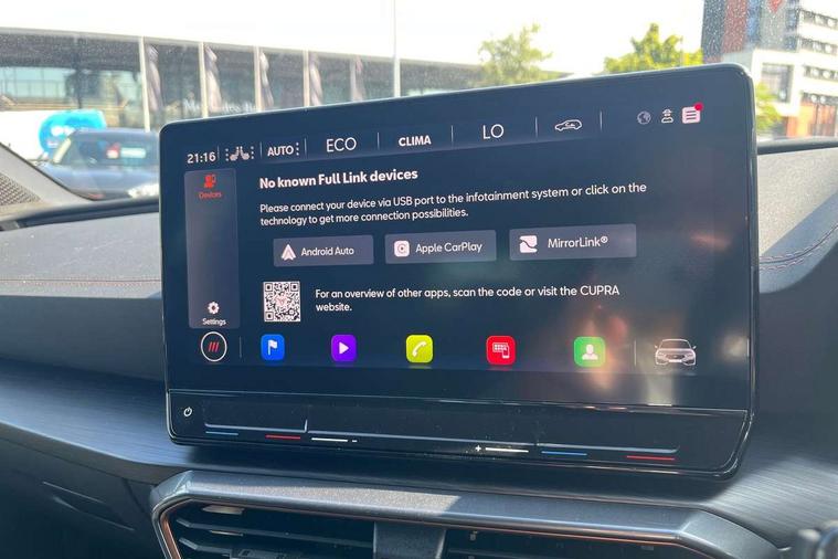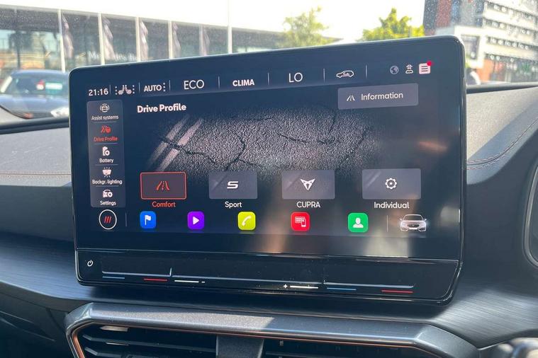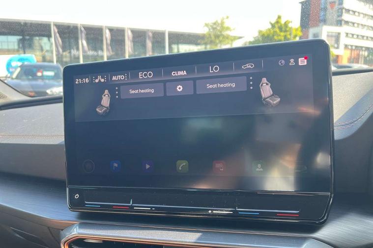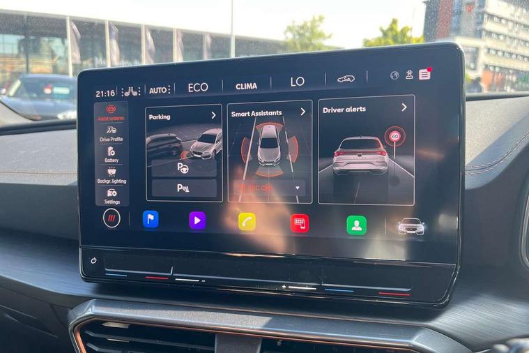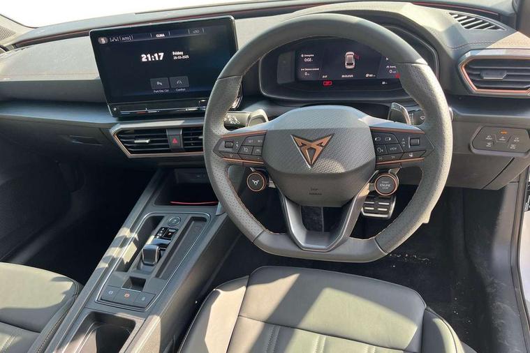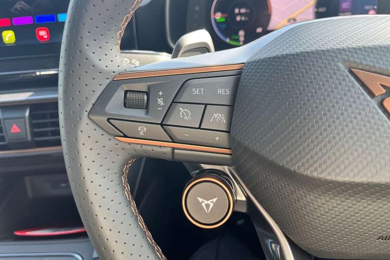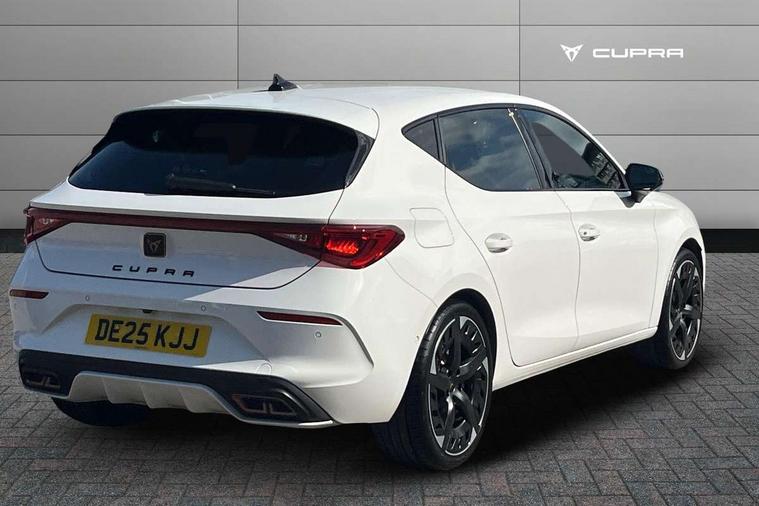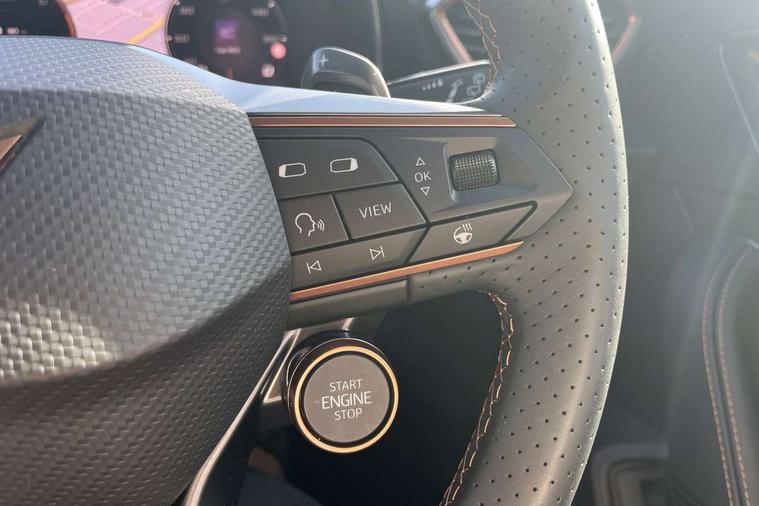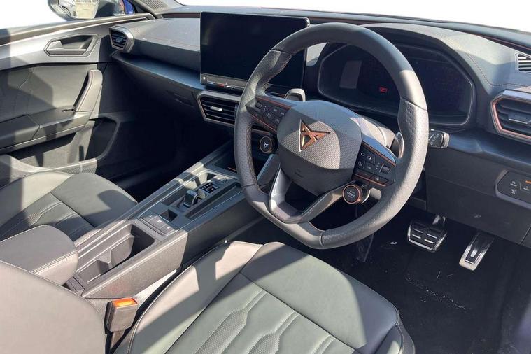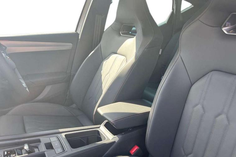 CUPRA drive profile selection with 4 modes (Comfort/Cupra/Sport/Individual), throttle response and gearshift mode, Digital cockpit, E-call, Four x USB Type C ports, Front assist with forward collision warning braking reaction to vehicles, pedestrians and cyclists, Full link smartphone integration with Mirror Link, wireless Apple CarPlay and wired Google Android Auto, Lane assist, Lockable tailgate, Park assist (inc front/rear parking sensors), Rear view camera, RPM, trip computer, outside temp gauge, instrument light brightness, low fuel warning light, lights on reminder, gearshift indicator, Service interval indicator, Start/stop system with regenerative braking, Wireless phone charger, 10 amp mode 2 charging cable, 16 amp mode 3 charging cable, 3.6 kw On-board charger, Standard suspension, XDS electronic differential lock and dynamic traction support, Auxiliary input socket, Auto dimming rear view mirror, Body colour door handles, Body coloured bumpers, Cupra sports bumpers, Dark tinted rear windows, Electric front/rear windows, Electrically adjustable, heated and folding door mirrors, LED front fog lamps with cornering function, LED rear fog lamp, Matrix LED Headlights with variable light distribution, Matrix Beam and Dynamic headlight range control, Rain sensing wipers, Rear coast to coast lighting, Rear diffuser with twin exhaust pipe on each side with simulated exhausts, Rear side wing doors, Rear wash/wipe, Separate daytime running light with automatic headlight control and coming home feature, Third brake light, 12v power supply in centre console, 3 seat bench in 2nd row, 5 headrests, 60/40 split rear bench seat with armrest, Ambient lighting (glovebox, footwell, ambient lighting multicoloured), Black headlining, Cupra sports pedals, CUPRA Supersports, heated steering wheel with satellite buttons, Dust/pollen filter, Folding boot cover, Front and rear reading lights X 4, Front centre armrest, Heated front seats, Height/reach adjust steering wheel, Illuminated interior front door sills, Interior wraparound lighting, ISOFIX points in outer rear seats with top tether anchorage points, Luggage tie-down hooks, Nappa leather upholstery, Powered driver seat with memory and manual height adjustment for passenger, Powered lumbar adjustment on driver side, manual on passenger side, Single front passenger seat, Sports bucket seats, Storage pockets on rear of front seats, Sunvisors with illuminated mirror, Three zone climate control, Dynamic and comfort pack - Leon Cupra, Media system plus with navigation pack - Leon Cupra, Safety and driving pack (XL) - Cupra leon, 3 point seatbelts on all rear seats, ABS, Brake control system - ESC and brake booster, Child proof door locks, Cupra black brake calipers, Driver and front passenger airbags with front passenger airbag de-activation, front side and curtain airbags, Electronic parking brake, Extended safety system - seat belt tensioner, window closure and hazard lights, Hill hold control, Rear disc brakes, Seat belt reminder for front and rear seats, Tiredness recognition system, Tyre pressure monitoring system, Anti theft alarm system with interior monitoring in cab, backup horn and towing protection, KESSY Advanced - Keyless start, keyless entry, Locking wheel bolts, Chrome and copper interior detailing, Copper stitching on dashboard trim, 19" Aerodynamic machined sport black and silver alloy wheels with 91Y tyres, Breakdown kit, Tool kit,