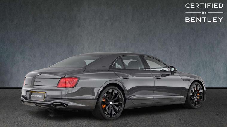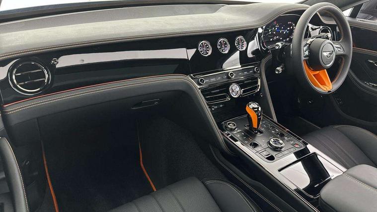 4G LTE telephone module, Apple car play, Blind spot assist, Bluetooth telephone connectivity, Car computer, City assist, Continuous damping control, Emergency services call system, Engine start/stop button, Front/rear park distance control, Hands free boot opening, Inductive phone charger, Infotainment system/satellite navigation, Power latching to all doors for easy entry, Rear cross traffic alert, Speed sensitive power steering, Telephone voice dialling, Top view camera, Anti roll bar front and rear, Battery charger, Dynamic ride with electronic All wheel steer, Digital TV tuner, Wi-Fi hot spot, 3rd brake light, Acoustic glass, Adaptive brake lights, Auto dimming door mirrors, Automatic headlamps, Body colour door mirrors, Elec/heat/adj/fold door mirror+memory, Electric front windows, Front fog lights, Full LED Matrix headlamps with high-beam assist, Hidden antennae, LED daytime running lights, Rain sensor windscreen wipers, Rear boot, Rear diffuser, Rear electric windows, Rear side wing doors, 14 way Elec adj front seats/memory/lumbar control, 5 seats, Air Ioniser, Dinamica cloth upholstery, Door lights, Easy entry/electrically adj steering column+memory, Electric rear window sunblinds, Footwell illumination, Front head restraints, Illuminated centre console storage, Isofix attachments on outer rear seats, Key box matched to colour split, Multi-zone automatic climate control - two zone, Parking heater, Rear centre armrest with 2 cupholders + storage, Rear headrests, City specification pack - Flying Spur, Comfort specification pack - Flying spur, Precision diamond quilting specification pack - Flying Spur, 3 point inertia reel seatbelts on outer rear seats, ABS/EBD, Child safety lock, Driver/front passenger airbag, Drivers knee airbag, Electronic park brake with move-off assist, Electronic tyre pressure monitoring, ESP, Exit warning, Front and rear curtain airbags, Front and rear thorax airbag system, Front passenger airbag deactivation, Hydraulic Brake Assist (HBA), Motor Slip Regulation (MSR) - Engine Drag Torque Control, Traction control, Anti-theft wheel bolts, Bentley GPS advanced tracking system, Immobiliser, Keyless entry, Keyless ignition, Preparation for vehicle tracking, Remote central locking, Ultrasonic alarm, 5 year service plan, Tyre inflation kit,