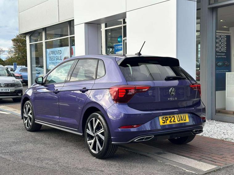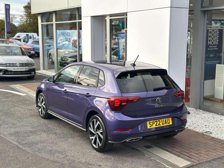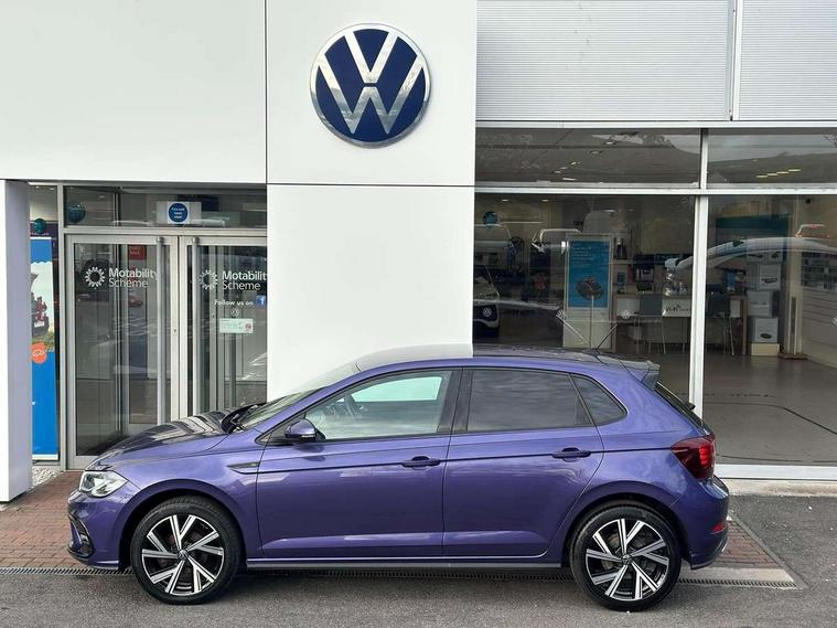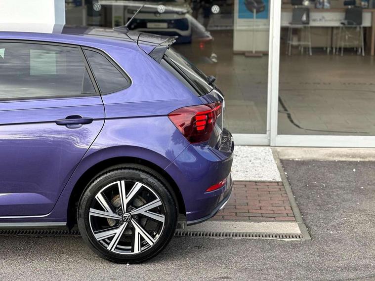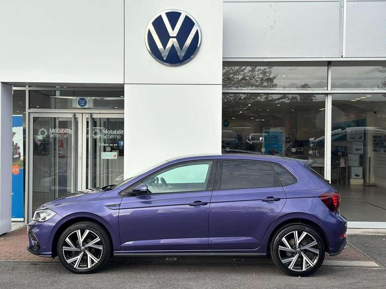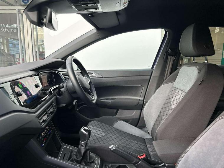 Adaptive cruise control without follow-to-stop and speed limiter, Bluetooth mobile phone interface, Digital Cockpit Pro with 10.25" Display, Driver alert system, Dynamic road sign display, Emergency call service, Power assisted speed sensitive steering, Preparation for We connect and We connect plus, Speedo and rev counter, electronic odometer, trip, service interval display and fuel gauge, Standard rear axle, Travel Assist - Lane keeping system and traffic jam assist, Travel assist including emergency assist, Trip computer, Warning signal and warning light for front and rear seatbelts not fastened, Washer fluid level indicator, Wireless app connect, Front wheel drive, Rear shock absorpion, Start-stop system with battery regeneration (recuperation - energy recovery during braking), DAB Digital radio, Diversity antenna for FM reception, Front and rear 6 speakers, Body colour bumpers, Body colour door handles, Body colour door mirrors, Electric front windows, Front fog lights with static cornering function, Front scuff plates with R-Line logo, Heat insulating darkened glass in side and rear windows, Heat insulating glass windscreen, Power folding adjustable/heated exterior mirrors and front passenger exterior mirror lowering function, Rear electric windows, Rear fog light, Rear side wing doors, Rear tinted glass from B-pillar backwards approx 65% tinted, Rear windscreen washer and wiper with interval delay, Third brake light, 12V power socket in centre console, 2 USB-C ports in the front, 2 USB-C charging sockets on the center console in the rear, 3 rear head restraints, 60/40 split folding rear seat and rear seat bench not split, Air care climatronic air conditoning system with active combination filter and 2-zone temperature control, Black roof lining, Ceramique headliner, Chrome plated radiator grille inserts, air vent surrounds and light switch surrounds, Door and side trim panel, Driver and front passenger seat height adjustment, Driver/passenger sunvisors with illuminated vanity mirrors, Front + rear carpet mats, Front centre armrest, Front footwell illumination, Front seat backrest storage pockets, Front sports comfort seats, Handbrake lever handle in leather, Isofix child seat preparation easy-fit (for two outer rear seats, and front passenger seat) compatible with I-size, Karoso artvelours cloth upholstery, Leather trimmed gear knob, LED interior light with switch off delay and dimmer, 2 reading lights front and rear, Luggage compartment cover, Luggage compartment floor, Luggage compartment lighting, Lumbar adjustment for front seats, Multifunction steering wheel, Single front passenger seat, Stainless steel pedals, Standard pedal cluster, Light and sight pack - Polo R-Line/Black Edition, 3 point height adj front seatbelts + pretensioners, 3x3 point rear seatbelts, ABS, Driver and front passenger airbag with front passenger airbag deactivation, Drivers and front passengers safety optimised head restraints, ESC (Electronic stability control) + EDL (Electronic Differntial lock) and ASR (Traction control), Extended and predictive pedestrian/ cyclist protection, Front curtain and side airbags with center airbag, Hill hold control, Manual child lock in rear doors, Single tone horn, Tyre pressure loss indicator, Alarm with interior protection, Anti-theft alarm system with interior monitoring, backup horn, and towing protection, Anti-theft wheel bolts, Electronic engine immobiliser, Chrome applications on rotary light, mirror adjustment, window regulator switches, outlet with frame in black, Dark grey anodised matt decorative inserts in dash and front door panels, Low rolling resistance tyres,