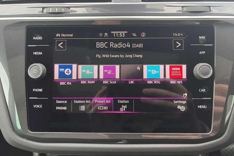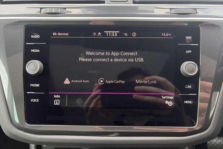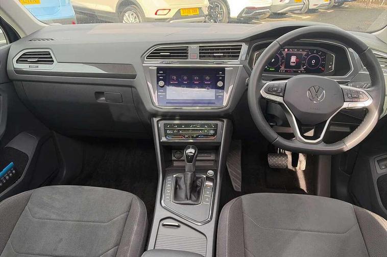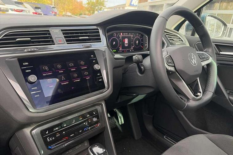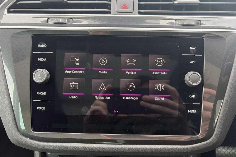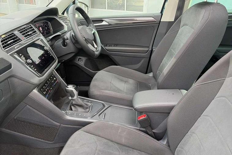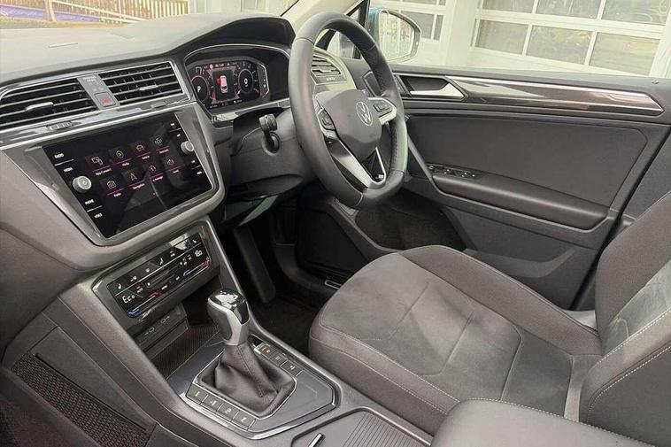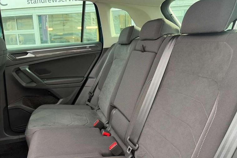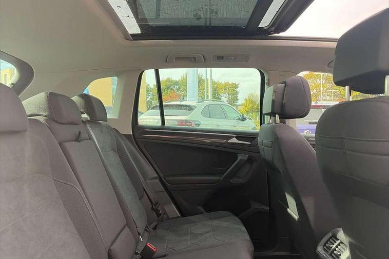 Adaptive cruise control ACC stop and go including speed limiter, App-Connect incl. App-Connect Wireless for Apple CarPlay and Android Auto, Bluetooth phone integration system, Distance control assist, Driver alert system, Driver profile selection, Dynamic road sign display, eCall emergency call system, Electromechanical speed sensitive power steering, Engine start/stop button, Lane keeping system Lane Assist, Lights on warning, Motorised electric tailgate operated via key fob, drivers door and foot movement under tailgate, Multifunction front facing camera, Outside temperature display, Premium multifunction display with multi colour display, Remote control boot opening, Rev counter, Revision / skills operating concept travel assistant, Service interval indicator, Speed limit display, Start/stop system with regenerative braking, Tailgate/trunk lid unlocking from outside, Trip computer, Warning sound and light for doors and tailgate open, Battery regeneration during braking, Charging cable Mode 3 Type 2 / 3 (16A), XDS electronic differential lock for improved traction and handling, 4 X 20 watt output, 8 Speakers, Diversity antenna for FM reception, Radio, SD card slot, Simultaneous pairing of 2 compatible mobile devices, SMS functionality - read, compose and send SMS messages using touch-screen display, Title and cover art display, USB C ports, Aluminium door sill protectors, Auto dimming interior rear view mirror, Automatic headlight control system, Body colour door handles, Body coloured bumpers, Body coloured door mirrors with integrated indicators, Coming/leaving home lighting function, Dynamic headlight range control, Front and rear electric windows, Heated rear window, High level 3rd brake light, IQ light-Adv high beam, Dynamic light assist for LED matrix headlamp+LED separate DRL+DCL, dark red rear LED tech, Poor weather light+ cornering light, Laminated safety glass windshield, heat and sound insulating, LED rear number plate lights, Privacy glass for rear side windows and rear window, Rain sensor windscreen wipers, Rear exhaust tailpipe, Rear fog lamp, Rear side wing doors, Rear windscreen washer and wiper with interval delay, Side and rear windows in heat insulating glass, Tilting and sliding panoramic sunroof with rear panoramic sunroof, Trailer Stability Programme, Windscreen wipers/ intermittent wipe + 4 position delay, 12V outlet in center console rear and in luggage compartment, 12V outlet in front and tray, 2 cup holders in front, 2 LED front reading lights, 2 LED rear reading lights, 3 bench rear seats in 2nd row, 3 rear headrests, 4 load lashing points, 40:20:40 split folding rear seats, Air Care Climatronic 3 zone automatic climate control with enhanced air filter and controls in the rear, Backrest release for left front seat, Climate control unit rear with touch function, Door and side trim panel in foam film and woven fabric, Front centre armrest, Front footwell illumination, Front seats head restraints (x-adjustment), Height adjustable front seats, Height/reach adjust steering wheel, Instrument lighting white adjustable panel illumination, Interior light with delay, Isofix Preparation 2 Rear child seats, Leather gear knob, Lockable cooled glovebox, Luggage compartment lighting, Luggage net, Rear bench seat asymetrically split folding, longitudinally movable and folding with load-through hatch and center armrest, Remote unlocking for rear seat backrest, Removable luggage cover, Removable rear headrests, Safety optimised front head restraints, Single front passenger seat, Sliding/reclining rear seats, Standard rear seat release, Storage compartment in driver's door, Storage compartment in passenger's door, Storage compartment in rear doors, Storage compartments in luggage area left and right, Storage tray on dashboard, Sun visors with illuminated vanity mirrors, Top front comfort seats, Variable boot floor, height adjustable and removable, Easy open and close pack with safelock - Tiguan, Park assist pack - Tiguan, 3 point seat belt for centre rear seats, 3 point seat belts with seat belt pretensioners for the outer rear seats, Active bonnet, Curtain airbags for front and rear passengers, Driver/Front Passenger airbags, Drivers knee airbag, Electronic parking brake with auto hold, Electronic Stability Control with driver steering recommendation, ABS, ASR, EDL, EDTC and trailer stabilization, Front assist with autonomous emergency braking (for Adaptive Cruise Control ACC up to 130 mph), Front disc brakes, Front passenger airbag deactivation, Front side airbags, Height adjustable front 3 point seatbelts + pretensioners, Hill hold control, Manual child proof rear door locks, Pedestrian monitoring system, Power assisted brakes, Proactive passenger protection system in combination with front assist, Rear disc brakes, Rigid safety cell with front and rear crumple zones, Two tone horn, Tyre pressure loss indicator, Warning sound and light for front seat belts if unfastened, Anti theft alarm system with interior monitoring, backup horn and towing protection, Anti theft wheel bolts, Central locking system with safelock radio remote control and 2 remote control folding keys, Electronic engine immobiliser, Tool kit, Tyre mobility kit Includes 12V compressor and tyre sealant,