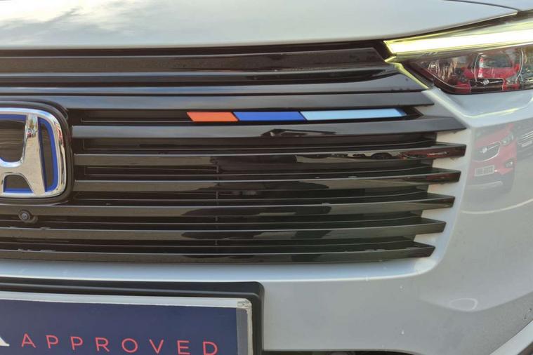 7" TFT instrument cluster, Adaptive cruise control, Adjustable speed limiter, Agile handling assist, BLIS (Blind Spot Information System) with Cross Traffic Monitor, Bluetooth hands free telephone connection, Drive modes select (Eco, normal and sport), Driver attention monitoring system, eCall emergency system, Econ mode, Emergency stop signalling system, Forward collision warning, Front parking sensors, Handsfree power tailgate with walkaway close, Honda CONNECT with Navigation 9" touchscreen, AM/FM/DAB, Apple Carplay and Android Auto, live traffic info, Idle stop, Intelligent speed limiter, Lane departure warning, Lane keep assist, Low speed following, Multi info display, Multi view camera, Power meter, Rear parking sensors, Road departure mitigation, Tachometer, Traffic jam assist, Traffic sign recognition, Variable gear ratio electric power steering, WiFi connectivity, Wireless apple carplay, Wireless charger, Vehicle stability assist, 10 speakers includes premium audio, centre speaker, front tweeter and subwoofer, 2 USB sockets in rear, 2x USB Front socket (1 data & 1 charge), Steering wheel mounted remote controls, Adaptive driving beam, Auto dimming rear view mirror, Auto headlight adjuster, Automatic headlights, Automatic headlights with on/off timer, Coming/leaving home function, Automatic rain sensing wipers, Body colour bumpers, Body colour tailgate spoiler, Body coloured door handles, Dark colour roof lining, eHEV emblem, Electric front and rear windows, Electrically adjustable, heated and folding door mirrors, Exclusive styling in black lower bumper, fog garnish and bumper skid garnish, black lower door garnish with blue accent/trio colour oranment on grille, Exclusive styling in Piano black front console garnish, blue stripe garnish on door and instrument panel, blue stiches on seats, Exterior mirror tilt for reverse, Fixed panoramic glass roof, Headlight washers, Heated front windscreen, Heated rear window, High gloss window garnish, LED 3rd brake light, LED cornering lights, LED daytime running lights, LED front fog lights, LED front sequential turn, LED headlamps, Privacy glass, Rear side wing doors, Rear wiper, Red and clean lens LED rear lights, Shark fin antenna, Two tone roof, Variable front intermittent wipers, Windscreen shadeband, 3 rear headrests, 3 seat bench in 2nd row, 60/40 split folding rear seat, Accessory sockets in front, Ambient lighting on roof, Blue interior panels, Cargo net hooks, Courtesy lights, Driver seat back pocket, Driver's seat manual height adjust, Driver/passenger sunvisors with illuminated vanity mirrors, Dual automatic air conditioning, Front head restraints, Front map lights, Front seat armrests, Genuine leather shift knob, Genuine leather steering wheel, Heated front seats, Heated steering wheel, Isofix points, Luggage floor box, Magic seats, Meter illumination light, Normal pedals, Paddle shift controls, Passenger seat back pocket, Rear centre armrest, Rear reading lights, Rear ventilation, Silver interior door handles, Single front passenger seat, Synthetic leather and fabric upholstery, Tilt/telescopic adjustable steering wheel, Tonneau cover, Trunk light, 3x3 point rear seatbelts, ABS+EBD+Brake assist, Automatic brake hold, Collision mitigation braking system, Collision mitigation throttle control, Deflation detection system, Driver and front passenger airbags, Driver SRS airbag (single stage inflation), Electric child locks, Electronic parking brake, Front and rear curtain airbags, Front and rear safety belts with Emergency Locking Retractor, Front side airbags, Hill descent control, Hill start assist, Low speed brake system, Paddle deceleration control, Passenger SRS airbag cut-off device, Regenerative braking system, Whiplash lessening front headrests, Immobiliser, Mirrors and windows key fob operation, Remote central locking with 2 remote folding keys, Security alarm, Smart entry and start system, Superlocking, Tyre repair kit,