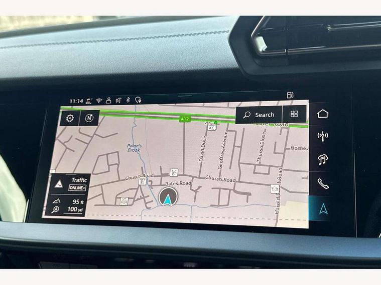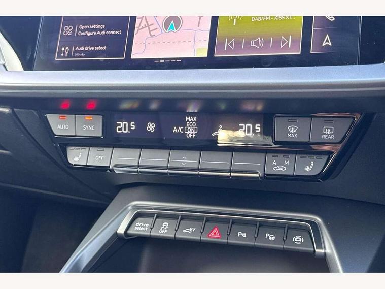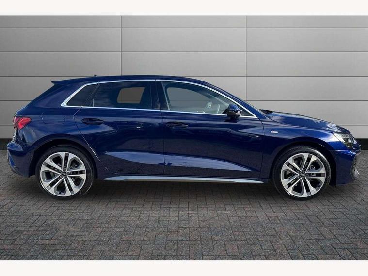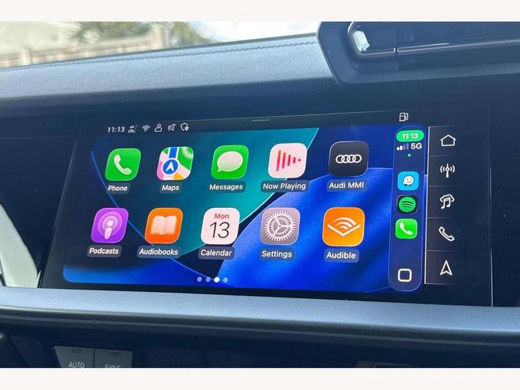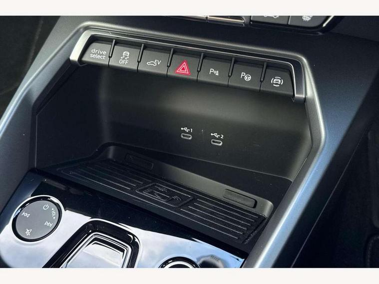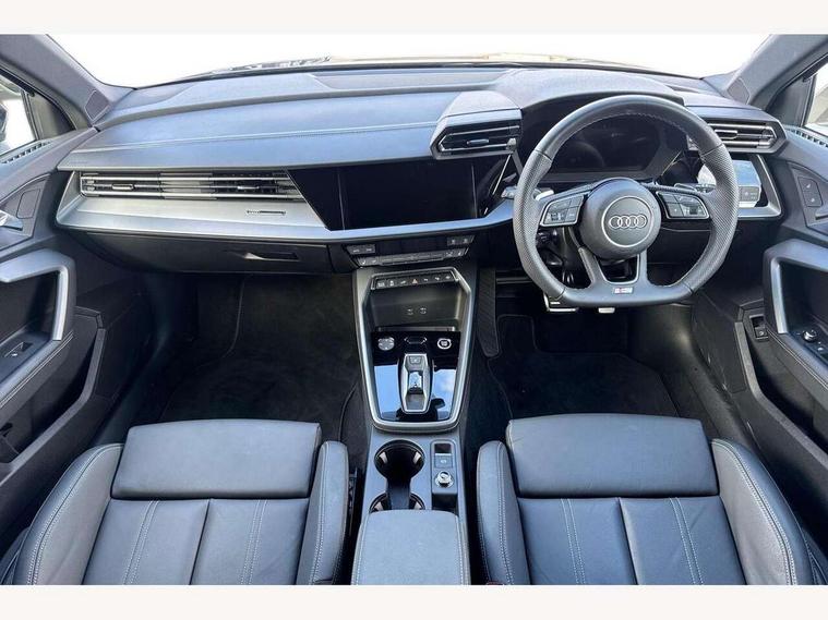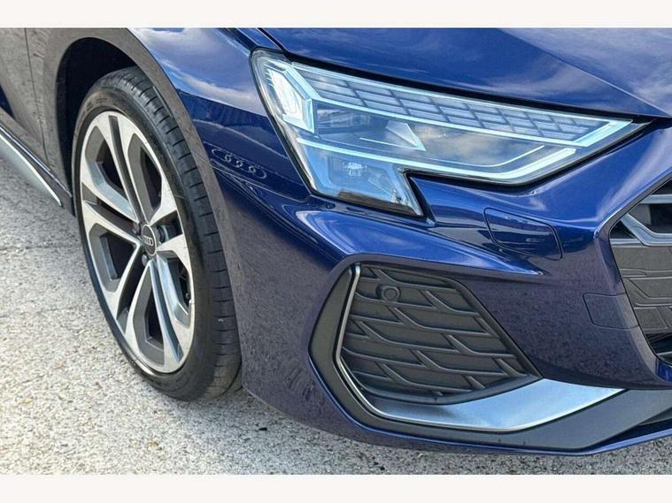Adjustable speed limiter, Audi drive select, Audi smartphone interface with app store includes wireless Apple carplay, Android auto and Amazon alexa integration, Audi virtual cockpit plus - 12.3" full HD resolution dynamic digital instrument cluster, Automatic start/stop system with recuperation, Bluetooth interface, Camera based traffic sign recognition, Collision avoidance assistant, Cruise control, Distraction and Fatigue warning, e-Call (emergency call), Electromechanical power speed sensitive steering, Emergency assist, Lane departure warning system, MMI Navigation Plus with high resolution 10.1" colour touch screen display, Park Assist with parking system Plus, Service indicator, Trip computer, Voice control system with natural language interaction, 3 pin 10 amp domestic charging cable, CCS socket for DC charging, Charging cable for public charging, mode 3 (type 2), 32 A, Compact charging system, Industrial connector CEE 32 A, 230 V, length 1.6 m, Standard suspension, Type 2 socket for AC charging, Audi Phonebox light with wireless charging, Audi sound system - 10 loudspeakers including centre loudspeaker and subwoofer, DAB Digital radio, USB ports with charging function in the rear, Acoustic glass windscreen, All weather light, Aluminium window trim, Auto dimming frameless rear view mirror, Automatic dynamic range control, Body colour exterior mirrors, Chrome exhaust tailpipes, Dipped beam, main beam, position light and turning light, Electrically adjustable/heated/folding/auto dimming door mirrors with integrated LED indications + kerb view function for passenger side, Exterior model badging, Front and rear side air inlets in grained matt black with dark liquid chrome frame, Front electric windows, Front radiator grill in high gloss dark chrome, Heat insulating glass windscreen, Illuminated door sills with aluminium inserts at the front with S logo, Intersection light, LED 3rd brake light, LED brake lights, LED daytime running x3, LED headlights with LED rear lights and dynamic rear indicators, LED rear number plate lights, LED reverse light, LED tail lights, Light and rain sensors, Manoeuvring light, Motorway light, Privacy glass - dark tinted rear window, rear door and side windows, Rear diffuser and grill in grained matt black with inlay in dark liquid chrome, Rear electric windows, Rear side wing doors, Rear wiper, S line bumpers, S roof spoiler, Side S line emblems on front wings, Side sill trim in dark liquid chrome, Static Cornering lights, 12V socket and storage compartment in front centre console, 3 seat bench in 2nd row, 3 spoke flat bottomed leather multifunction sport steering wheel with gear shift paddles, 3-zone deluxe automatic air conditioning, 4 way electrically adjustable lumbar support for driver and front passenger, 40/20/40 split folding rear seat bench, Black cloth headlining, Black front and rear floor mats, Convenience auxiliary air conditioning, Front and rear centre armrest in artificial leather with contrasting stitching on armrests and instrument panel, Front and rear headrests, Heated front seats, Height and reach adjustable steering wheel, Manual boot compartment lid, Manually adjustable front seats, Rear centre armrest with cupholder, S badging on the steering wheel, Seat side bolsters, Single front passenger seat, Stainless steel pedals and front footrest in black, Twin leather upholstery with front sports seats S embossed logo, Aluminium interior elements pack - A3, Multi-coloured LED interior lighting package with Multi-coloured contour lighting of instrument panel - A3, 3x3 point rear seat belts, Acoustic vehicle alerting system, Driver and front passenger airbag with passenger airbag deactivation, Electronic Stabilisation Control (ESC) including ABS, ASR and EDL, First aid kit with warning triangle and 2 safety vests, Front side airbags with head airbags and interaction airbag, Hill hold assist, Pre-sense front with pedestrian and cyclist detection, Seatbelt monitoring, Tyre pressure loss indicator, Anti theft alarm, Anti-theft wheel bolts, Electronically operated child locks, Immobiliser, Remote central locking with safelock, Black dashboard, Inlay in dark aluminium spectrum, Tyre repair kit,