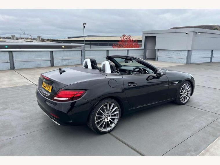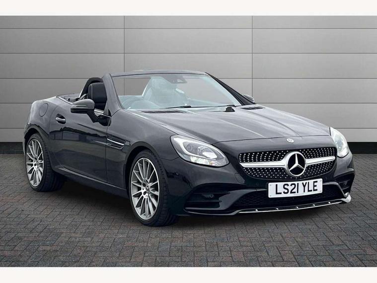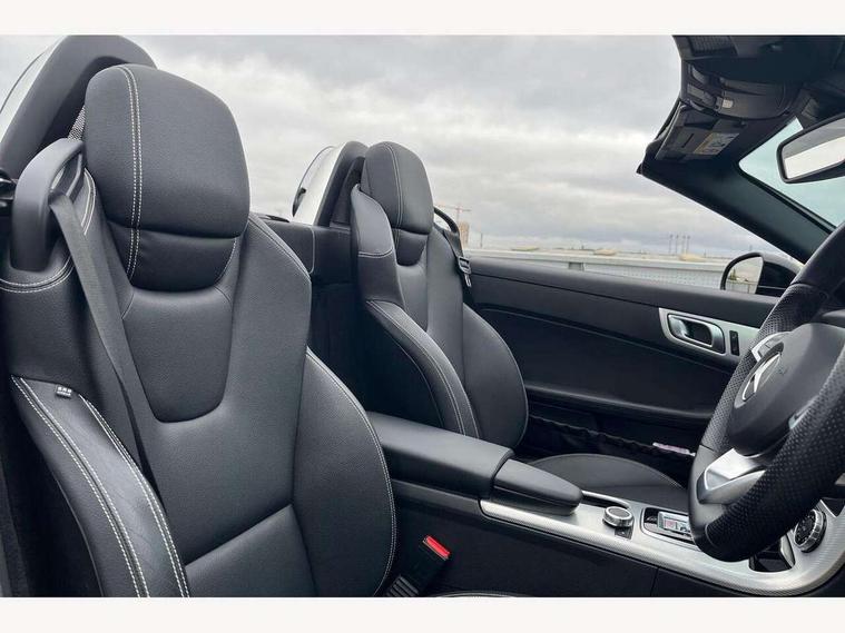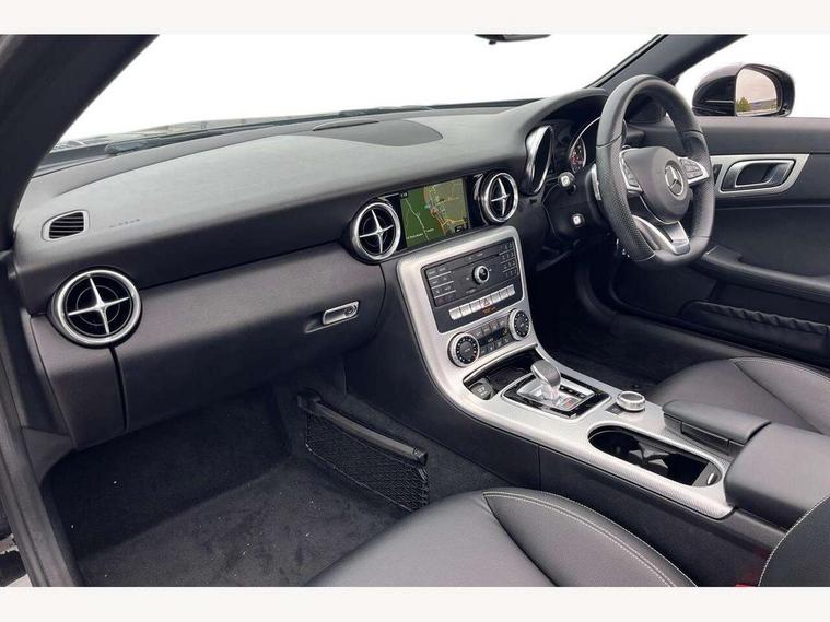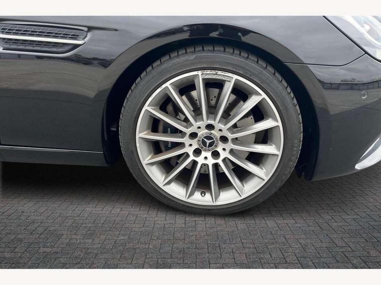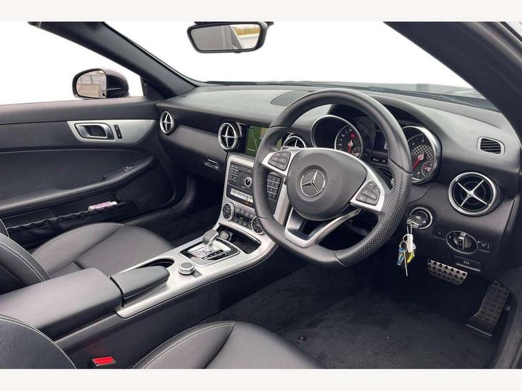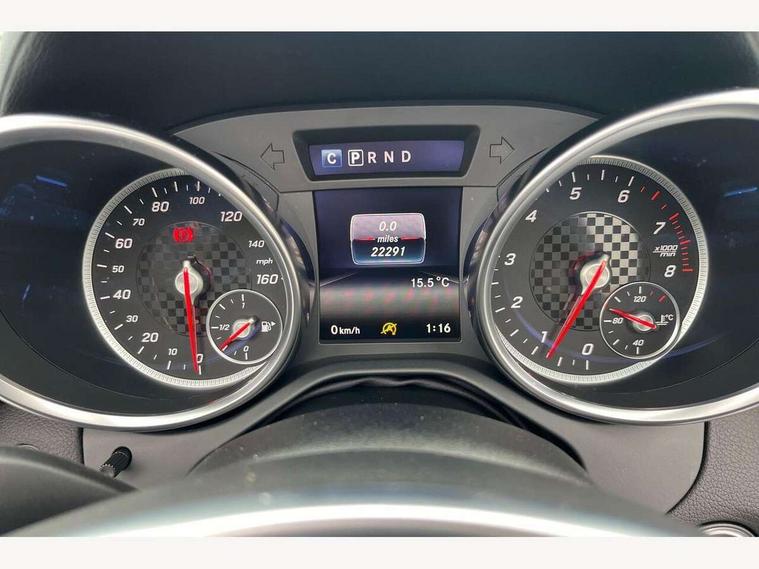 7-inch high-resolution TFT colour display, Attention assist, Bluetooth interface with HD voice capable hands free function and audio streaming for playing music files, Chequered flag design instrument cluster, DYNAMIC SELECT with a choice of driving modes (ECO, Comfort, Sport, Sport+ and Individual), ECO start/stop function, Mercedes connect me with remote online services, Outside temperature display, Remote boot release, Service indicator (ASSYST), Trip computer, Petrol Particulate Filter, Sports suspension tuned for improved handling and driving dynamics, lowered by 10 mm, Central controller dial to operate audio functions and telephone, DAB digital radio tuner, Media interface port for iPod or iPhone, Two USB ports in centre console, Adaptive brake lights, AMG bodystyling front and rear aprons and side skirts, AMG sports exhaust system, Automatic headlamp activation, Body colour bumpers, Diamond radiator grille with chrome pins and chrome plated louvre, Door sill panels with Mercedes Benz lettering, Electric windows, Electrically adjustable and heated door mirrors, Electro hydraulic vario roof, LED tail lamps/brake lamps and indicators, 3 spoke flat bottom multi-function perforated leather steering wheel, AMG floor mats with AMG lettering and piping in red, Automatic child seat recognition sensor, Brushed stainless steel sports pedals with rubber studs, Crash responsive head restraints, Driver and front passenger sports seats, Front centre armrest, Independently lockable glove compartment stowage, Seats with height adjusters, Acceleration skid control, Active bonnet pedestrian safety measure, Active brake assist, Adaptive brake system with hold function, Anti lock braking system (ABS) with brake assist, Brake pad wear warning indicator, Driver and passenger head and side airbags, Dual stage driver/passenger airbags, Electric parking brake, Electronic Stability Programme, Perforated front brake discs and brake calipers with Mercedes-Benz lettering, Pre-Safe anticipatory safety system, Seatbelt pretensioners, Tyre pressure monitoring system, Warning triangle and first aid kit, Alarm system/interior protection/immobiliser, Remote central locking, Tyre sealant kit,