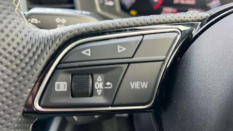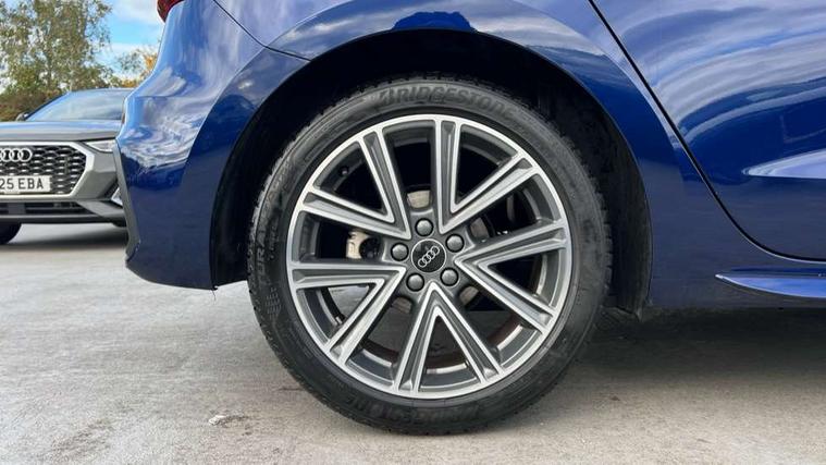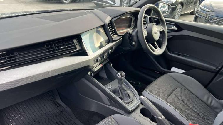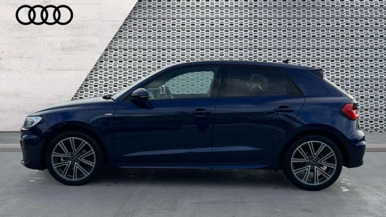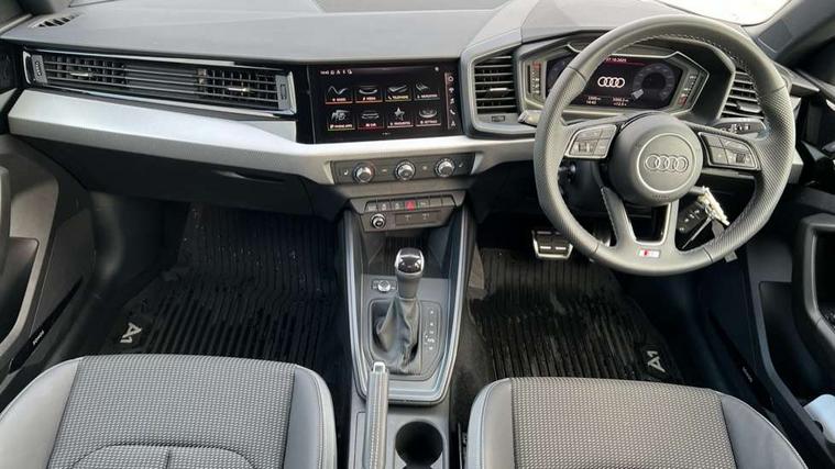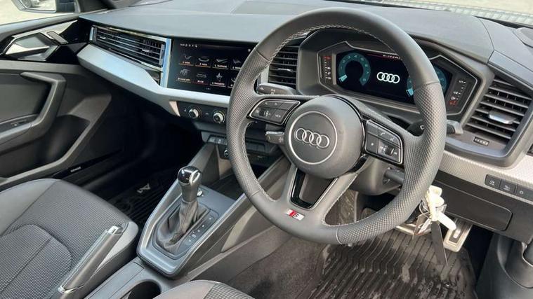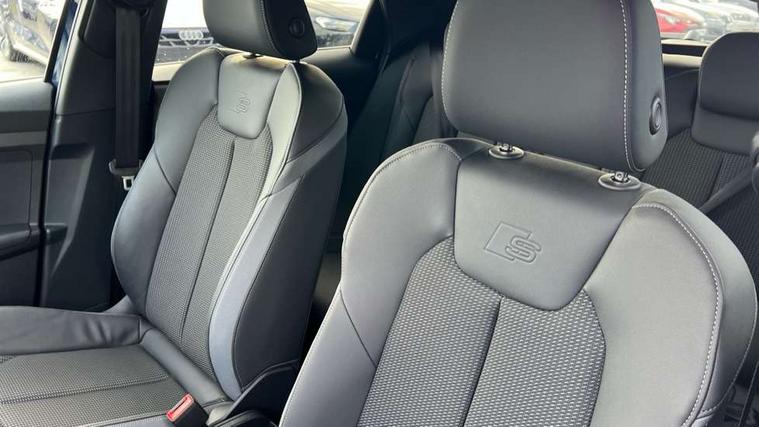 10.25" Digital instrument cluster display classis style instrument dials + speed, odometer, time, outside temperature, telephone menu + fuel level warning, Advanced driver attention and drowsiness monitor, Audi connect emergency call and service, Audi drive select, Audi remote connect and control, Audi smartphone interface, Bluetooth interface, Camera based traffic sign recognition, Cruise control, Driver's information system, Electromechanical power steering, Lane departure warning system, Rear parking sensor, Service interval indicator, Speed limiter, Start stop system with recuperation, Voice control system, Washer fluid level indicator, Sports suspension, 2 x USB type C connection points, 6 loudspeakers, DAB Digital radio, MMI radio plus with 10.1" colour MMI display screen and MMI touch, Auto dimming rear view mirror, Body coloured door mirrors, Door sill trims with aluminium inlays and S line logo in front, Electric front and rear windows, Electrically adjustable, heated, folding door mirrors with integrated LED side indicator, Front side air inlets in grained matt black and C frame in anthracite black, Headlight cleaning system, Heat insulating glass windscreen and side windows, Heated rear windscreen, High level LED brake light, LED daytime running lights, LED headlights with range control LED rear lights + dynamic rear indicators, Light and rain sensors, Privacy glass, Radiator grille and rear diffuser in matt anthracite black, Radiator protective grille frame in matt aluminium silver, Rear fog lights, Rear side wing doors, Rear wiper, S line badges on front wings, Side front spoiler lips in grained matt black, 12V socket in centre console with two cup holders, 3 rear seats with headrests, 3 seat bench in 2nd row, 3 spoke leather multi-function plus steering wheel features S badging and grips in perforated leather with contrast stitching, 40:60 Split folding rear seat or fully collapsed, Black cloth headlining, Front and rear velour black floor mats with contrast stitching in fine silver, Front head restraints, Front passenger seat, Height and reach adjustable steering wheel, Interior lighting includes roof module, front and rear reading lights and right luggage compartment lighting, ISOFIX child seat mounting for front passenger and outer rear seats including top tether attachment point of outer rear seats, Leather gear knob with aluminium trim, Leather handbrake grip, Manual air conditioning, Manual height adjustable for driver and front passenger seat, Manually adjustable lumbar support in front seats, Stainless steel pedals, Ambient lighting package - A1, Luggage compartment pack - A1, S line exterior styling pack - A1 Sportback, 3x3 point rear seatbelts, Audi pre-sense front with pedestrain and cyclist recognition, Brake assist function, Driver and front passenger airbag with front side and head airbags, Electronic Stability Control including ABS, EBD, ASR and EDL, Front passenger airbag deactivation switch, Hill hold assist, Manual rear child locks, Seatbelt height adjustment for front seats, Seatbelt monitoring, Tyre pressure loss indicator, Warning triangle and first aid kit, Anti theft alarm, Anti theft wheel bolts, Immobiliser, Remote control key with safelock, Aluminium trim for control switches, air vents and digital instrument cluster, Black dashboard, Silver grey inlays polygon structure in diamond paint finish, Structured grey accent surfaces insert of air vents, interior door handle recesses and centre console in quartz paint finish,