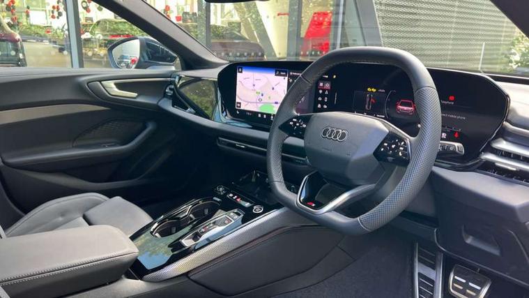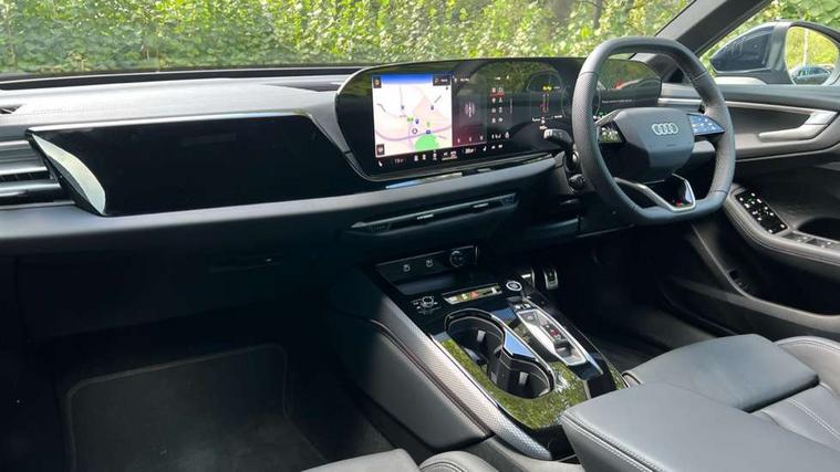 Adaptive cruise control, Advanced driver attention and fatigue montior, Audi application store, Audi assistant, Audi connect emergency call and service, Audi drive select, Audi smartphone interface, Audi virtual cockpit plus with 11.9" OLED colour display, Automatic start/stop system with coasting functionality, Camera based traffic sign recognition, Intersection assist, Lane departure warning, MMI navigation plus with high resolution 14.5" OLED touchscreen colour display, Park assist plus, Parking system plus with 360 display, Progressive steering with servotronic, Rear view camera, Swerve assist and turn assist, Traffic sign based speed limiter, Sports suspension lowered by 20mm, 2 USB-C ports in both the front and rear, Audi sound system impressive sound with 10 loudspeakers including centre speaker and subwoofer, 6-channel amplifier with a total output of 180 watts, DAB digital radio reception, Smartphone compartment with wireless charging, Aluminium roof rails, Aluminium window trims, Auto dimming rear view mirror, Body colour door mirrors, Door mirrors - electrically adjustable, heated, folding and auto dimming on both sides, Front and rear electric windows, Front door sill trims with aluminium inlays, illuminated with 'S' logo, High beam assist, LED headlights Plus incl. digital daytime running lights, turning light, all-weather light, motorway light, manouevring light and intersection light, LED rear lights pro incl. dynamic rear indicators and illuminated light strip with animated coming and leaving home function, LED third brake light, Privacy glass, Rear and side windows with heat insulating glass, Rear side wing doors, Rear wash/wipe, S Line badges on the front wings, S line bumpers, radiator grille and diffuser in phantom black and diffuser insert in matt anthracite, White rhombus logo projection light in exterior mirrors, Windscreen with acoustic glazing, 3 rear headrests, 3 seat rear bench, 3 spoke leather steering wheel with multi-function buttons with touch control, flattened on top and bottom, with S badging and contrast stitching, 3-zone automatic climate control, 40:20:40 split folding rear seat bench with centre armrest and cup holders, Comfort front centre armrest, Front and rear floor mats, Front seats with manual adjustment for position and 4-way electric lumbar support, Front sport seats with integrated headrest and S embossed logo, Headlining in black cloth, Heated front seats, i-Size child seat mounting on the front passenger side and outer rear seats, i-Size and top tether on the outer rear seats, Luggage compartment lid, electrically opening and closing, Manual steering column height and depth adjustment, Single front passenger seat, Stainless steel pedals and footrest, Steering wheel grips in perforated leather and shift paddles, Ambient lighting package plus - A5, 3x3 point rear seat belts, Driver airbag, Electric child safety locks, First aid kit with warning triangle and vests, Front emergency brake assist, Front passenger airbag, Front passenger airbag deactivation, Front side airbags with head airbag system and front interaction airbag, Hill hold assist, Seat belt monitoring with rear seat occupant reminder, Tyre pressure loss indicator, Anti theft alarm, Anti-theft wheel bolts, Keyless Go, Accent surfaces and control buttons in gloss black, Black dashboard with contrast stitching, Inlays in matt brushed aluminium with linear embossing, anthracite, Softwrap in leatherette with contrast stitching, Upper and lower interior elements in leatherette, Tyre repair kit,