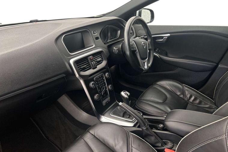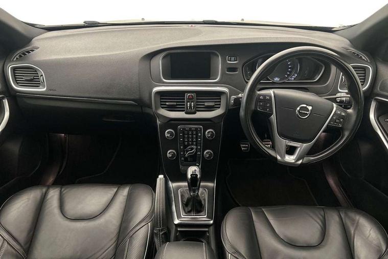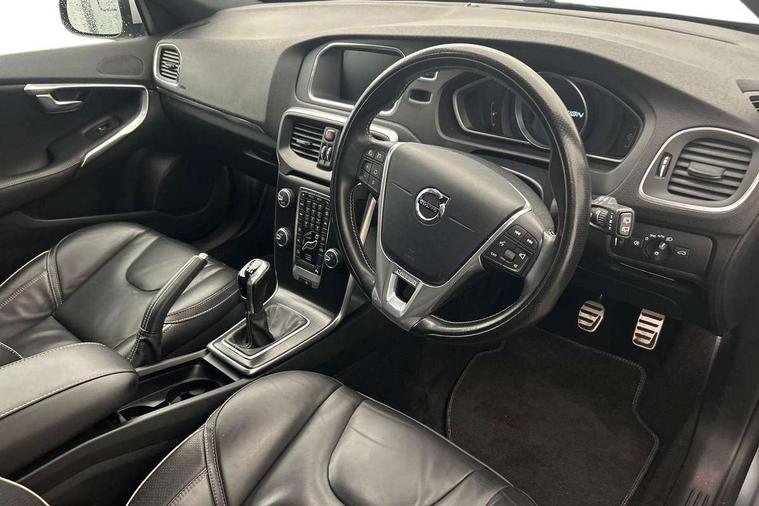 Active TFT crystal driver's instrument display, Front park assist, Information centre, Intelligent driver information system (IDIS), Rear park assist, Rear parking camera, Sensus navigation system, Service interval indicator, Speed limiter, Speed sensitive steering, Dynamic chassis, DAB Digital radio, Steering wheel audio controls, Active bending LED headlights, Adaptive brake lights, Auto dimming rear view mirror, Automatic folding door mirrors with ground lights, Automatic headlights, Body colour bumpers, Body colour door handles, Dark tinted rear side windows, Dual exhaust pipes, Electrically adjustable and heated door mirrors, Frameless rear view mirror, Front and rear electric windows, Headlamp levelling, Headlight cleaning system, High level LED brake light, Home safe and approach lighting, LED daytime running lights, LED Headlights, Matt silver finish door mirrors, R Design front grille, R Design lower front nose, Rain sensor windscreen wipers, Rear diffuser, Rear tailgate emblem, Rear wiper, Roof spoiler, Silk metal window trim surround, Visible VIN plate, 12V socket in front + rear tunnel console, 3 spoke leather steering wheel with chrome trim and R design logo, 5 headrests, 60/40 split folding rear seat, A-pillar parking ticket holder, Adjustable front centre armrest, Charcoal headlining, Door sill tread plates, Electronic climate control (ECC), Flexible load floor and grocery bag holder, Folding front passenger seat with height/lumbar adjust, Footwell lights, Front cupholders, Front door step lamp, Front reading lights, Front sports seats, Front storage box, Height adjustable drivers seat with lumbar support, Height/reach adjustable steering column, Illuminated driver/passenger vanity mirrors, Illuminated gear knob, Isofix attachments on outer rear seats, Load cover, Lockable glovebox, Pollen filter, R Design leather sports upholstery, Rear armrest with cupholder, Rear reading lights, Rear theatre lighting, Sports floor mats, Sports pedals, WHIPS - Whiplash Protection System, 5 x 3 point seatbelts, ABS+EBA, City safety braking system, Drivers knee airbag, DSTC-Dynamic Stability and Traction Control, Dual stage driver's airbag, Dual stage passenger airbag, Front/rear seatbelt pre-tensioners, Hill start assist, Inflatable curtain, Manual rear child locks, Passenger airbag cut-off device, Pedestrian airbag system, Side airbags, Side curtain airbags, Side impact protection, Tyre pressure monitor, Warning triangle, Anti-theft alarm including immobiliser/volume sensor + level sensor, Deadlocking system, Key integrated remote control central locking, Locking wheel nuts, Stealth aluminium trim,
