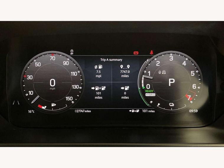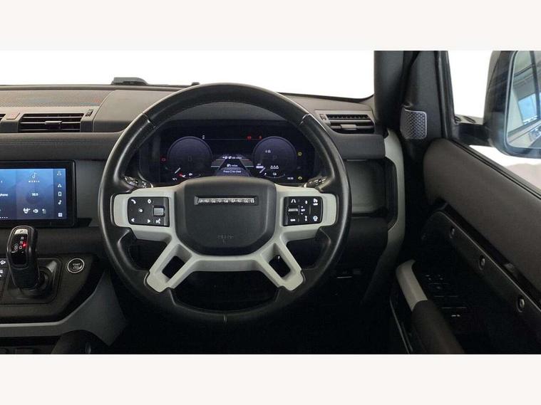 360 degree parking aid, 3D Surround Camera with 360 View, 180 Rear View, Front Traffic Detection, Forward Vehicle Guidance, Tow Hitch Assist and clear sight Ground View, Android Auto, Apple CarPlay, Assisted tailgate with soft close, Blind spot assist, Bluetooth system, Brake pad wear indicator, Clear exit monitor, Connected navigation pro, Cruise control + speed limiter, Driver condition monitor, Electric power assisted steering (EPAS), Lane keep assist, Push button start, Rear traffic monitor, Traffic sign recognition with adaptive speed limiter, Trip computer, Wade Sensing, Wireless device charging with phone signal booster, 7 kW onboard charger, 8 speed automatic transmission, AC/DC charging, Adaptive dynamics, All wheel drive system, Electronic air suspension, Home charging cable mode 2 basic, Public charging cable, Twin speed transfer box, DAB Radio (Digital Audio Broadcasting), Meridian 400w sound audio system with 11 speakers and subwoofer, Pivi pro connected, Automatic headlight levelling, Automatic headlights, Body coloured roof, Centre high mounted stop light, ClearSight interior rear view mirror, Electric heated/power fold door mirrors with approach lights and auto dimming driver side, Electric windows with one touch open/close and anti-trap, Follow me home lighting, Front fog lights, Heated rear window with timer, Heated windscreen, Illuminated metal treadplates with brand name script, LED tail lights, Matrix LED headlights with signature DRL, P400e badge, Privacy glass, Puddle lights, Rain sensing windscreen wipers, Rear fog lights, Rear side wing doors, Rear wiper, Side hinged tailgate, Signature graphic (with interior storage), Sliding panoramic roof, Solar attenuating windscreen, Trailer stability assist, 12 way heated and cooled electric memory front seats with 2 way manual headrests, 12V power socket in loadspace, 3 seat bench in 2nd row, 40:20:40 folding rear seats with centre armrest, Air quality sensor, Alpine lights, Cabin Air Purification plus, Durable rubber cabin flooring, Durable rubber loadspace flooring, Electric cabin pre conditioning, Electric reach + rake adjustable steering column, Footwell lights, Front centre console refrigerator compartment, Front passenger isofix child seat attachment, Grained Leather upholstery, Heated steering wheel, Leather gearshift, Light oyster morzine headlining, Loadspace cover, Loadspace Hook, Multifunction steering wheel, Overhead stowage for sunglasses, Premium cabin lighting, Rear headrests, Rear ISOFIX, Rear reading lights, Single front passenger seat, Standard interior, Standard leather steering wheel, Standard seat configuration, Storage glovebox, Sunvisors with illuminated vanity mirrors, Three zone climate control, Twin front cupholders with cover, Online pack with data plan - Defender, XS Edition exterior pack - Defender, 5 x 3 point seatbelts, ABS, Brake hold function, Cornering brake control (CBC), Cross car beam in light grey powder coat brushed finish, Customer configurable autolock, DSC - Dynamic Stability Control, EBD - Electronic brakeforce distribution, Electric parking brake (EPB), Emergency brake assist, Emergency braking, ESP + traction control, Front airbags with passenger seat occupant detector, HDC - Hill descent control, Hill launch assist, Low traction launch, Power operated child locks, Remote for (e-Call, Optimised assistance call, InControl app, Climate, beep and flash and door), RSC - Roll stability control, Seat belt reminder, TPMS (Tyre pressure monitoring system), Alarm, Immobiliser, Intrusion sensor, Keyless entry, Locking wheel nuts,