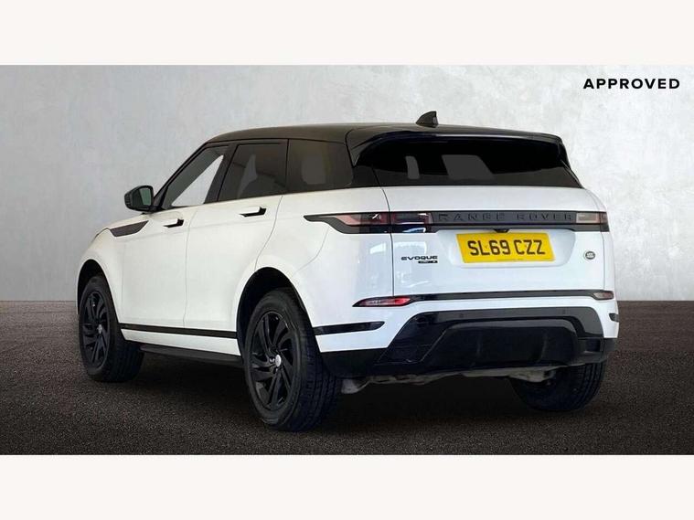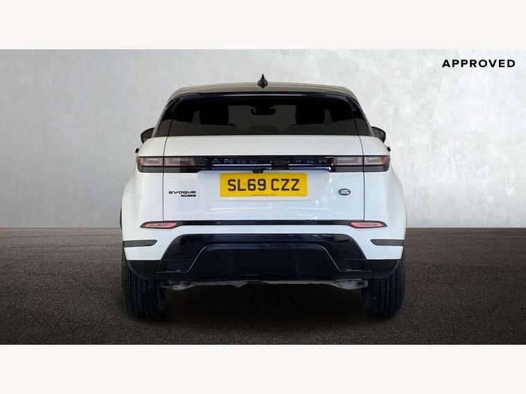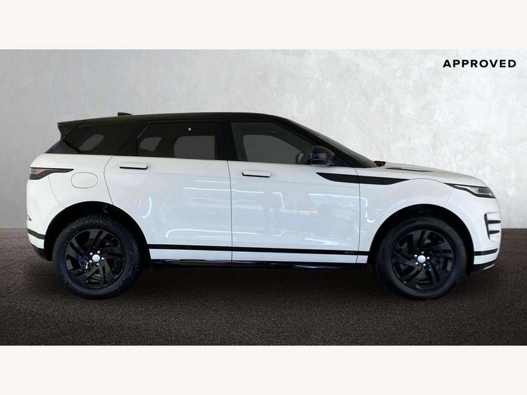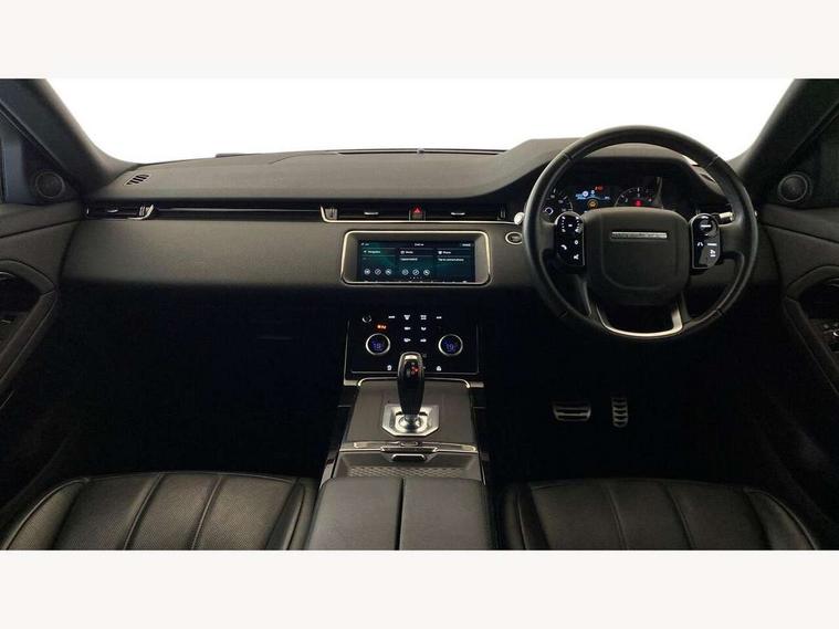Android Auto, Apple car play, Bluetooth connectivity, Brake pad wear indicator warning light, Driver condition monitor, Electronic power assisted steering (EPAS), InControl remote, Land Rover InControl apps, Lane keep assist, Navigation pro system, Pro services and wifi hotspot, Push button starter, Smart settings, Traffic sign recognition with adaptive speed limiter, Voice control system, All terrain progress control, Efficient Driveline, Passive suspension, Terrain Response 2 Auto, Digital Audio Broadcast radio-DAB, Steering wheel mounted controls, Electric windows with one touch open/close and anti trap, Evoque and R-Dynamic badge, Flush deployable exterior door handles, Heated rear window with timer, Heated washer jets, Heated windscreen, Rain sensing windscreen wipers, Rear fog lights, Shadow atlas bonnet and tailgate script, Tailgate spoiler, 40:20:40 split folding rear seats, Black gearshift paddles, Bright metal pedals, Isofix system on outer rear seats, Overhead lighting console, Overhead stowage for sunglasses, Passive front head restraints, Rear air vents, Rear centre headrest, Sunvisors with illuminated vanity mirrors, Twin front cupholders with cover, Twin sliding front centre armrest, Two zone climate control, Anti-lock braking system (ABS), Customer configurable autolock, DSC - Dynamic Stability Control, Electronic brake force distribution, Electronic parking brake, Electronic traction control, Front and rear seatbelt reminder, Hill descent control, Hill launch assist, Low traction launch, Power operated child locks, Roll stability control, Six airbags - Driver and passenger airbags/driver knee airbag/front side airbag and curtain airbags, Torque vectoring brake, Tyre pressure monitoring system, Alarm, Immobiliser, Intrusion sensor, Locking wheel nuts,