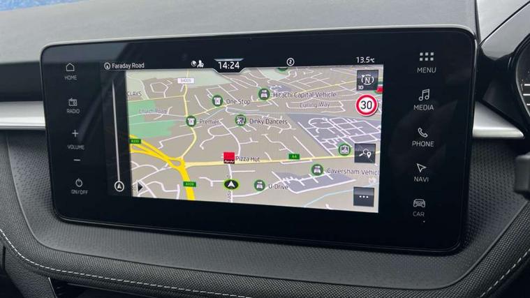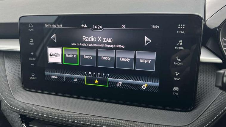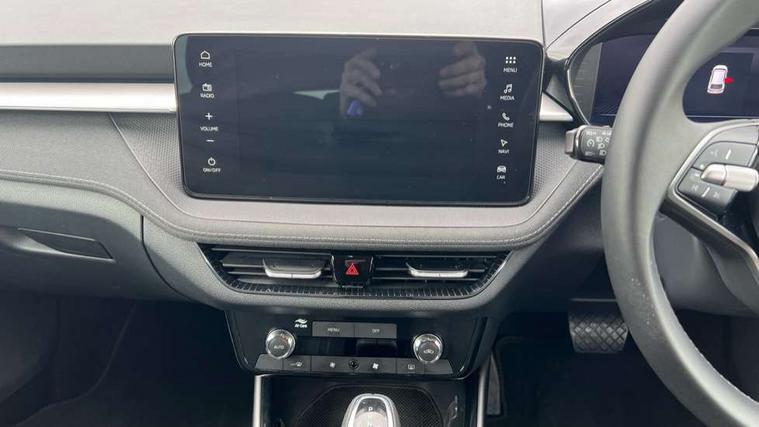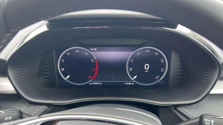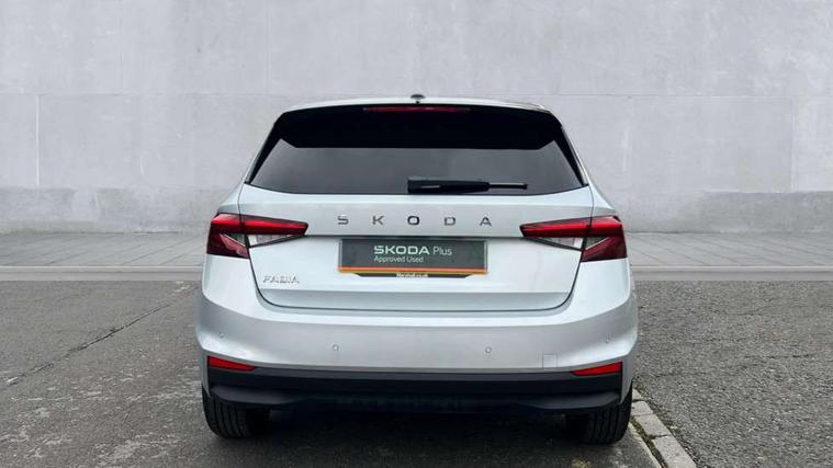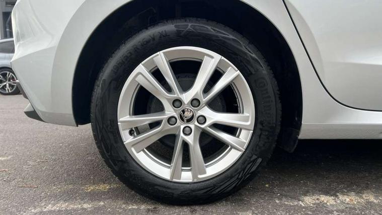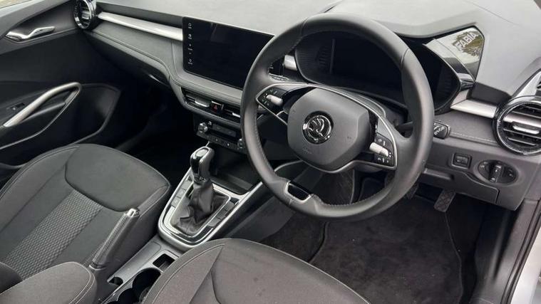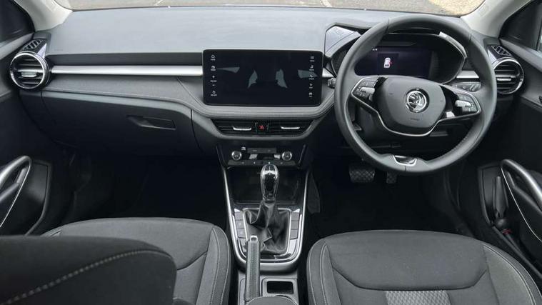 Advanced driver attention and drowsiness monitor, Bluetooth connection, Electromechanical power steering, Exterior temperature gauge, Service interval indicator, Traffic sign recognition, Virtual cockpit with 10.25" colour display, Wireless SmartLink for Apple CarPlay and Android Auto, 6 Speakers (4 in front and 2 in rear), 9.2" colour display skoda navigation system with voice control and web radio, Auxiliary socket for external MP3 player, DAB digital radio reception, Auto dimming rear view mirror, Body colour door mirrors, Body coloured bumpers, Chrome window surround, Door mirror integrated indicators, Front and rear electric windows, Front window wiper intermittent control, Headlight range control - Automatic, Ice scraper in fuel cap, LED daytime running lights with coming and leaving home feature, LED rear lights, Privacy glass, Rear LED fog light, Rear side wing doors, Rear window wiper with washing nozzles, Roof mounted spoiler, SKODA tailgate lettering in chrome, Third brake light, 2 reading lights in front and 2 reading lights in rear, 3 rear headrests, Backrest split and folding, Central console with removable cup holder and storage box, Chrome handbrake release button, Comfort seats, Door sills with fabia badging, Dual zone air conditioning with climatronic electronic control, Fabric upholstery, Front centre armrest, Gearshift knob/handle in leather, Hand brake lever handle in leather, Height adjustable front headrests, Height adjustable front seats, Height adjustable steering wheel, ISOFIX and TopTether anchorage points to the outer rear seats, ISOFIX and TopTether on the front passenger seat, Luggage compartment lighting, Manually adjustable lumbar support in front seats, Metallic grey interior door handles, Pollen filter, Rear seat bench unsplit, Single front passenger seat, Storm grey headlining, Sun visors with mirror and airbag label on passenger side, Textile floor mats, Ticket holder, Umbrella in drivers door, 3-point height adjustable front seats belts with pretensioner and force limiter, Automatic warning lights in case of crash, Driver and passengers airbag with switch off function, e-Call+, ESC including ABS, MSR, ASR, EDS, HBA and XDS, Front and rear seat belt warning, FRONT ASSIST (AEB City and AEB Inter Urban), Front side airbags, Head airbags, Hill hold control, One tone horn, Pedestrian protection, Three rear 3-points safety seat belts with pretensioner and force limiter including stop function for outer rear seat belts, Tyre pressure monitoring system, Anti-theft alarm system including immobiliser, interior monitoring, backup horn, and towing protection, Central locking with radio remote control, interior controls, SAFE function and 2 foldable keys, Chrome edged air vents, Metallic grey central console cover, Metallic grey upper decorative trim, Satin black door and side trim panel in front, Textile microsuede grey lower decorative trim with art grey stitching, Anti-theft wheel bolts protection, Super-low rolling resistance tyres,