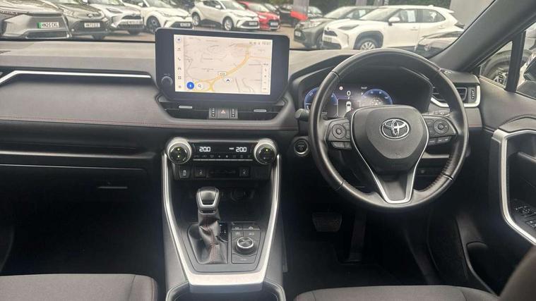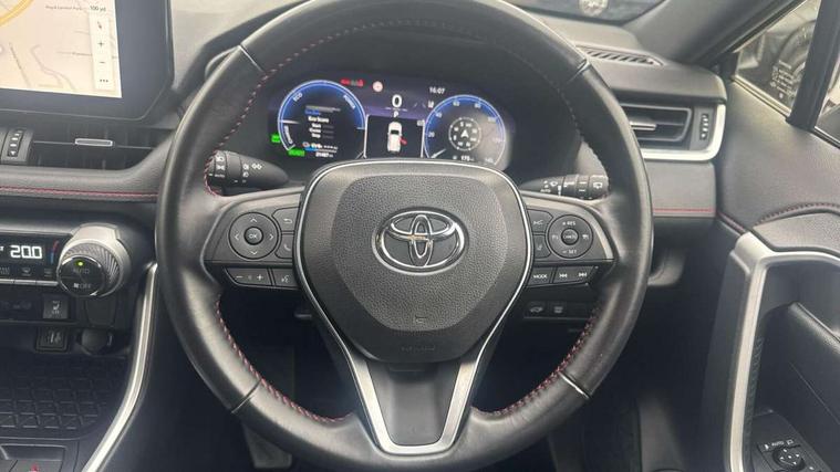 7" Coloured TFT multi informational display, Analog tachometer, Apple car play and Android auto, Blind spot monitoring with rear cross traffic alert, Bluetooth system, Cyclist Detection, Day and night time pedestrian detection, Digital speedometer, Drive mode selector, Driver attention alert system, eCall emergency call system, ECO-driving indicator, Electric power steering, EV audible alert, Front parking sensors, Hybrid system indicator, Intelligent adaptive cruise control, Lane departure alert with steering control, Lane trace assist, Lights on warning, Memory on adjustable speed limiter, MirrorLink, My T Connected services, Power boot opening and closing, Push button start, Rear parking camera, Rear parking sensors, Remote boot door release in cabin, Remote boot door release in key, Road sign assist - RSA, Smartphone integration, Touch 2 Go navigation system, Traffic sign recognition, Trip computer, Voice control system, 6.6 kw fast charger, 7.5m cable with home charging plug, Vehicle Stability Control (VSC), 2x USB sockets in front armrest, 2x USB sockets in rear, 6 speakers, 9" Multimedia display, Auxiliary socket for external MP3 player, DAB audio, Toyota touch 2 multimedia system, USB in front centre console, Anti-jam protection on power windows, Auto high beam, Auto up and down function on all power windows, Automatic headlamp levelling, Automatic headlights, Automatic wipers, Automatically retractable door mirrors, Bi-tone black roof, Black door mirrors, Black door moulding, Black front bumper, Black front grille, Black front under-run, Black rear bumper, Black rear spoiler, Black rear under-run, Black roof rails, Black Shark-fin antenna, Body colour door handles, Chrome window surround, Door mirror puddle lights, Dual exhaust pipes, Electric adjustable door mirrors, Emergency brake-light signal (EBS), Follow me home headlights, Framed electrochromatic rear view mirror, Front fog lights, Front wipers with variable intermittent facility, Heated door mirrors, Honeycomb upper front grille, LED daytime running lights, LED dual beam projector headlights, LED front light guide, LED High mounted stop lamp, LED rear lights, Power front windows, Power rear windows, Privacy glass, Rear side wing doors, Rear windscreen defogger, Rear wiper, Trailer sway control, Turning signal integrated indicators in door mirrors, 1.5L front and rear bottle holder, 12V socket in boot, 12v socket in front, 220v power socket in boot, 2x Rear coat hooks, 3 rear headrests, 3 seat bench in 2nd row, 60/40 split fold rear seat back with toyota easy flat system, Adjustable speed limiter switch on steering wheel, Array microphone, Black roof lining, Blue ambient lighting on front cupholders and open tray on passenger dashboard, Boot light, Clean air filter, Cloth upholstery, Driver and front passenger personal light, Driver and front passenger Whiplash Injury Lessening seats, Driver and passenger seatback pockets, Driver and passenger sunvisors with illuminated vanity mirrors, Dual sided deck board in boot, Dynamic sports seats, Floor mats, Folding rear centre armrest, Front centre armrest, Front cupholders, Front footwell lights, Front headrests, Front passenger seat, Front/rear roof mounted assist grips, Heated driver and front passenger seats, Heated rear seats, Illuminated entry system, Isofix child seat preparation, Leather gearshift, Lockable glovebox, Luggage area tonneau cover, Manual telescopic and tilt 3-spoke nappa leather steering wheel, Manually reclining and sliding front passenger seat, Multimedia switches on steering wheel, Pollen filter, Power height-adjustable sliding reclining and lumbar support for driver seat, Rear console box, Rear door armrests with cupholder, Rear passenger air vents, Rear view display in display audio screen with dynamic guide lines, Reclining rear seats, Remote dual zone automatic air conditioning, Retractable tonneau cover, Satin chrome interior door handles, Silver gear shift surround on centre console, Sunglasses holder, Telephone and voice recognition switches on steering wheel, Under floor storage in luggage area, 3x3 point rear seatbelts, ABS/EBD, Acoustic vehicle alerting system, Adjustable front driver and passenger seat belt extender, Brake assist function, Brake hold function, Child proof door locks, Collision mitigation braking system, Driver/Front Passenger airbags, Driver/front passenger side airbags, Drivers knee airbag, Electronic parking brake, Electronic Stability Programme (ESP), Front and rear curtain airbags, Front and rear seatbelt reminder, Front passenger airbag detector, Hill start assist, Passenger airbag cut-off device, Pedestrian detection, Pre collision system, Seatbelt pretensioners with load limiters, Toyota safety sense, Traction control, Tyre pressure warning, Glass-breaking alarm sensors, Immobiliser, Intrusion alarm, Light - on and Key in reminder, Motion sensor alarm, Remote central locking, Smart entry + Smart start, Speed sensitive auto door locking, Tilt detection sensors, Black centre air vent surround, Black centre console, Soft-touch black upper dashboard with silver insert, Soft-touch texture on lower dashboard, 18" 5 spoke grey machined face alloy wheels, Tyre repair kit,