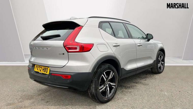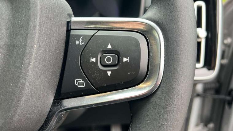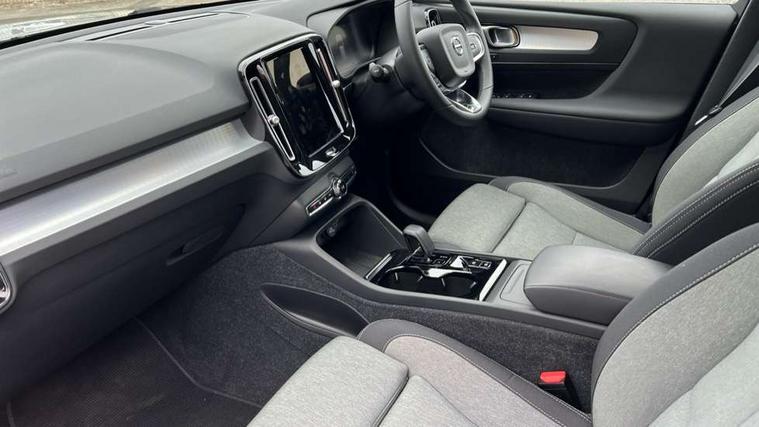 12.3" Progressive Driver Display, 9" centre console portrait touch screen, Adjustable steering wheel force, Bluetooth hands free telephone kit, E-call, eCall emergency call system, Front park assist, Google automatic services - Nav with google maps, apple carplay/android auto, voice recognition with google assistant, Hands free power tailgate, Lane keep assist with driver alert control, Oncoming Lane Mitigation, Rear park assist, Speed limiter, Speed sensitive steering, Wireless/Inductive Mobile Phone Charging, Dynamic chassis, DAB Digital radio, High performance sound, 8 speakers/250W, front USB and 2 rear type C USB, Steering wheel mounted remote controls, Adaptive brake lights with high level LED brake lights, Auto dimming interior mirror, Automatic headlamp levelling, Automatic LED Headlights + Active high beam incorporating daytime running lights, Front aluminium tread plates, Front and rear electric windows, High gloss black front and rear skid plate, High gloss black mesh front grille with high gloss black surround, High gloss black window trim, Home safe and approach lighting, Integrated roof rails in high gloss black, LED front fog lights, Puddle lights, Rain sensor with automatic windscreen wiper activation, Rear side wing doors, Rear wiper, Roof antenna, Roof spoiler, Visible VIN plate, 12V socket in front tunnel console and luggage compartment, 2-Zone electronic climate control with CleanZone air quality system and pollen filter, 3 seat bench in 2nd row, 3 Spoke tailored steering wheel with chrome trim, 60/40 versatile split folding rear seat, A-pillar parking ticket holder, Ambient front door and instrumental panel lighting, Centre console cupholders and storage, Flexible load floor and grocery bag holder, Floor mats, Front door pocket and front cupholder illumination, Front footwell illumination, Front headrests, Front reading light and theatre lighting, Front seat cushion extensions, Front tunnel pocket, Glovebox bag hook, Height adjustable passenger seat, Height/reach adjustable steering column, High gloss centre tunnel deco, Illuminated glovebox, Illuminated luggage compartment, Illuminated tailgate, Illuminated vanity mirrors, Integrated waste bin, Isofix attachments on outer rear seats, Load protection net, Multi directional lumbar support, Power driver seat with memory + exterior mirrors memory, Rear armrest / integral cup holders / storage tray, Rear headrests, Rear reading and courtesy lights, Single front passenger seat, Underfloor cargo storage, Climate pack - XC40, 3x3 point rear seatbelts, City safety with steering support with Pedestrian + cyclist + front collision warning with full auto brake and rear auto brake, Drivers knee airbag, Dual stage driver/passenger airbags, Electronic parking brake with auto hold, First aid kit, Front and outer rear seatbelt reminder and pretensioners, Front seats SIPS airbags, Hill descent control, Hill start assist, Inflatable curtain, Passenger airbag cut-off device, Power child locks on rear doors, Road sign information display, Run off Road Mitigation, Run off Road Protection, SIPS (Side Impact Protection System), Slippery road and hazard light alert, Stability and Traction Control with Spin control, Engine Drag Control and Corner Traction Control, Tyre pressure monitoring system, Vehicle deceleration control with Anti-lock Brake System, Electronic Brake Distribution and Emergency Brake Assist, Warning triangle, WHIPS whiplash protection system - front, Anti-theft alarm including immobiliser/volume sensor + level sensor, Care key with user defined top speed, Key integrated remote control central locking + fuel flap with deadlocking system and auto open/close power windows, Keyless drive includes keyless entry and keyless start, Locking wheel nuts, Private locking for tailgate,