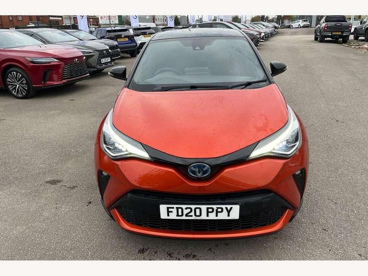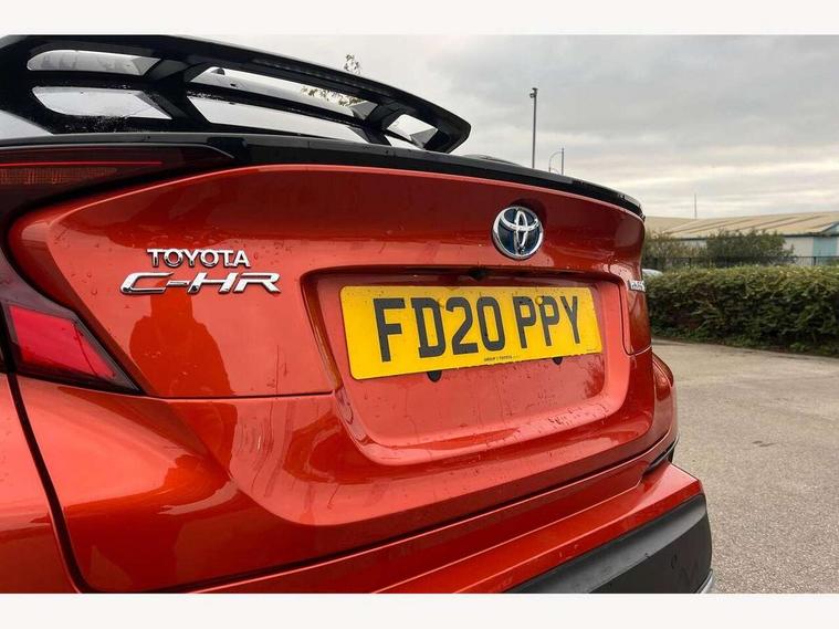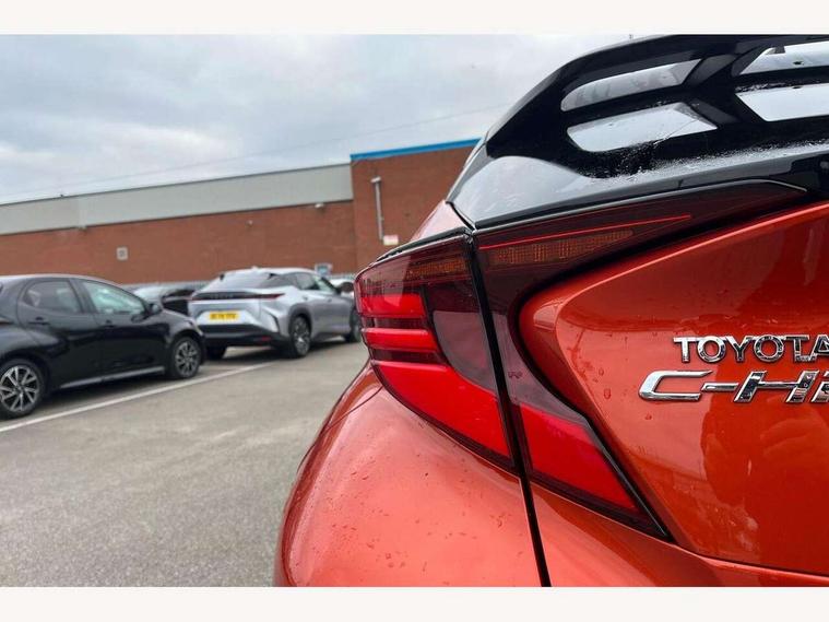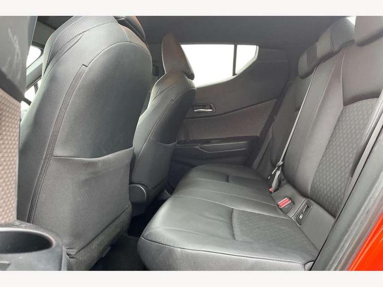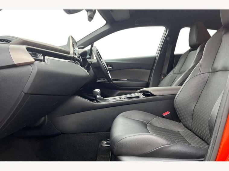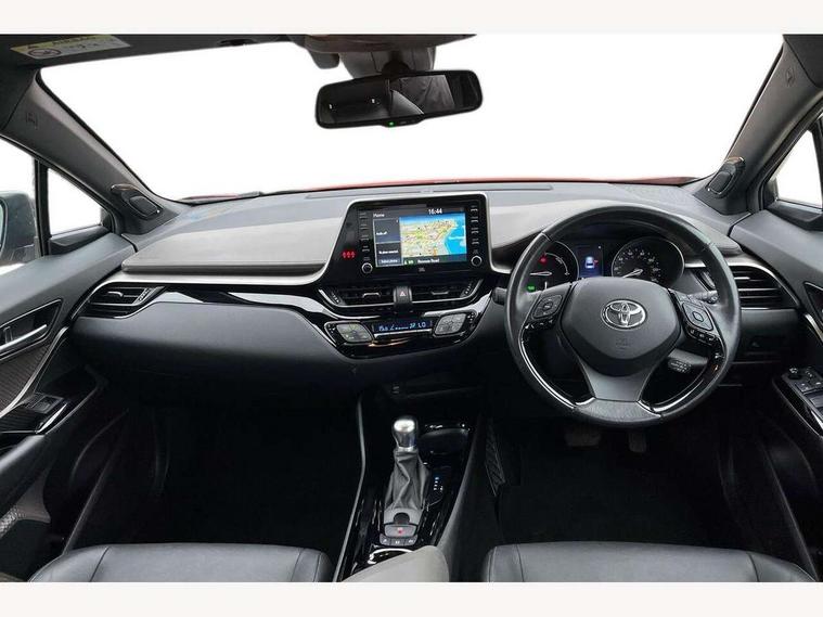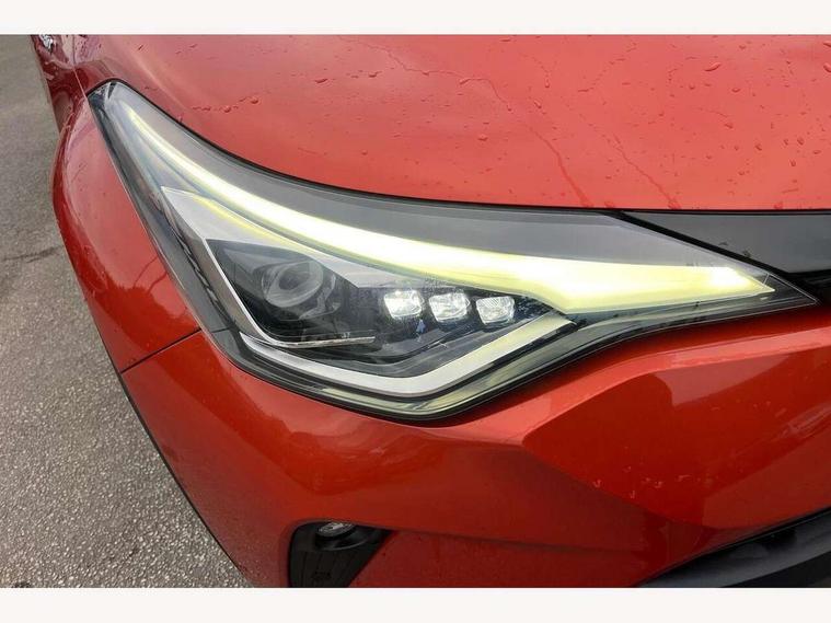 4.2" coloured TFT screen for multi-information display, Adaptive cruise control, Bluetooth connectivity, Electric power steering, Hybrid system indicator, Lane departure alert with steering control, Remote boot door release in cabin, Remote boot door release in key, Reversing camera, Road sign assist - RSA, Simple Intelligent parking assist, Touch 2 Go navigation system, Trip computer, Voice recognition, Vehicle Stability Control (VSC), Aux connectors + 12V front outlet, DAB Radio (Digital Audio Broadcasting), JBL premium sound system with 9 speakers including 8 channel 576W amplifier, Toyota touch 2 multimedia system with 8" display, USB connector integrated with radio and CD player, Wi-fi connectivity, Adaptive front light system, Adaptive LED Headlights, Anti-jam protection on power windows, Auto high beam, Auto up and down function on all power windows, Automatic headlight levelling, Automatic headlights, Automatic headlights cut-off, Bi-tone black roof, Black and body coloured rear bumper, Black front bumper, Black upper front grille, Body colour door handles, Body colour door mirrors, Boot door release with push button, Electric heated door mirrors, Follow me home headlights, Front and rear power windows, Front spoiler, Hard tonneau cover, Honeycomb lower front grille, LED daytime running lights, LED fog lights, LED front light guide, LED High mounted stop light, LED rear brake lights, LED rear combination lights, Metallic paint, Noise reduction layer on front windows and windscreen, Power adjustable door mirrors, Privacy glass, Rear spoiler, Rear tailgate, Rear window defogger, Rear window wiper, Shark fin antenna, UV-filter on driver and passenger windows, UV-filter on rear windows, 12v power outlet - front, 3 rear headrests, 3 spoke leather steering wheel, 60/40 split folding rear seat, Adjustable rear headrests, Adjustable speed limiter switch on steering wheel, Assist grips front and centre pillar, Audio and telephone switches on steering wheel, Black front door assist grips, Blue ambient lighting on front cup holders, Blue ambient lighting on front doors, Boot light, Chrome interior door handles, Driver and front passenger personal light, Driver and front passenger Whiplash Injury Lessening seats, Driver and passenger seatback pockets, Dual zone automatic air conditioning, Front cupholders, Front head restraints, Front sports seats, Glovebox with internal light, Heated driver and front passenger seats, Heated steering wheel, Hooks for luggage holding net, Humidifying Nanoe air purifier, Illuminated entry system, Isofix attachments on rear seats, Leather gearshift, Light on driver sun visor, Light on passenger sun visor, Manual telescopic steering wheel, Manual tilt steering wheel, Microphone on front personal light, Mirror on driver sun visor, Mirror on passenger sun visor, Multimedia switches on steering wheel, Pollen filter, Power adjustable lumbar support on driver seat, Power tilting cushion on driver seat, Shopping bag hooks, Slow opening on lower glovebox, Voice recognition switch on steering wheel, Leather pack - C-HR, Tech with parking sensor pack - C-HR, 16 Disk front wheel brake, 3x3 point rear seatbelts, ABS+EBD+Brake assist, Electronic parking brake, ESP + traction control, Front and rear seatbelt reminder, Front passenger airbag on/off switch, Hill start assist control (HAC), Pre collision system with pedestrian detection, Pre-tensioners and force limiters, Rear door child safety locks, SRS Airbags - Driver + Front passenger, front side, front and rear curtain and driver's knee airbags, Toyota safety sense, Tyre pressure monitoring system, Glass-breaking alarm sensors, Immobiliser, Intrusion alarm, Intrusion sensor, Motion sensor alarm, Power door locks, Power passenger window lock, Remote central locking, Remote door lock, Black lower dashboard, Black lower driver dashboard, Dark brown upper dashboard, Piano black console, Silver deco line on upper dashboard, 18" 5 double spoke matt black alloy wheels with matt black centre cap, Tyre repair kit,