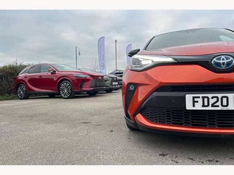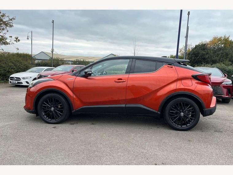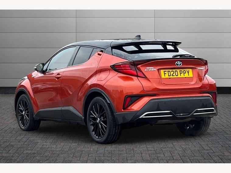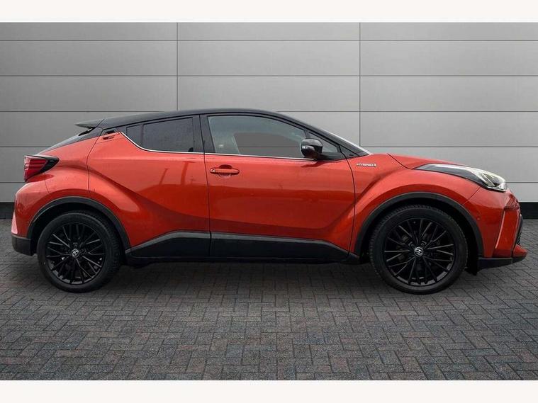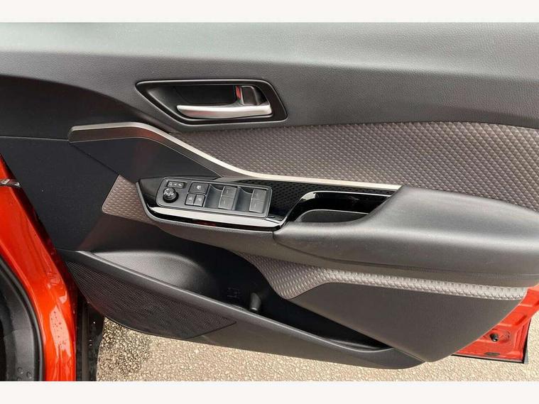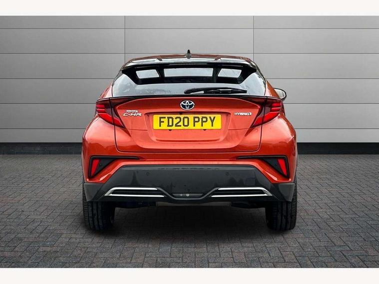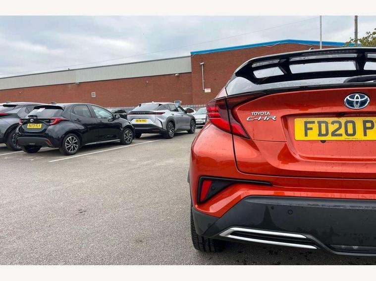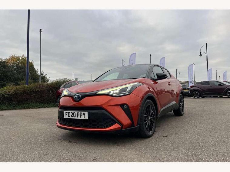 4.2" coloured TFT screen for multi-information display, Adaptive cruise control, Bluetooth connectivity, Electric power steering, Hybrid system indicator, Lane departure alert with steering control, Remote boot door release in cabin, Remote boot door release in key, Reversing camera, Road sign assist - RSA, Simple Intelligent parking assist, Touch 2 Go navigation system, Trip computer, Voice recognition, Vehicle Stability Control (VSC), Aux connectors + 12V front outlet, DAB Radio (Digital Audio Broadcasting), JBL premium sound system with 9 speakers including 8 channel 576W amplifier, Toyota touch 2 multimedia system with 8" display, USB connector integrated with radio and CD player, Wi-fi connectivity, Adaptive front light system, Adaptive LED Headlights, Anti-jam protection on power windows, Auto high beam, Auto up and down function on all power windows, Automatic headlight levelling, Automatic headlights, Automatic headlights cut-off, Bi-tone black roof, Black and body coloured rear bumper, Black front bumper, Black upper front grille, Body colour door handles, Body colour door mirrors, Boot door release with push button, Electric heated door mirrors, Follow me home headlights, Front and rear power windows, Front spoiler, Hard tonneau cover, Honeycomb lower front grille, LED daytime running lights, LED fog lights, LED front light guide, LED High mounted stop light, LED rear brake lights, LED rear combination lights, Metallic paint, Noise reduction layer on front windows and windscreen, Power adjustable door mirrors, Privacy glass, Rear spoiler, Rear tailgate, Rear window defogger, Rear window wiper, Shark fin antenna, UV-filter on driver and passenger windows, UV-filter on rear windows, 12v power outlet - front, 3 rear headrests, 3 spoke leather steering wheel, 60/40 split folding rear seat, Adjustable rear headrests, Adjustable speed limiter switch on steering wheel, Assist grips front and centre pillar, Audio and telephone switches on steering wheel, Black front door assist grips, Blue ambient lighting on front cup holders, Blue ambient lighting on front doors, Boot light, Chrome interior door handles, Driver and front passenger personal light, Driver and front passenger Whiplash Injury Lessening seats, Driver and passenger seatback pockets, Dual zone automatic air conditioning, Front cupholders, Front head restraints, Front sports seats, Glovebox with internal light, Heated driver and front passenger seats, Heated steering wheel, Hooks for luggage holding net, Humidifying Nanoe air purifier, Illuminated entry system, Isofix attachments on rear seats, Leather gearshift, Light on driver sun visor, Light on passenger sun visor, Manual telescopic steering wheel, Manual tilt steering wheel, Microphone on front personal light, Mirror on driver sun visor, Mirror on passenger sun visor, Multimedia switches on steering wheel, Pollen filter, Power adjustable lumbar support on driver seat, Power tilting cushion on driver seat, Shopping bag hooks, Slow opening on lower glovebox, Voice recognition switch on steering wheel, Leather pack - C-HR, Tech with parking sensor pack - C-HR, 16 Disk front wheel brake, 3x3 point rear seatbelts, ABS+EBD+Brake assist, Electronic parking brake, ESP + traction control, Front and rear seatbelt reminder, Front passenger airbag on/off switch, Hill start assist control (HAC), Pre collision system with pedestrian detection, Pre-tensioners and force limiters, Rear door child safety locks, SRS Airbags - Driver + Front passenger, front side, front and rear curtain and driver's knee airbags, Toyota safety sense, Tyre pressure monitoring system, Glass-breaking alarm sensors, Immobiliser, Intrusion alarm, Intrusion sensor, Motion sensor alarm, Power door locks, Power passenger window lock, Remote central locking, Remote door lock, Black lower dashboard, Black lower driver dashboard, Dark brown upper dashboard, Piano black console, Silver deco line on upper dashboard, 18" 5 double spoke matt black alloy wheels with matt black centre cap, Tyre repair kit,