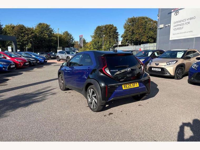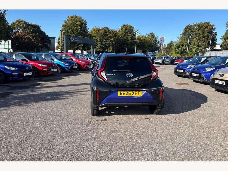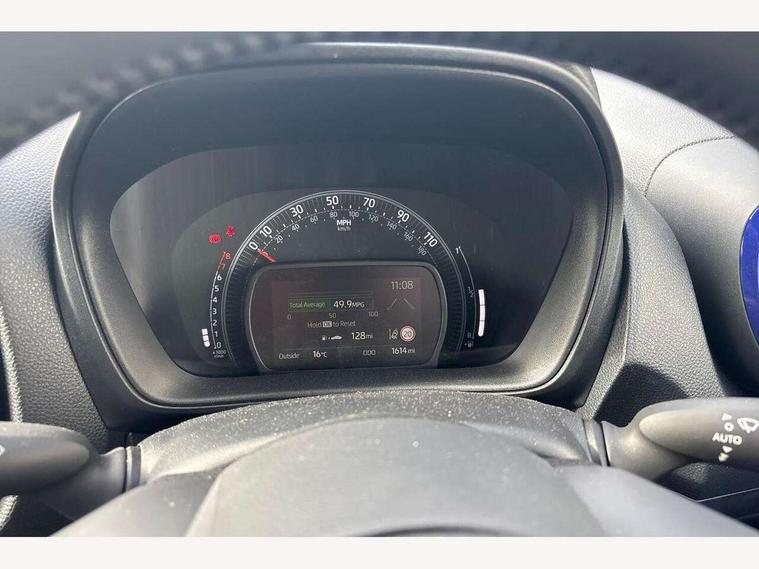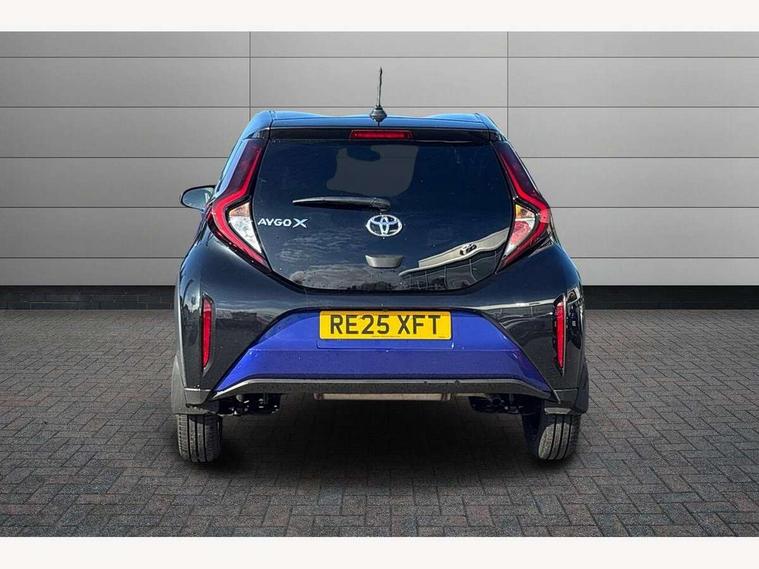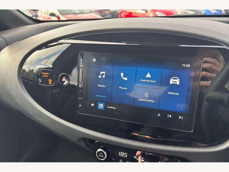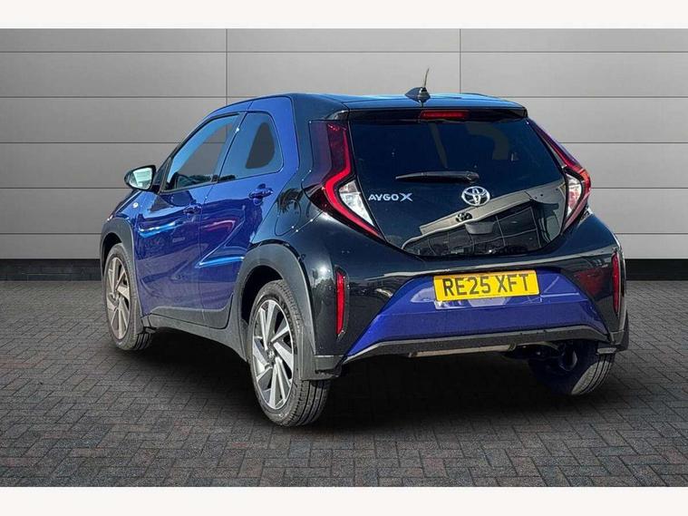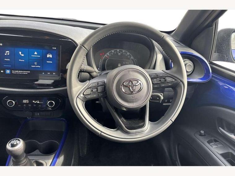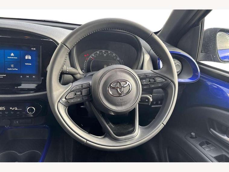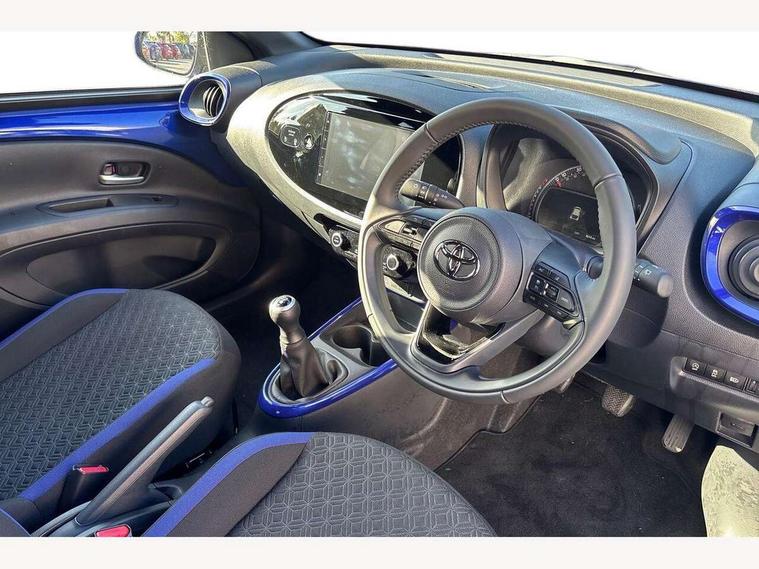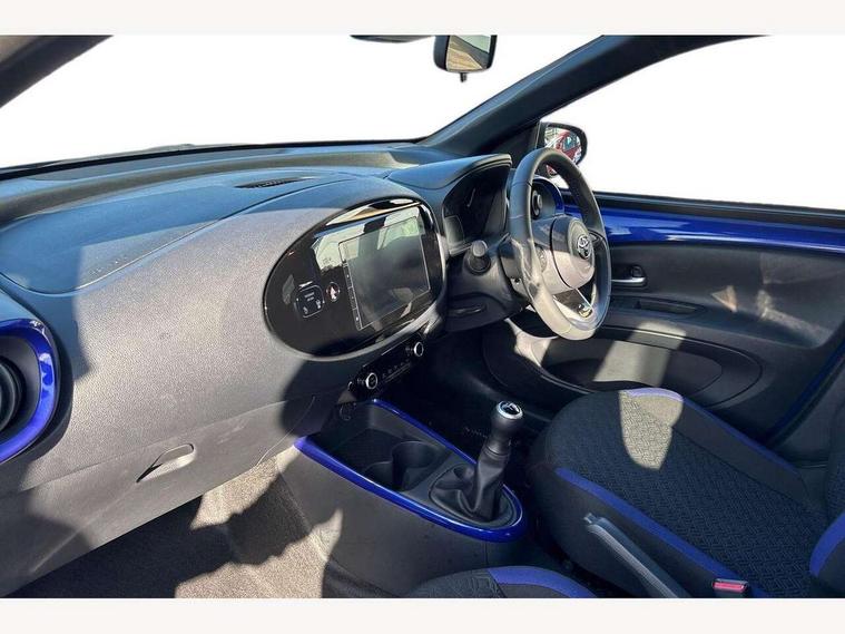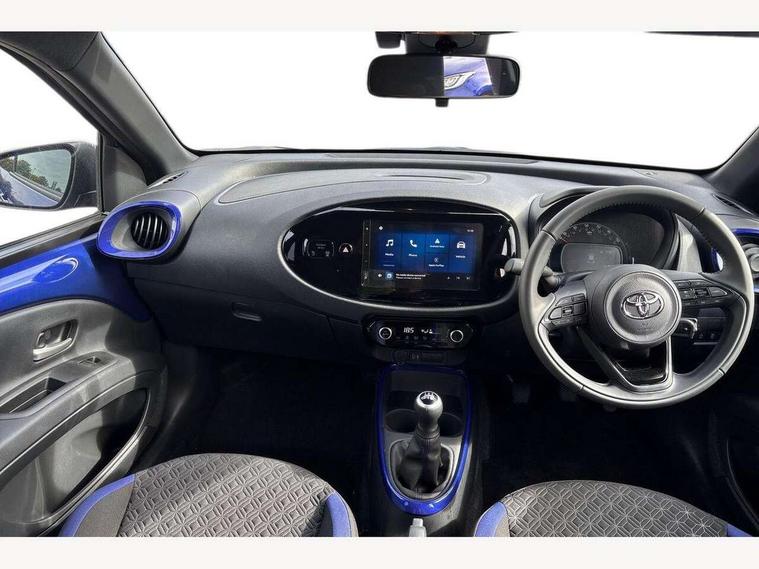 4.2" TFT colour screen, Adjustable speed limiter, Analogue speedometer, Bluetooth connectivity, Digital tachograph, Driver attention alert system, eCall emergency call system, Electric power steering, Intersection turn assist, Key reminder warning, Noise reduction kit, Pre collision system with emergency steering assist, Reversing camera with static guide lines, Smart phone integration with Apple car play/Android Auto, Speed limit display, Start and stop, Vehicle Stability Control (VSC), 4 speakers, 9" HD multimedia display touch screen with Toyota smart connect, DAB digital audio broadcast, USB connector, Auto headlights, Auto wipers, Automatic headlights cut-off, Bicycle towing hook, Black contrast roof, Black side protection mouldings, Black wheel arch mouldings, Body colour door handles, Body coloured front bumper, Boot door scuff plate, Eclipse black rear bumper, Electric heated door mirrors, Follow me home headlights, Front fog lights, Front power windows, Gloss black door mirrors, Gloss black upper front grille, Headlight cut-off reminder, LED daytime running lights, LED front light guide, LED High mounted stop lamp, Manual day/night rear view mirror, Manual headlight levelling, Pagoda roof, Power adjustable door mirrors, Power back door, Privacy glass, Projector halogen headlights, Rain sensor, Rear combination lights LED bulb type, Rear side wing doors, Rear windscreen defogger, Rear windscreen wiper, Short antenna, Variable intermittent windscreen wipers, 12v power outlet - front, 2 seat bench in 2nd row, 3 spoke leather steering wheel, 50/50 split folding rear seat, Adhesive roof headlining, Adjustable speed limiter switch on steering wheel, Audio and telephone switches on steering wheel, Auto air conditioning, Black insert on steering wheel, Black roof lining, Boot light, Centre room light, Chrome interior door handles, Chrome surround on air conditioning buttons, Clean air filter, Console box storage in body color, Fabric upholstery, Floor mats, Front and rear cup holders, Front head rest deco art, Front head restraints, Height adjustable driver seat, Intelligent adaptive cruise control switch on steering wheel, ISOFIX child restraint system on rear seats, Lane departure alert switch on steering wheel, Leather gearshift knob, Manual tilt steering wheel, Manually reclining and sliding driver seat, Manually reclining and sliding front passenger seat, Multimedia switches on steering wheel, Pollen filter, Rear door pockets, Rear head restraints, Satin silver insert on gear shift knob, Single compartment glovebox with lights, Single front passenger seat, Soft tonneau cover, Sun visors with mirror on driver and passenger side, Voice recognition switch on steering wheel, Toyota safety sense pack - Aygo X, Anti lock braking system + Electronic brake force distribution, Child safety door lock, Emergency brake light signal (EBS), Hill start assist control (HAC), Passenger airbag on/off switch, Seat belt reminder for front and rear seats, Supplement restraints system (SRS) - 6 airbags, Traction control, Tyre pressure warning system, Immobiliser, Remote power door locks, Black wheel centre caps, Tyre repair kit,