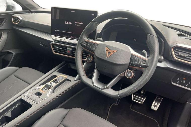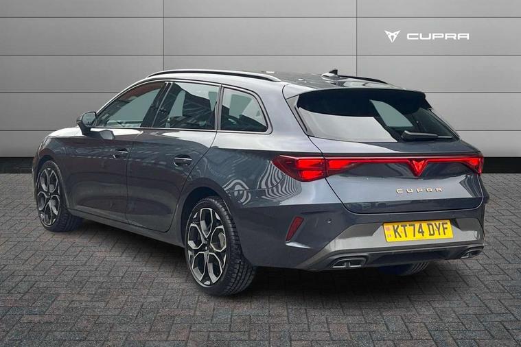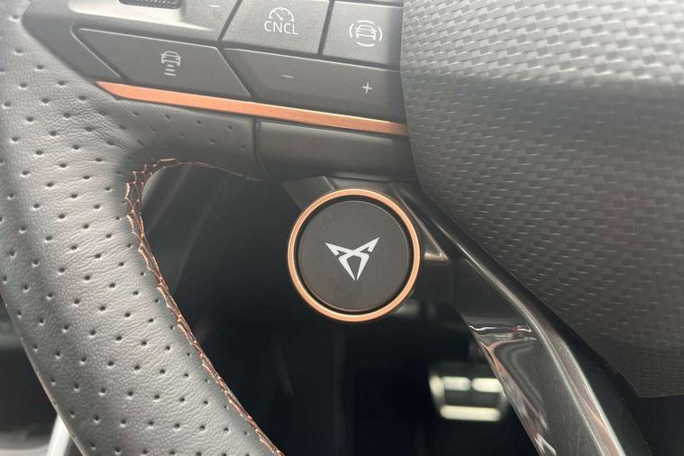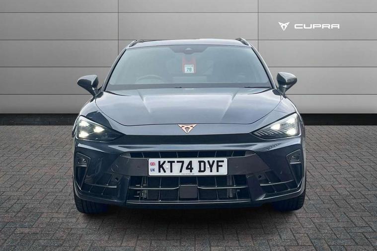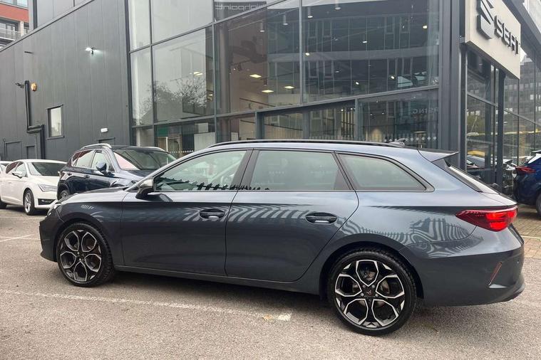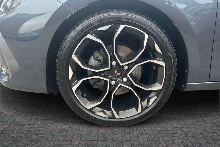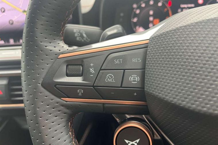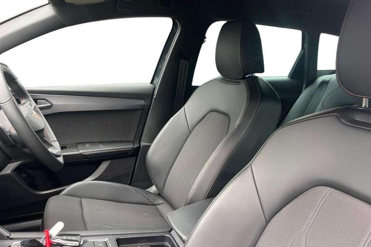 Adaptive cruise control with follow-to-stop and speed limiter, CUPRA drive profile selection with (Comfort/Sport/Individual), throttle response and gearshift mode, Digital cockpit, Dynamic road sign display, E-call, Four x USB Type C ports (2 in front and 2 in rear), Front and rear parking sensors, Front assist with forward collision warning braking reaction to vehicles, pedestrians and cyclists, Full link smartphone integration with Mirror Link, wireless Apple CarPlay and wired Google Android Auto, Lane assist, Lockable tailgate, PAS, RPM, trip computer, outside temp gauge, instrument light brightness, low fuel warning light, lights on reminder, gearshift indicator, Service interval indicator, Start/stop system with regenerative braking, Virtual pedal with electric tailgate, Wireless phone charger, 7 speakers, Auxiliary input socket, Auto dimming rear view mirror, Body colour door handles, Body coloured bumpers, Cupra sports bumpers, Dark tinted rear windows, Electric front/rear windows, Electrically adjustable, heated and folding door mirrors, Gloss black roof rails, High beam assist, LED front fog lamps with cornering function, LED headlights with dynamic turn signals, tail lights, rear fog lights with rear coast to coast lighting, LED rear fog lamp, Rain sensing wipers, Rear side wing doors, Rear wash/wipe, Separate daytime running light with automatic headlight control and coming home feature, Third brake light, Welcome light with logo projector in door mirrors, 12v power supply in centre console, 3 seat bench in 2nd row, 5 headrests, 60/40 split rear bench seat with armrest, Ambient lighting with glovebox, footwell and single monocolour, Black headlining, Cloth/PVC upholstery, Cupra sports pedals, CUPRA Supersports, heated steering wheel with satellite buttons, Driver and passenger seat with manual height and lumbar adjustment, Front and rear reading lights X 4, Front centre armrest, Height/reach adjust steering wheel, Illuminated interior front door sills, ISOFIX points in outer rear seats with top tether anchorage points, Single front passenger seat, Sliding boot cover, Storage pockets on rear of front seats, Sunvisors with illuminated mirror, Three zone climate control, Media system plus with 12.9" display + navigation pack - Leon Cupra, 3 point seatbelts on all rear seats, ABS, Brake control system - ESC and brake booster, Child proof door locks, Cupra black brake calipers, Driver and front passenger airbags with front passenger airbag de-activation, front side and curtain airbags, Electronic parking brake, Hill hold control, Rear disc brakes, Seat belt reminder for front and rear seats, Tiredness recognition system, Tyre pressure monitoring system, Anti theft alarm system with interior monitoring in cab, backup horn and towing protection, Central locking system Keyless Go, Locking wheel bolts, Chrome and copper interior detailing, 18" Windstorm machined sport black matt and silver alloy wheel with 92Y XL tyres, Tool kit,