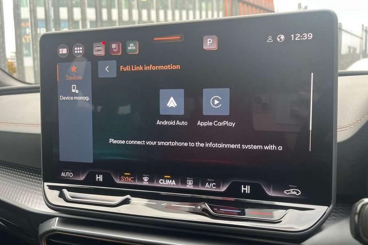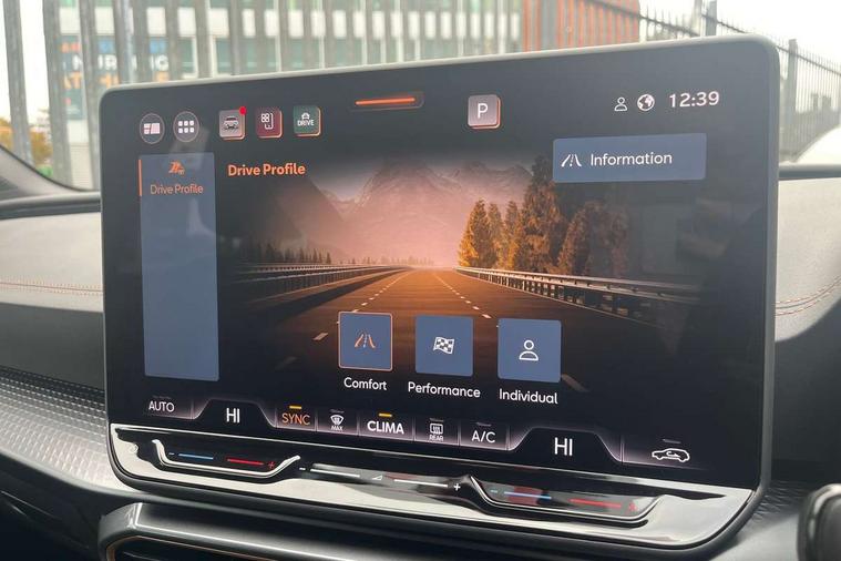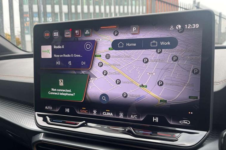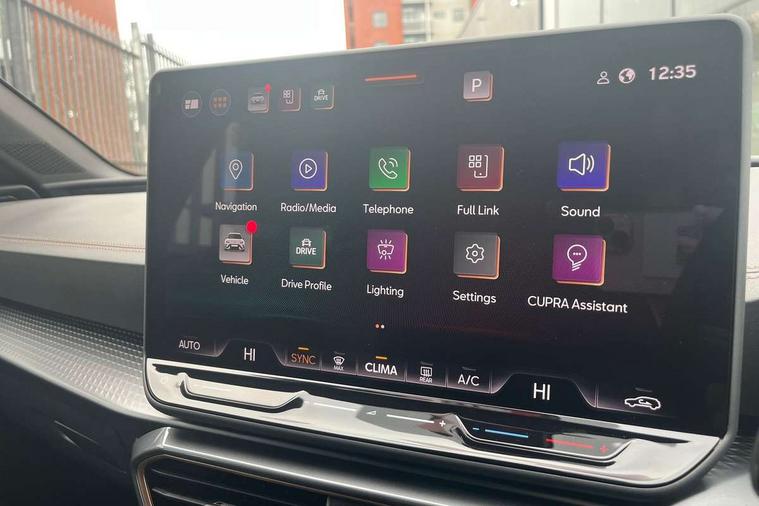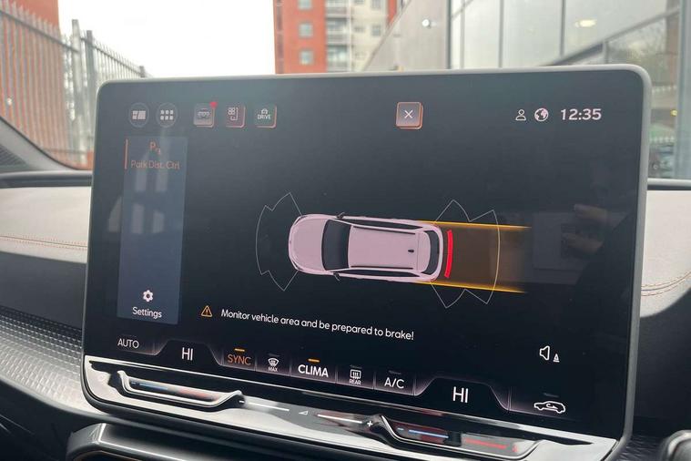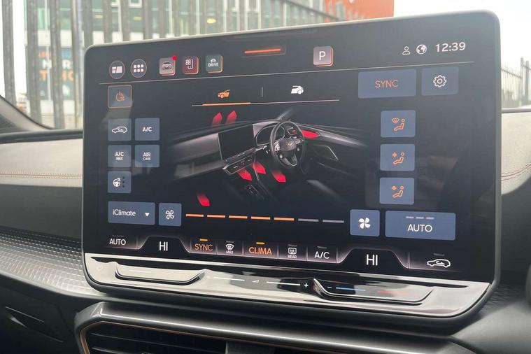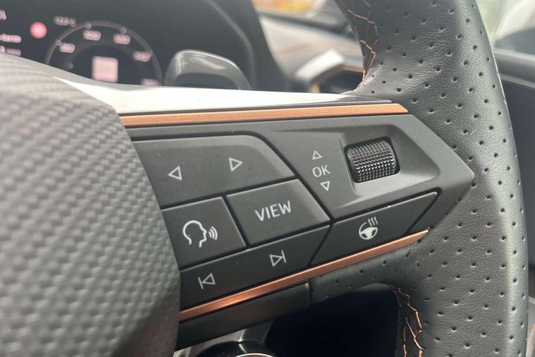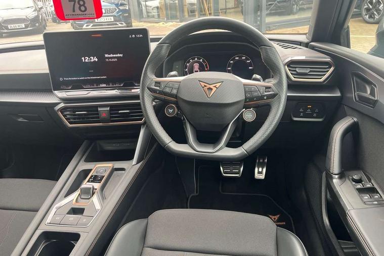 Adaptive cruise control with follow-to-stop and speed limiter, CUPRA drive profile selection with (Comfort/Sport/Individual), throttle response and gearshift mode, Digital cockpit, Dynamic road sign display, E-call, Four x USB Type C ports (2 in front and 2 in rear), Front and rear parking sensors, Front assist with forward collision warning braking reaction to vehicles, pedestrians and cyclists, Full link smartphone integration with Mirror Link, wireless Apple CarPlay and wired Google Android Auto, Lane assist, Lockable tailgate, PAS, RPM, trip computer, outside temp gauge, instrument light brightness, low fuel warning light, lights on reminder, gearshift indicator, Service interval indicator, Start/stop system with regenerative braking, Virtual pedal with electric tailgate, Wireless phone charger, 7 speakers, Auxiliary input socket, Auto dimming rear view mirror, Body colour door handles, Body coloured bumpers, Cupra sports bumpers, Dark tinted rear windows, Electric front/rear windows, Electrically adjustable, heated and folding door mirrors, Gloss black roof rails, High beam assist, LED front fog lamps with cornering function, LED headlights with dynamic turn signals, tail lights, rear fog lights with rear coast to coast lighting, LED rear fog lamp, Rain sensing wipers, Rear side wing doors, Rear wash/wipe, Separate daytime running light with automatic headlight control and coming home feature, Third brake light, Welcome light with logo projector in door mirrors, 12v power supply in centre console, 3 seat bench in 2nd row, 5 headrests, 60/40 split rear bench seat with armrest, Ambient lighting with glovebox, footwell and single monocolour, Black headlining, Cloth/PVC upholstery, Cupra sports pedals, CUPRA Supersports, heated steering wheel with satellite buttons, Driver and passenger seat with manual height and lumbar adjustment, Front and rear reading lights X 4, Front centre armrest, Height/reach adjust steering wheel, Illuminated interior front door sills, ISOFIX points in outer rear seats with top tether anchorage points, Single front passenger seat, Sliding boot cover, Storage pockets on rear of front seats, Sunvisors with illuminated mirror, Three zone climate control, Media system plus with 12.9" display + navigation pack - Leon Cupra, 3 point seatbelts on all rear seats, ABS, Brake control system - ESC and brake booster, Child proof door locks, Cupra black brake calipers, Driver and front passenger airbags with front passenger airbag de-activation, front side and curtain airbags, Electronic parking brake, Hill hold control, Rear disc brakes, Seat belt reminder for front and rear seats, Tiredness recognition system, Tyre pressure monitoring system, Anti theft alarm system with interior monitoring in cab, backup horn and towing protection, Central locking system Keyless Go, Locking wheel bolts, Chrome and copper interior detailing, 18" Windstorm machined sport black matt and silver alloy wheel with 92Y XL tyres, Tool kit,