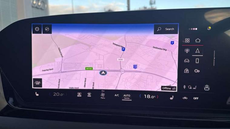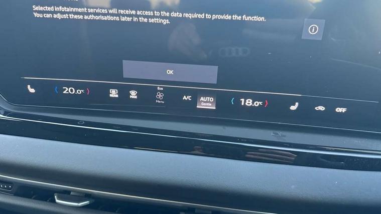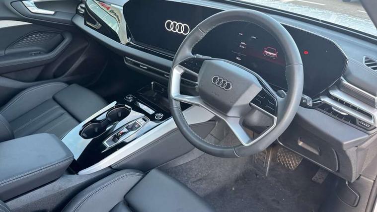 Adaptive cruise control, Advanced driver attention and fatigue montior, Audi application store, Audi assistant, Audi connect emergency call and service, Audi drive select, Audi smartphone interface, Audi virtual cockpit plus with 11.9" OLED colour display, Automatic start/stop system with coasting functionality, Camera based traffic sign recognition, Intersection assist, Lane departure warning, MMI navigation plus with high resolution 14.5" OLED touchscreen colour display, Park assist plus, Parking system plus with 360 display, Progressive steering with servotronic, Rear view camera, Swerve assist and turn assist, Traffic sign based speed limiter, Comfort suspension, 2 USB-C ports in both the front and rear, Audi sound system impressive sound with 10 loudspeakers including centre speaker and subwoofer, 6-channel amplifier with a total output of 180 watts, DAB digital radio reception, Smartphone compartment with wireless charging, Aluminium roof rails, Aluminium window trims, Auto dimming rear view mirror, Body colour door mirrors, Door mirrors - electrically adjustable, heated, folding and auto dimming on both sides, Front and rear electric windows, Front door sill trims with aluminium inlays, illuminated, High beam assist, LED headlights Plus incl. digital daytime running lights, turning light, all-weather light, motorway light, manouevring light and intersection light, LED rear lights pro incl. dynamic rear indicators and illuminated light strip with animated coming and leaving home function, LED third brake light, Rear and side windows with heat insulating glass, Rear side wing doors, Rear wash/wipe, Sport bumpers, radiator grille and diffuser in scandium grey and diffuser insert in matt selenite silver, White rhombus logo projection light in exterior mirrors, Windscreen with acoustic glazing, 3 rear headrests, 3 seat rear bench, 3-zone automatic climate control, 40:20:40 split folding rear seat bench with centre armrest and cup holders, Comfort front centre armrest, Front and rear floor mats, Front seats with manual adjustment for position and 4-way electric lumbar support, Front sport seats with integrated head reastrains, Heated front seats, i-Size child seat mounting on the front passenger side and outer rear seats, i-Size and top tether on the outer rear seats, Luggage compartment lid, electrically opening and closing, Manual steering column height and depth adjustment, Rock grey cloth headlining, Single front passenger seat, Twin leather upholstery, Twin spoke leather steering wheel with multi-function buttons with touch control, shift paddles and trim in chrome look, Ambient lighting package plus - A5, 3x3 point rear seat belts, Driver airbag, Electric child safety locks, First aid kit with warning triangle and vests, Front emergency brake assist, Front passenger airbag, Front passenger airbag deactivation, Front side airbags with head airbag system and front interaction airbag, Hill hold assist, Seat belt monitoring with rear seat occupant reminder, Tyre pressure loss indicator, Anti theft alarm, Anti-theft wheel bolts, Keyless Go, Accent surfaces and control buttons in gloss black, Black dashboard with contrast stitching, Inlays in matt brushed aluminium, silver, Softwrap in leatherette with contrast stitching, Upper and lower interior elements in leatherette, Tyre repair kit,