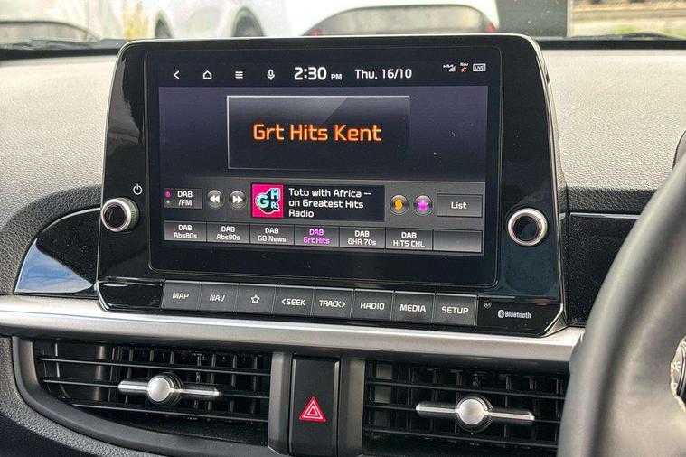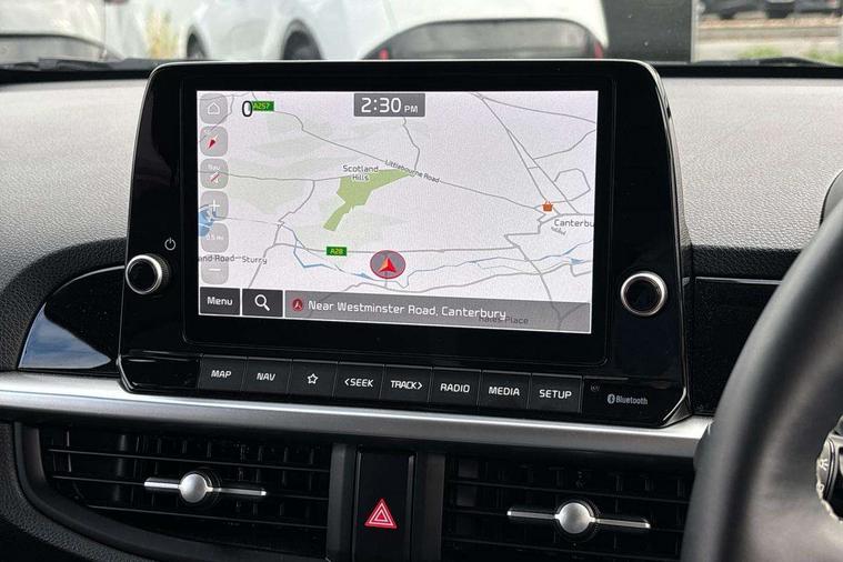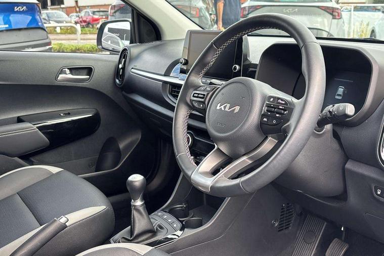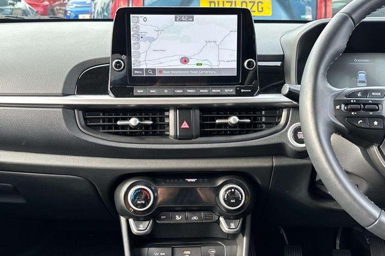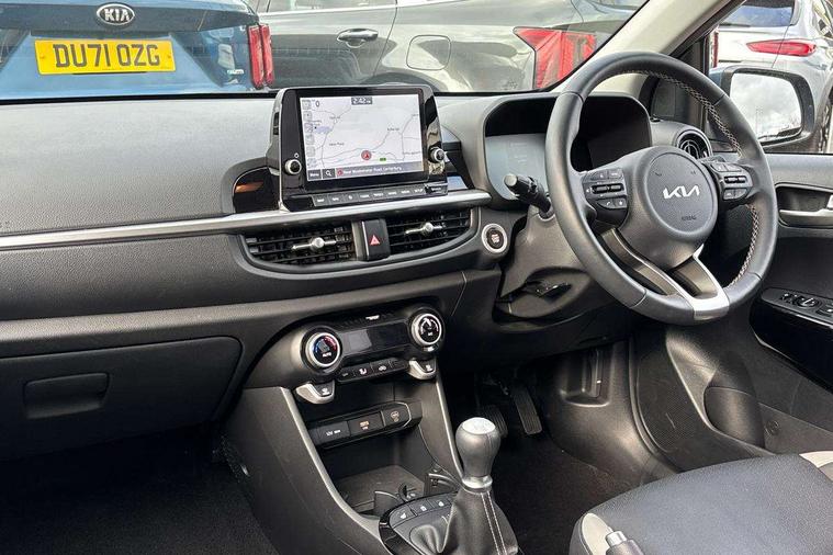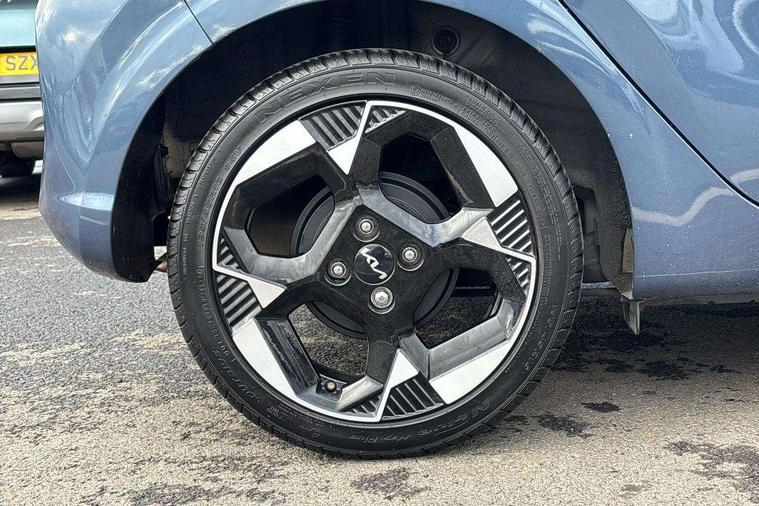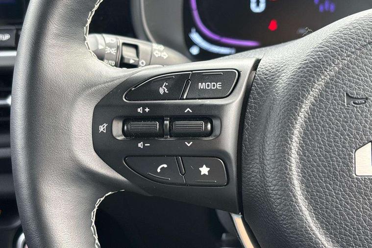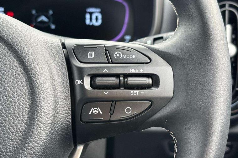 4.2" driver display screen, 8" touchscreen navigation, Apple car play/Android Auto with voice control, Cruise control + speed limiter, Emergency call service, Emergency stop signalling system, External temperature gauge, Forward Collision-Avoidance Assist (FCA) 1.0 - City/Pedestrian/Cyclist, Intelligent speed limit assist, Kia Connect (UVO), Lane Follow Assist 1.0, Lane keep assist, Motor driven power steering, Rear parking sensors, Reversing camera system, Tachometer, Trip computer, Wireless Smartphone charger, 4 speaker audio system, Bluetooth with music streaming, USB ports for connection of a media device, Automatic defog system, Automatic headlight control system, Body colour bumpers, Body colour side sill mouldings, Body coloured door mirrors, Body coloured wheel arches, Electric adjustable/heated/folding door mirrors with LED indicators lights, Electric front and rear windows, Electric front touch drivers front window, Headlamp levelling, Heated rear window, High mount brake light, LED daytime running lights, LED Headlights, LED rear lights, Privacy glass - Rear windows and tailgate, Rain sensor, Rear fog lights, Rear side wing doors, Rear wiper, Silver window surround, Speed variable front wipers, Tinted windshield glass, Visible VIN plate, 12V power point front, 3 seat bench in 2nd row, 60:40 Split folding rear seats, All round height adjustable headrests, Artificial leather steering wheel, Artificial leather upholstery, Automatic air conditioning, Centre console storage box, Driver and front passenger sunvisors with driver's side illuminated vanity mirrors, Front and rear door storage, Front cabin lights, Front passenger USB-C charging port, Glovebox, Grey headlining, Heated front seats, Heated steering wheel, ISOFIX Child seat top tethers and anchor fixings, Luggage area light, Luggage area parcel shelf, Luggage board, Luggage net + hook, Manual adjust steering wheel, Manual adjustable driver and front passenger seat, Rear cabin lights, Rear USB charging port, Single front passenger seat, All round 3-point seatbelts, Anti-lock braking system (ABS), Electronic stability control, Front + rear side airbags, Front airbags, Front passenger airbag cut-off switch, Front seatbelt height adjusters, Hill hold control, Hill start assist control (HAC), Rear airbags, Seatbelt warning, Side impact protection, Torque vectoring brake based and straight line stability (SLS), Traction control, Tyre pressure monitoring system, Vehicle stability management, Anti theft alarm, Engine immobiliser, Folding key, Locking wheel nuts, Manual child locks, Rear occupant alert, Remote central door locking, Smart key with engine start/stop button, Smart key with motion sensor, Thatcham category 2 security alarm and immobiliser, 16" alloy wheels, Tyre mobility kit,