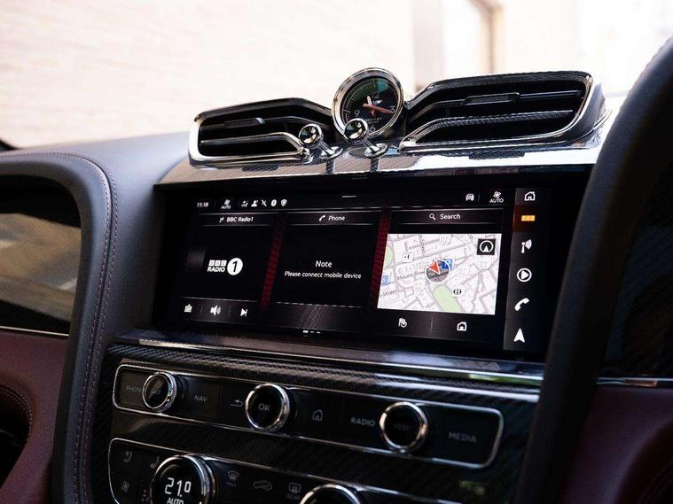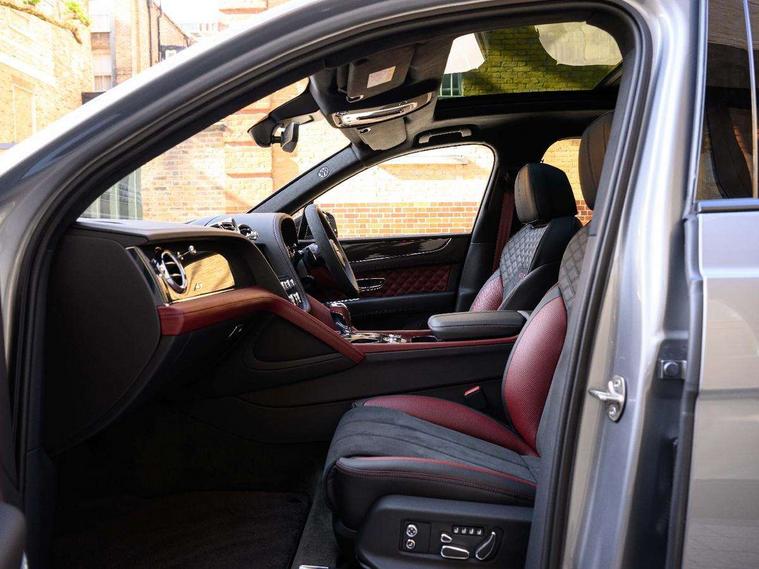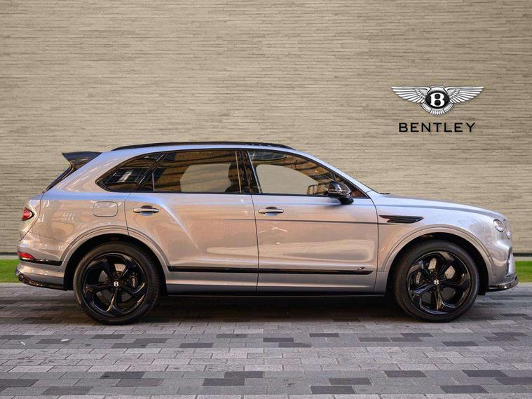 10.9" touch screen high resolution and configurable infotainment display and digital drivers information display, Advanced navigation function with text, search, 3D, satellite maps, speed limit, dynamic traffic route guide, telephone, Text-speech + voice, Bentley branded clock, Bentley GPS tracking system full fitment, Bentley safeguard, Blind spot assist, Bluetooth and WIFI enabled, Emergency services call system, Four drive dynamics modes (bentley, comfort, enhanced sport, custom), Front/rear park distance control, Hands free power tailgate, MMI Screen, My Bentley connected car services, Power latching to all doors for easy entry, Redesigned instrument panel lower trim rolls, incorporating a storage compartment on the passenger side, Seamlessly integrated technology with wireless apple car play and android auto, Speed sensitive variable ratio electric power steering, Sports driver information panel, Sports kombi graphics, Touch screen remote, Voice control system, Wireless phone charging compartment, Air suspension with continuous damping control, Bentley Dynamic ride, Permanent all wheel drive with centre torsen differential, Bluetooth audio streaming, 3rd brake light, Adaptive low beam, Auto dimming rear view mirror, Automatic headlights, Bentley badge in tailgate opening switch, Black door mirrors, Black painted shark fin aerial, Black side sills, Black speed style front and rear bumper, Body coloured front lower bumper apron panel, Body coloured lower bodywork - Standard paint range, Bumper design with large side intakes and sculptured surfaces, Clamshell rear tailgate design with Bentley lettering under the wings, Dark tinted front & rear lamps, Elec/heat/adj/fold door mirror+memory, Electric tilt/slide panoramic sunroof, Exterior S badge, Fender design reduces over bodied perception, Fixed rear spoiler, Front and rear fog lamps, Full LED supplementary lamps and tail lamps, Full matrix LED headlamps with high beam assist, Full width clamshell design and deeply contoured rear tailgate panel, Heated rear windscreen, Large dominant B shaped side wing vent front position, LED daytime running lights, Long fender vent above the power line on body side, Lower door side mouldings, Number plate aperture position under rear bumper, Oval split tailpipe, Phone antenna amplifier, Rain sensing wipers, Rear side wing doors, Rear wiper, S fascia badge, Self levelling wheel badge, Sports exhaust, Trailer sway mitigation, Tunnel detection for auto light control, V8 exterior badge, Wet arm wipers and heated water jets, 12V power in rear centre console, 12V socket in glovebox, 12V socket in luggage compartment, 3 seat bench in 2nd row, 4-Zone HVAC, Air Ioniser, Black (Beluga) boot carpet, Dinamica gear lever, Dinamica seats and dash, Electric tilt and reach adjustment steering column with memory and easy entry function, Electronic accessory preparation, Embroidered Bentley emblems, Foams and cover design on all seats, Folding luggage compartment cover, Front and rear cupholders, Indented steering wheel, Isofix attachments on outer rear seats, Key box, Load through facility, Lockable cooled glovebox, Luggage rails, Rear head restraints, Rear seat climate control, Rear seat massage function, Single front passenger seat, Stowage with instrument panel, doors (front and rear), armrests and console, Twin front armrests, Two metal bulls eye vents with organ stops and redesigned centre vents, Two type C USB ports front and rear, Unique S fluted seat colour combination with dinamica inserts, Veneered/carbon fibre centre fascia panel, Wing pockets for small items, Blackline Specification Pack - Bentayga, 3 rear seatbelts, ABS/EBD, Child safety lock, EDL, Electronic park brake with move-off assist, Electronic stability control, Electronic tyre pressure monitoring, ESP + MSR + ASR, Exit warning, Front and rear head airbags, Front and rear thorax airbag system, Front and rear ventilated brake disc, Front passenger airbag deactivation, Front seatbelt pretensioners with force limiters, Hill descent function, Hydraulic Brake Assist (HBA), Rear outer seatbelt pretensioners with force limiters, Rollover mitigation, Side airbags, Traction control, Immobiliser, Keyless entry, Keyless ignition, Preparation for vehicle tracking, Remote central locking, Volumetric anti theft alarm, 22" Summer tyres,