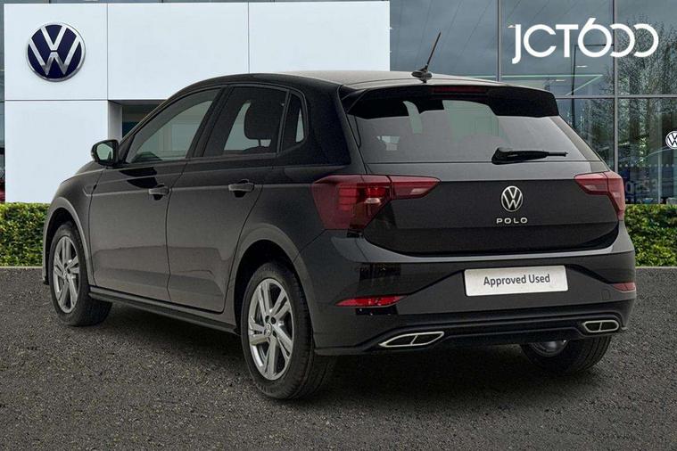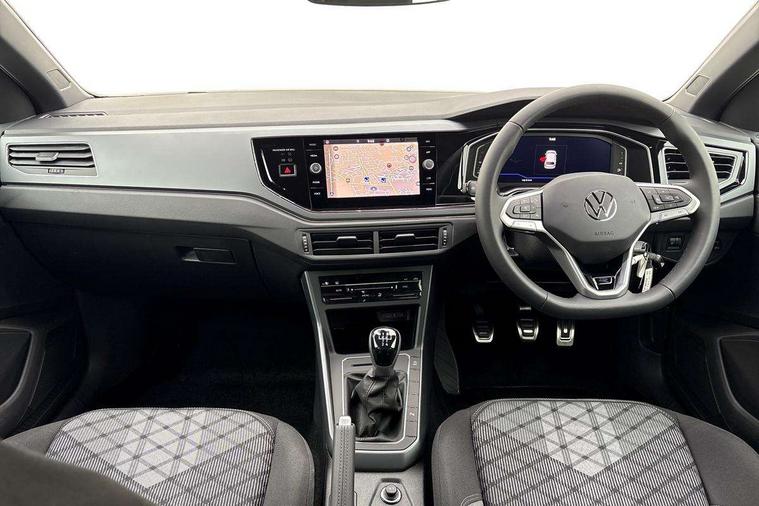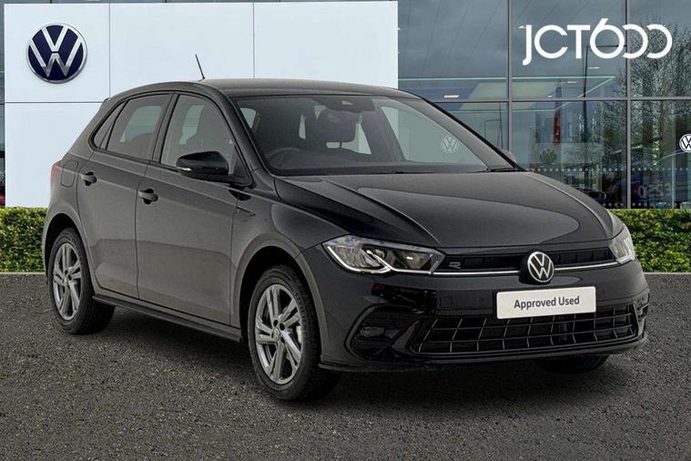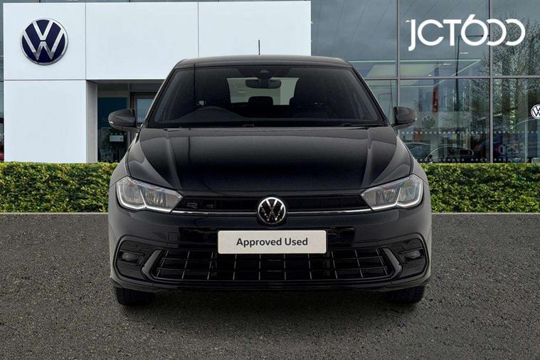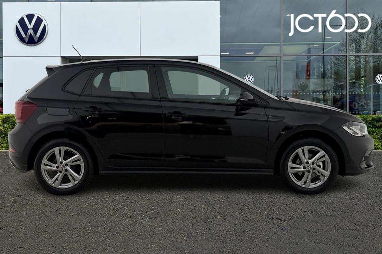 Advanced driver attention and drowsiness monitor, Bluetooth mobile phone interface, Digital Cockpit Pro with 10.25" Display, Dynamic road sign display, Emergency call service, Mobile phone preparation with inductive charging function, Multifunction camera, Power assisted speed sensitive steering, Predictive adaptive cruise control without follow-to-stop and speed limiter, Preparation for We connect and We connect plus, Speedo and rev counter, electronic odometer, trip, service interval display and fuel gauge, Standard rear axle, Travel Assist - Lane keeping system and traffic jam assist, Travel assist including emergency assist, Trip computer, Warning signal and warning light for front and rear seatbelts not fastened, Washer fluid level indicator, Wireless app connect, Front wheel drive, Rear shock absorpion, Start-stop system with battery regeneration (recuperation - energy recovery during braking), DAB Digital radio, Diversity antenna for FM reception, Body colour bumpers, Body colour door handles, Electric front windows, Front scuff plates with R-Line logo, Heat insulating glass windscreen, Power folding adjustable/heated exterior mirrors and front passenger exterior mirror lowering function, Rear electric windows, Rear fog light, Rear side wing doors, Rear windscreen washer and wiper with interval delay, Third brake light, 12V power socket in centre console, 2 USB-C ports in the front, 2 USB-C charging sockets on the center console in the rear, 3 rear head restraints, 60/40 split folding rear seat and rear seat bench not split, Air care climatronic air conditoning system with active combination filter and 2-zone temperature control, Black roof lining, Carpet mats, front and rear, Chrome plated radiator grille inserts, air vent surrounds and light switch surrounds, Door and side trim panel, Driver and front passenger seat height adjustment, Driver/passenger sunvisors with illuminated vanity mirrors, Front centre armrest, Front footwell illumination, Front seat backrest storage pockets, Front sports comfort seats, Handbrake lever handle in leather, Headliner in recycled material, Isofix child seat preparation easy-fit (for two outer rear seats, and front passenger seat) compatible with I-size, Karoso artvelours cloth upholstery, Leather trimmed gear knob, LED interior light with switch off delay and dimmer, 2 reading lights front and rear, Luggage compartment cover, Luggage compartment floor, Luggage compartment lighting, Lumbar adjustment for front seats, Multifunction steering wheel, Single front passenger seat, Stainless steel pedals, Standard pedal cluster, Light and sight pack - Polo R-Line/Black Edition, 3 point height adj front seatbelts + pretensioners, 3x3 point rear seatbelts, ABS, Driver and front passenger airbag with front passenger airbag deactivation, Drivers and front passengers safety optimised head restraints, ESC (Electronic stability control) + EDL (Electronic Differntial lock) and ASR (Traction control), Extended and predictive pedestrian/ cyclist protection, Front curtain and side airbags with center airbag, Hill hold control, Manual child lock in rear doors, Single tone horn, Tyre pressure loss indicator, Alarm with interior protection, Anti-theft alarm system with interior monitoring, backup horn, and towing protection, Anti-theft wheel bolts, Electronic engine immobiliser, Chrome applications on rotary light, mirror adjustment, window regulator switches, outlet with frame in black, Dark grey anodised matt decorative inserts in dash and front door panels, 16" Coventry alloy wheels, Low rolling resistance tyres,