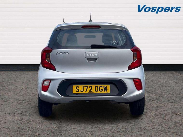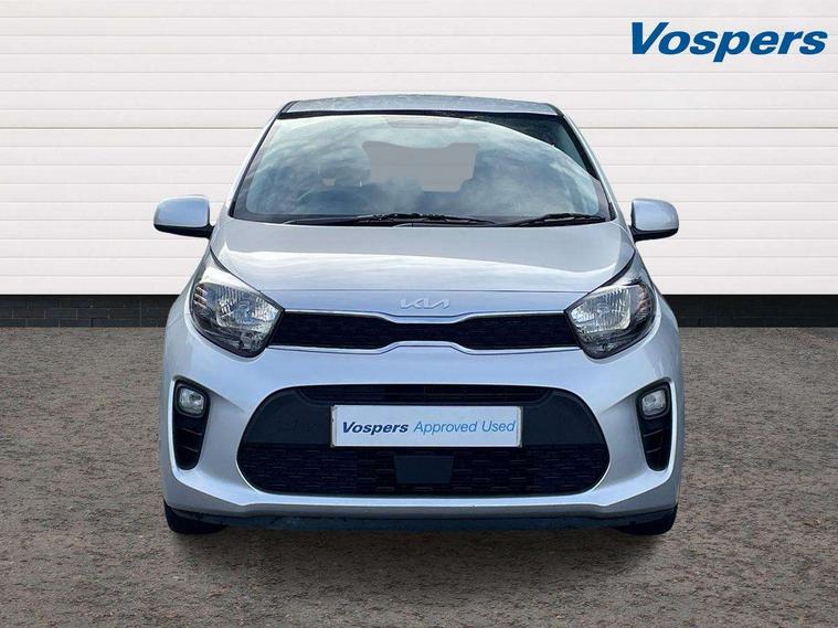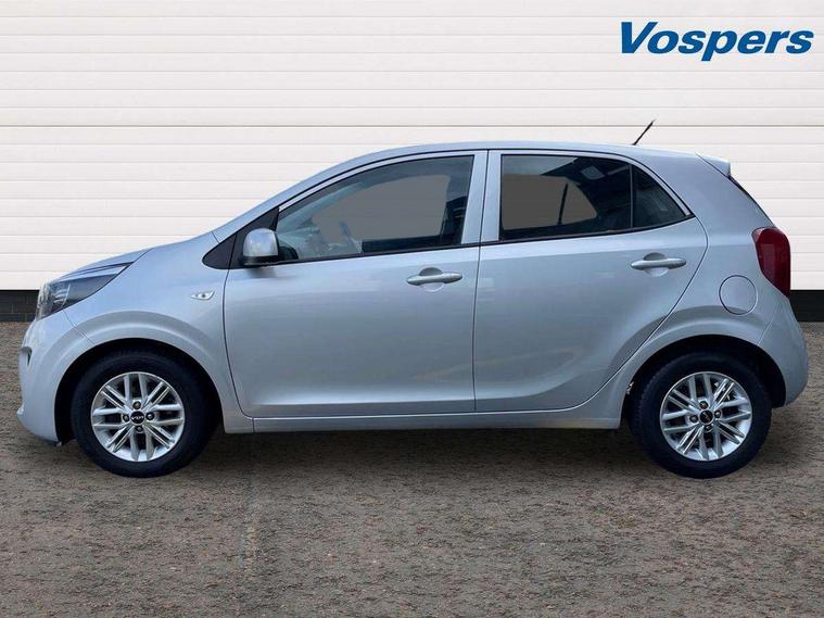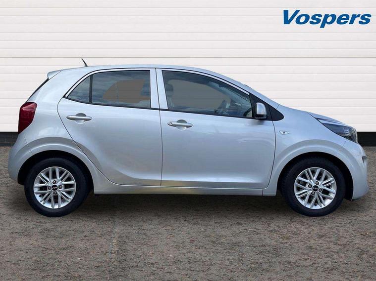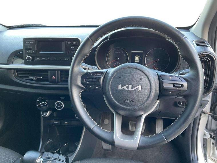 3.8" monochrome audio display with RDS and DAB, Emergency call service, Emergency stop signalling system, External temperature gauge, Motor driven power steering, Tachometer, Tailgate, Trip computer, 4 speaker audio system, Bluetooth with music streaming, Steering wheel mounted controls, USB ports for connection of a media device, Automatic headlight control system, Black radiator grille with chrome surround, Body colour bumpers, Body colour mirrors and door handles, Day/night rear view mirror, Daytime running lights, Electric adjustable heated door mirrors, Front and rear electric windows with drivers's auto up/down function, Headlamp levelling, Heated rear window, High mount brake light, MFR - Multi Focus Reflector halogen headlights with black bezel, Rain sensor, Rear fog lights, Rear side wing doors, Rear wash/wipe, Speed variable front wipers, Tinted glass, Visible VIN plate, Welcome and follow-me home light functionality, 1 x rear coat hook, 12V power point front, 2 seat bench in 2nd row, 3 x passenger assist grips, 60/40 split/folding 2nd row of seats, All round height adjustable headrests, Cupholders in centre console, Driver and front passenger sunvisor with vanity mirror, Driver seat height adjust, Front cabin lights, Glovebox, High gloss lower centre fascia trim, door armrest and air vents, ISOFIX Child seat top tethers and anchor fixings, Leather trimmed steering wheel and gearshift, Luggage area light, Luggage area parcel shelf, Manual air conditioning, Passenger front seatback pockets, Premium cloth upholstery, Silver paint finished interior door handles, Single front passenger seat, Slide/reclining front seats, Tilt adjustable steering wheel, Advanced Driver Assistance Pack - Picanto, 2 x 3-point rear seatbelts, ABS/EBD, Automatic unlocking of doors in case of impact, Dual front airbags, ESC + BAS + VSM + HAC, Front passenger airbag cut-off switch, Front seatbelt height adjusters, Front seatbelt pretensioners + load limiters, Hill hold control, Knee airbags, Rear child proof door locks, Seatbelt warning, Side impact protection, Torque vectoring brake based and straight line stability (SLS), Traction control, Twin curtain airbags, Twin front side airbags, Tyre pressure monitoring system, Anti theft alarm, Engine immobiliser, Folding key, Locking wheel nuts, Remote central door locking, 14" alloy wheels, Tyre mobility kit,