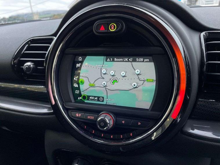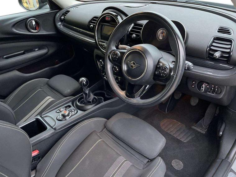 Active Guard incl speed limiting and lane departure functions with auto steering, and front collision warning with brake intervention, Automatic start/stop function with brake energy recuperation, Compatible mobile phone bluetooth with audio streaming, Digital cockpit, Electro-mechanical speed dependant steering assistance, Instrument cluster, Mini E-call, MINI TeleServices, On board computer, 6 Speed manual transmission including gear change indicator display, Double Vanos system, Fully variable valve control, High precision injection, Performance Control, FM tuner and DAB digital radio, Bonnet scoop, Chrome border honeycomb structure radiator grille with S badge, Chrome fuel filler cap, Dynamic brake lights, Electric windows, Heated rear window, Heated windscreen washer jets, LED headlights with closed ring as daytime driving lights, LED rear light with union jack design, Metal door sill strips with Cooper S imprint, Model logo, Model logo on rear doors, Rain sensor with auto headlights, Rear fog lights, Rear window wiper, Side scuttle panel with integrated indicator, Split rear doors, Sun/heat protection glass, Twin exhaust tailpipe, White indicator lenses, 12V Accessory socket in centre console, 3 spoke sport leather steering wheel + limiter function and audio controls, 360L luggage compartment capacity, 4 lashing eyes in luggage compartment, 60/40 split folding rear seat, Chrome interior highlights, Cupholders, English handbook, Front and rear head restraints, Glove compartment, Headliner with grab handles and clothes hooks, Height and length steering column adjustment, Interior lighting with 12 basic colours selectable via toggle switch in roof, Isofix rear child seat preparation, Leather gearshift lever and handbrake gaiters, LED reading lights, vanity mirror lights, front foot well light and spotlight on front seats, Manual air conditioning, Mechanical seat adjustment, driver seat height adjust, forward/back and front seats backrest, Multifunction steering wheel, Storage compartments in doors, Sunvisors with vanity mirrors, Toolkit, Excitement pack - Clubman, Navigation pack - Clubman, 2 tone horn, 3 point seatbelts on all seats, 6 Airbags - front, side, head and seat belt tensioners, Anti-lock braking system (ABS), DSC - Dynamic Stability Control, Electronic handbrake, Front and rear disc brakes, Tyre pressure monitoring system, Alarm system with tilt sensor, monitoring doors, bonnet interior and tailgate, Auto drive away locking, Deadlocking function, Electronic vehicle immobiliser, Locking wheel bolts, Start/stop toggle with keyless go, Tyre repair kit,