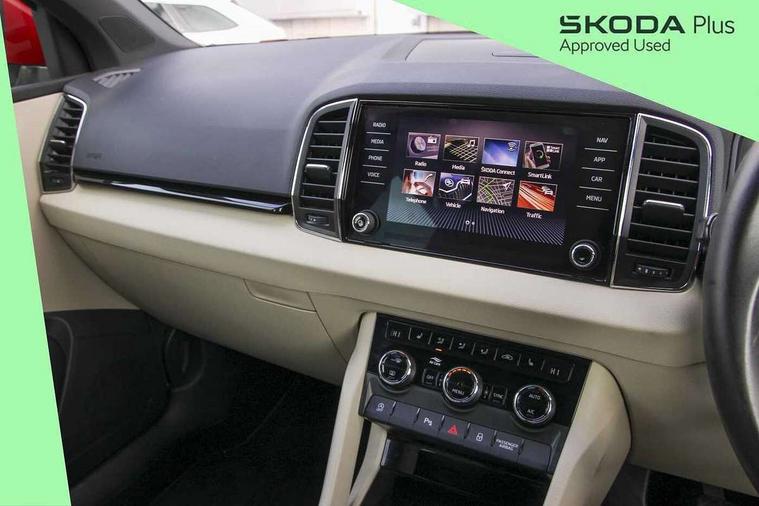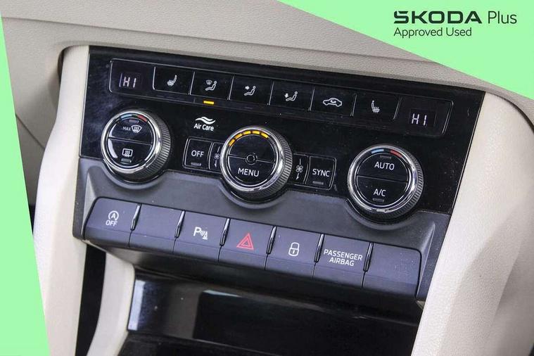 Driver alert system, Driver fatigue sensor, Driver profile selection, Electro-mechanical PAS, Front and rear parking sensors, Multifunction colour trip computer, Outside temperature gauge, Rear view camera, Service interval indicator, Start/stop system with regenerative braking, DAB radio with Bluetooth, SD card slot, USB connection, Acoustic glass, Aero front windscreen wipers with intermittent function, Automatic headlight control system, Body colour door mirrors and handles, Body coloured bumpers, Chrome outside aluminium bar around the window, Chrome roof rails, Full LED headlights + adaptive front light system + LED daytime running lights and front cornering fog lights, Headlight washers, Heated rear windscreen, LED rear lights with high functionality, Light assistant (coming/leaving home/tunnel light), Privacy glass, Safety reflectors on front doors, Third brake light, 1.5 litre bottle holders in driver and front passenger door panels, 12V socket in boot, 12v socket in front centre armrest with storage compartment and rear air vents, 2 Folding hooks and nets in boot, 2 Front readings lights for driver and passenger, 3 rear height adjustable headrests, 4 foldable roof handles with rear coat hooks, 4 lashing points on luggage floor, Backrest release, Cargo elements in boot, Chrome inner door handles, Dual zone climate control, Folding tables on the front seat backrests, Front seat and rear pockets, Height adjustable front three point seats belts with tensioners, Height adjustable passenger seat, Height/reach adjust steering wheel, Ice scraper, Illuminated and cooled glovebox, Illuminated luggage compartment, Isofix child seat preparation outer rear, Net programme in boot, Pen holder, Pollen filter, Rear boot cover, Rear reading lights, Rear seats fixed folding and divided 60:40, Removable LED torch in the boot, Retractable parcel shelf attachable to tailgate, Safety vest holder, Storage box in upper central dashboard closed, Storage compartment below the passenger seat, Storage net on centre console passenger side, Sunglasses storage compartment, Sunvisors with illuminated vanity mirrors, Textile floor mats, Umbrella under passenger seat, VarioFlex seats with retractable parcel shelf, Airbags - Front side, head, knee and curtain, Automatic door unlocking in case of crash, Automatic fuel cut off in case of crash, Driver airbag, Electronic parking brake with auto hold function, Emergency rear braking signal, ESC including ABS, MSR, ASR, EDS, HBA, DSR, RBS, MKB and traction control, Front assist radar scanning of the space in front of the car with automatic braking, Hill hold control, Passenger airbag with switch-off function, Pedestrian monitor, Seatbelt reminder signalisation and pretensioner for all seats, Three point seatbelts rear, Two tone horn, Tyre pressure display, Tyre pressure monitor, Alarm with interior monitoring, back up horn and tilt sensor with safe function, Electronic engine immobiliser, Keyless entry and keyless start with safe system, Remote central locking with 2 remote folding keys, Chrome framed air vents, Storage on wheel cover,