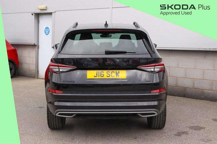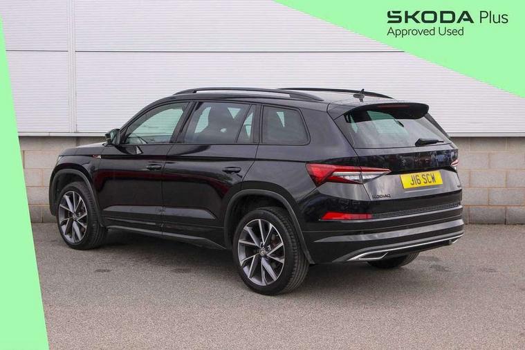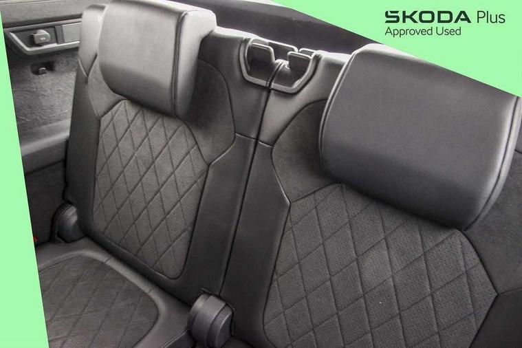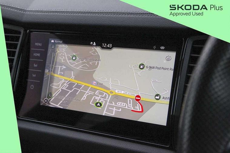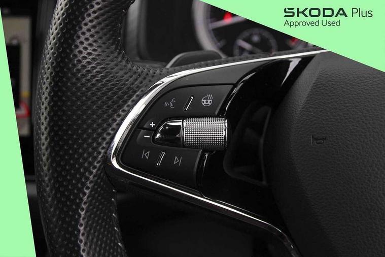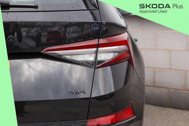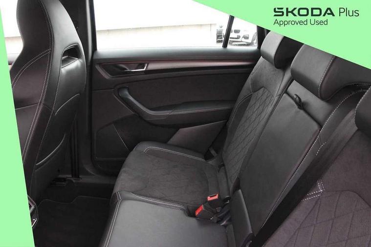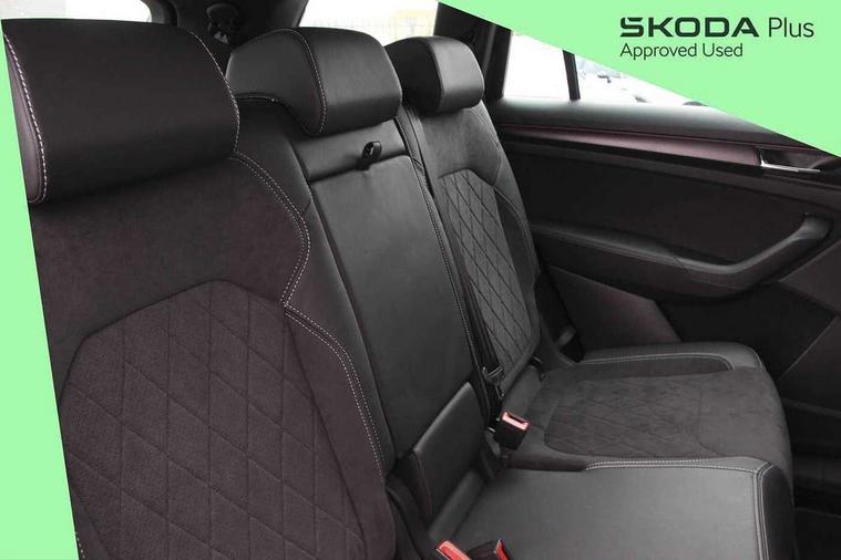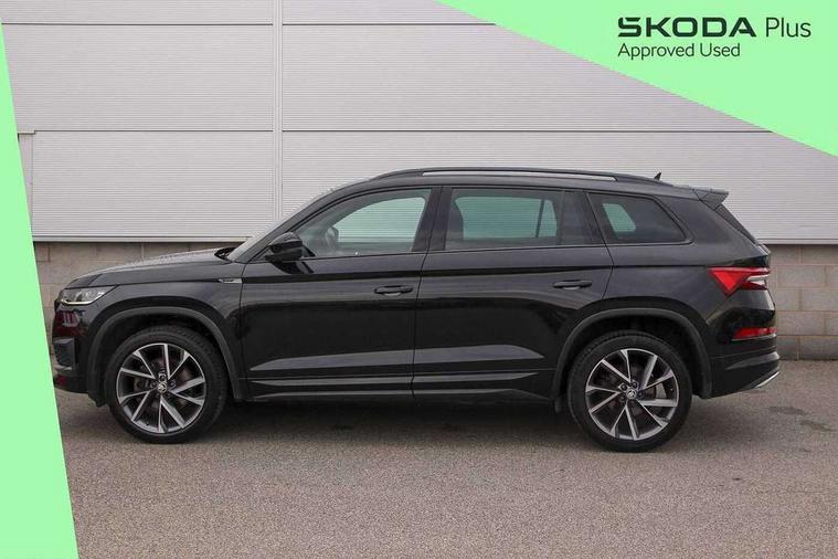 Bluetooth system, Columbus satellite navigation with 9.2" touchscreen, integrated Wi-Fi, web radio, Digital voice enhancement, E-call, ECO Stop/start function, Exterior temperature indicator, Progressive steering, Rear view camera, Smartlink wireless for apple carplay and wired for android auto, Speed limiter, Tailgate unlocking from outside, USB C Port x 2 in front centre console, Wireless charging, 8 Speakers, DAB Digital radio, Aero front windscreen wipers with intermittent function, Aero rear window wiper, Auto dimming rear view mirror, Black roof rails, Black sports styling including front grille and window surrounds, Black wheel arch surrounds, Body colour bumpers, Body colour door handles, Electric adjustable/heated/folding door mirrors, driver side auto dimming with boarding sports and memory function, Electric front and rear windows, Extended rear spoiler with finlets in gloss black, Front fog lights, Full LED matrix headlights with AFS (adaptive front light system), cornering function and AWL (all weather lighting system), Gloss black door mirrors, Headlight washers, Heated rear window, Invisible tailpipe, LED daytime running lights, LED rear fog light, LED third brake light in rear spoiler, Light assistant (coming/leaving home/tunnel light), Off-road style lower front bumper element, Privacy glass, Rain and light sensors, Rear diffuser, Rear LED lights (high functionality) with welcome effect and dynamic indicators, Rear side wing doors, Safety reflectors on front and rear doors, Sportline badge on front fender, Sports front and rear bumpers including lower rear chrome strip, Tailgate lettering in Black, Window control switches with black trim, Without engine designation, 12V socket in boot, 2 rails with 2 hooks, 2 seat bench in 3rd row, 3 seat bench in 2nd row, 4 foldable roof handles with rear coat hooks, 60:40 foldable rear seat with sliding adjustment and backrest angle adjustment, Aluminium pedals, Black roof headlining, Bottle holders in door panel in the 1.5 litre front and 1 litre rear, Cargo storage compartments, Chrome headlight control button, Chrome interior door handles, Coat hooks on B pillar, Covered storage compartment on driver side, Front centre armrest with storage compartment, cup holder and 12V socket, Front courtesy lights, Gear shift lever with chrome frame and black gloss insert, Grey stitching in front and rear armrests and door armrests + door inserts, Height adjustable front headrests, Illuminated and cooled glovebox, Illuminated luggage compartment, Isofix child seat fittings in outer rear seats with top tether, Manually adjustable steering column, Microsuede door panels, Net programme in boot (1x horizontal Net, 2x vertical Nets), Overhead glasses storage compartment, Pollen filter, Rear centre armrest with cupholders, Single front passenger seat, Sliding trunk cover, Small Bags on the inner sides of the front backrests, Sports seats, Sunvisors with illuminated vanity mirrors, Three rear height adjustable headrests, Ticket holder on A Pillar, Umbrella in door panel, Variable boot floor, LED Interior light pack - Kodiaq, Auto door release and activation of warning lights in the event of an accident, Child locks on rear doors, Driver and front passenger airbag with knee airbag and front passenger airbag deactivation, Electronic parking brake with hill start assist, Emergency rear braking signal, ESC (incl. ABS+MSR+ASR+EDS+HBA+DSR+RBS+MKB), Front assist with autonomous emergency braking, Front side airbags with curtain airbags, Fuel cut off safety device, Height adjustable front 3 point seatbelts + pretensioners, Hill hold control, Rear disc brakes, Safety vest holder in door, Seat belt reminder for all seats, Three point rear seat belts, Two tone horn, Tyre pressure monitor, Alarm with interior monitoring and tilt sensor with safe function, Anti-theft wheel bolts, Immobiliser, Keyless entry and start system (KESSY), Remote central locking with 2 keys, Black air vent surround, Carbon finish dashboard and door inserts, Grey stitching in dashboard, 20" Vega Anthracite alloy wheels, Temporary spare wheel (space saver),
