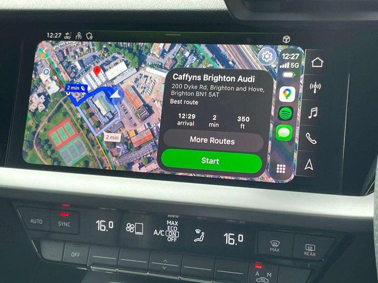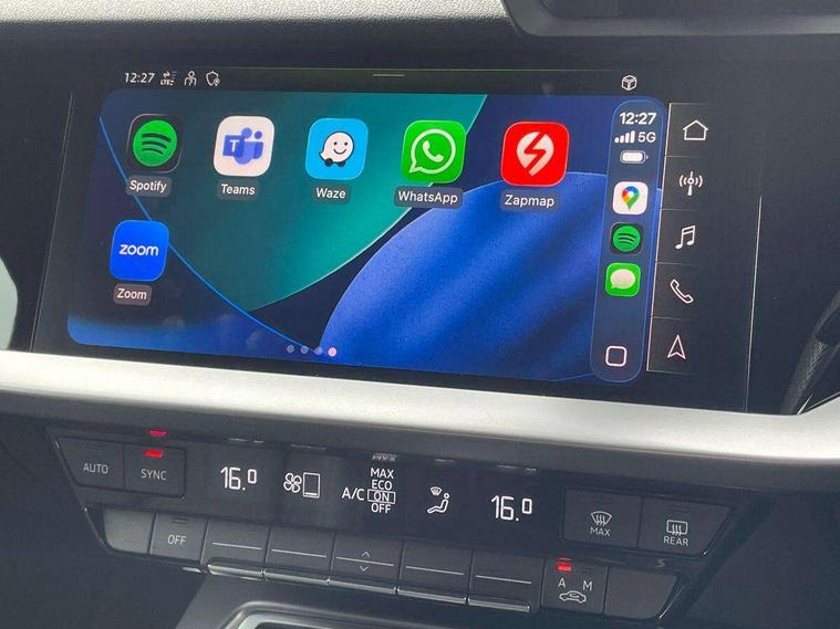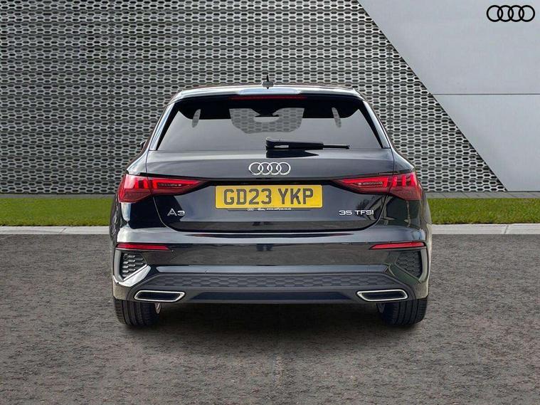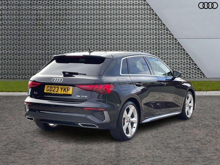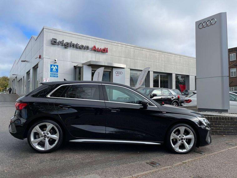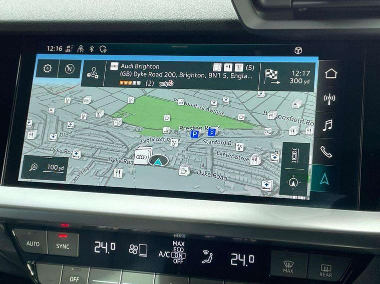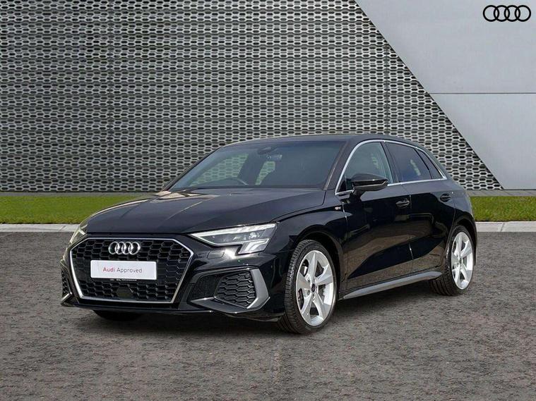 Audi drive select (Auto, Comfort, Dynamic, Efficiency and Individual), Audi smartphone interface, Audi Virtual Cockpit - 10.25" digital and colour instrument cluster, Automatic start/stop system with recuperation, Bluetooth interface, Camera based traffic sign recognition, Collision avoidance assistant, e-Call (emergency call), Electromechanical power speed sensitive steering, Lane departure warning system, MMI Navigation Plus with high resolution 10.1" colour touch screen display, Service indicator, Trip computer, Voice control system with natural language interaction, Sports suspension, 2xUSB-C connection with data and charging functions, 6 passive loudspeakers, DAB Digital radio, 3rd brake light, Acoustic glass windscreen, Aluminium window trim, Auto dimming frameless rear view mirror, Body colour exterior mirrors, Electrically adjustable/heated/folding/dimming door mirrors with kerb view includes integrated LED indications + kerb view function for passenger side, Front electric windows, Illuminated door sills with aluminium inserts at the front with S logo, LED daytime running lights, LED headlights with LED rear lights and dynamic rear indicators, Light and rain sensors, Privacy glass - dark tinted rear window, rear door and side windows, Rear electric windows, Rear side air outlets in grained matt black, Rear side wing doors, Rear wiper, S line bumpers, S roof spoiler, 12V socket and storage compartment in front centre console, 3 seat bench in 2nd row, 3 spoke leather multifunction steering wheel with paddle shift, 4 way electrically adjustable lumbar support for driver and front passenger, 60/40 split folding rear seat bench, Black cloth headlining, Dual zone electronic climate control, Front and rear centre armrest in artificial leather, Front and rear headrests, Front/rear floor mats, Height and reach adjustable steering wheel, Interior lighting - glove compartment light and right hand side, Luggage compartment floor covering, Manual boot compartment lid, Manually adjustable front seats, Seat side bolsters, Single front passenger seat, Stainless steel pedals and front footrest in black, Twin leather upholstery with front sports seats S embossed logo, Aluminium interior elements pack - A3 Sportback, LED interior lighting pack - A3 Sportback, S line styling pack - A3 Sportback, 3x3 point rear seat belts, Driver and front passenger airbag with passenger airbag deactivation, Electronic Stabilisation Control (ESC) including ABS, ASR and EDL, First aid kit with warning triangle and 2 safety vests, Front side airbags with head airbags and interaction airbag, Pre-sense front with pedestrian and cyclist detection, Seatbelt monitoring, Tyre pressure loss indicator, Anti theft alarm, Anti-theft wheel bolts, Electronically operated child locks, Immobiliser, Remote control central locking, Dark spectrum aluminium inlays, accent surfaces in the dashboard and centre console in platinum grey silk effect paint finish,