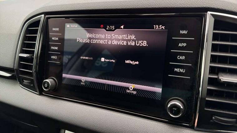 Drive mode selector, Driver alert system, Driver fatigue sensor, Driver profile selection, Multifunction colour trip computer, Outside temperature gauge, Rear view camera, Service interval indicator, Start/stop system with regenerative braking, DAB radio with Bluetooth, SD card slot, USB connection, Acoustic glass, Aero front windscreen wipers with intermittent function, Automatic headlight control system, Black electric window control buttons, Body colour door mirrors and handles, Body coloured bumpers, Electric front and rear windows with child proof lock, Full LED headlights + adaptive front light system + LED daytime running lights and front cornering fog lights, Headlight washers, Heated rear windscreen, LED rear lights with high functionality, Light assistant (coming/leaving home/tunnel light), Privacy glass, Safety reflectors on front doors, Third brake light, 1.5 litre bottle holders in driver and front passenger door panels, 12V socket in boot, 12v socket in front centre armrest with storage compartment and rear air vents, 2 Folding hooks and nets in boot, 2 Front readings lights for driver and passenger, 3 rear height adjustable headrests, 4 foldable roof handles with rear coat hooks, 4 lashing points on luggage floor, Backrest release, Cargo elements in boot, Chrome inner door handles, Dual zone climate control, Folding tables on the front seat backrests, Front seat and rear pockets, Height adjustable front three point seats belts with tensioners, Height adjustable passenger seat, Height/reach adjust steering wheel, Ice scraper, Illuminated and cooled glovebox, Illuminated luggage compartment, Isofix child seat preparation outer rear, Net programme in boot, Pen holder, Pollen filter, Rear boot cover, Rear reading lights, Rear seats fixed folding and divided 60:40, Removable LED torch in the boot, Retractable parcel shelf attachable to tailgate, Safety vest holder, Storage box in upper central dashboard closed, Storage compartment below the passenger seat, Sunvisors with illuminated vanity mirrors, Textile floor mats, Umbrella under passenger seat, VarioFlex seats with retractable parcel shelf, Chrome roof rails + chrome pack - Kodiaq, Airbags - Front side, head, knee and curtain, Automatic door unlocking in case of crash, Automatic fuel cut off in case of crash, Driver airbag, Electronic parking brake with auto hold function, Emergency rear braking signal, ESC including ABS, MSR, ASR, EDS, HBA, DSR, RBS, MKB and traction control, Front assist radar scanning of the space in front of the car with automatic braking, Hill hold control, Passenger airbag with switch-off function, Pedestrian monitor, Seatbelt reminder signalisation and pretensioner for all seats, Three point seatbelts rear, Two tone horn, Tyre pressure display, Tyre pressure monitor, Alarm with interior monitoring, back up horn and tilt sensor with safe function, Electronic engine immobiliser, Keyless entry and keyless start with safe system, Remote central locking with 2 remote folding keys, Chrome framed air vents, Storage on wheel cover,