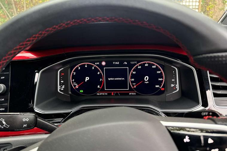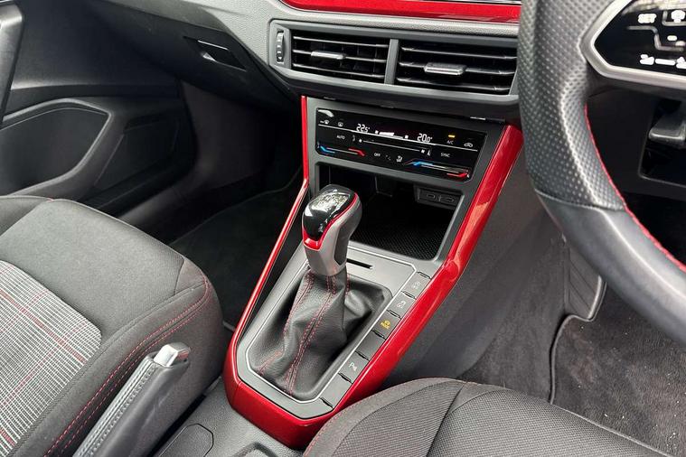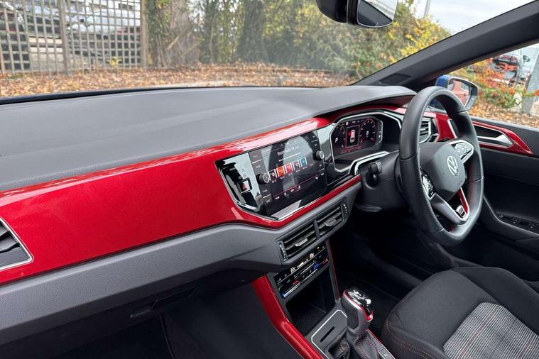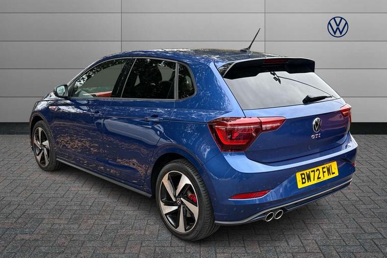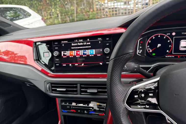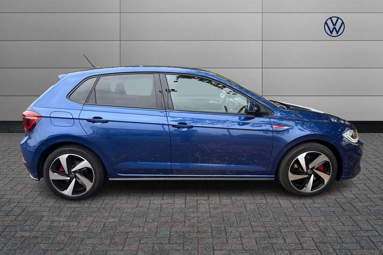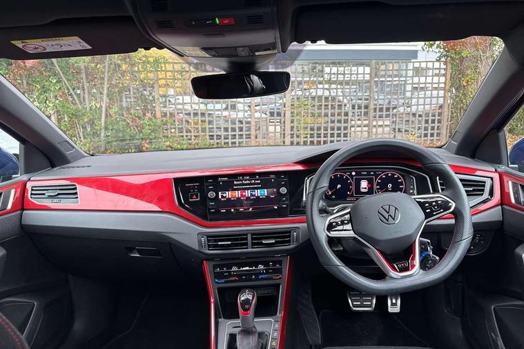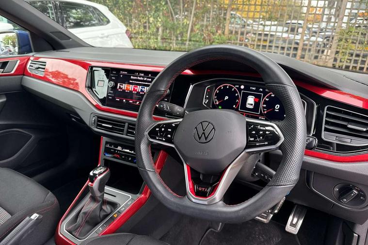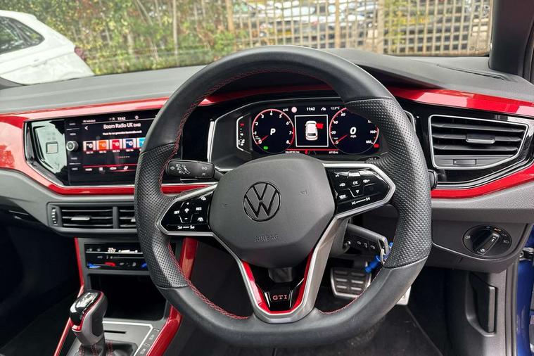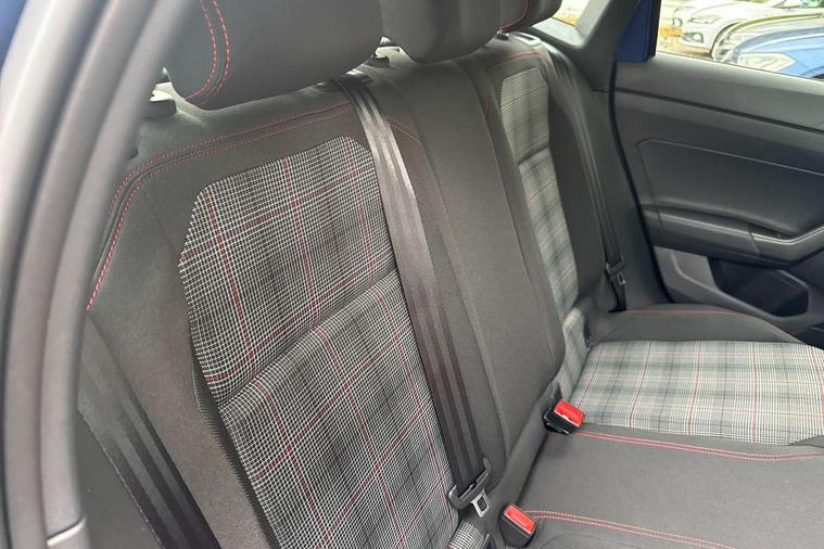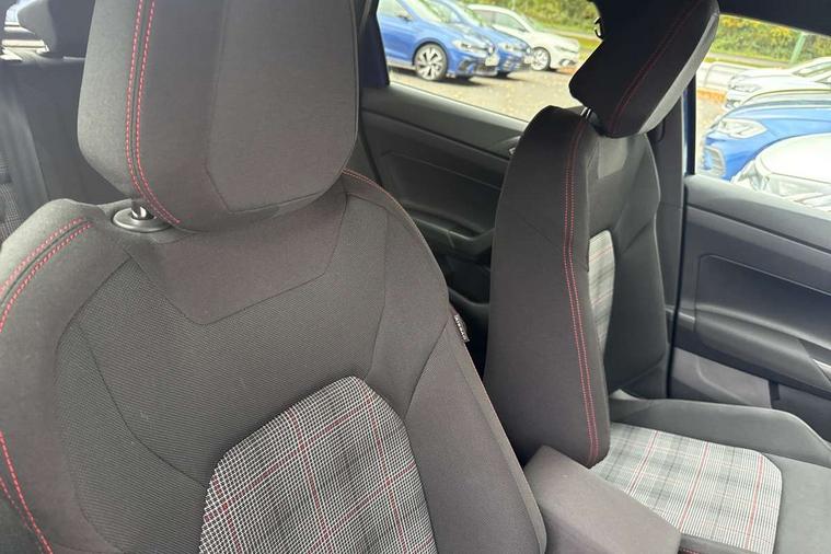 Adaptive cruise control with follow-to-stop and speed limiter, Bluetooth mobile phone interface, Digital Cockpit Pro with 10.25" Display, Driver alert system, Dynamic road sign display, Eco mode, Emergency call service, Power assisted speed sensitive steering, Preparation for We connect and We connect plus, Speedo and rev counter, electronic odometer, trip, service interval display and fuel gauge, Travel Assist - Lane keeping system and traffic jam assist, Travel assist including emergency assist, Trip computer, Warning signal and warning light for front and rear seatbelts not fastened, Washer fluid level indicator, Wireless app connect, Adaptive chassis control, Front wheel drive, Heavy duty rear axle, Rear shock absorpion sports version, Sports select suspension lowered by 15mm, Start-stop system with battery regeneration (recuperation - energy recovery during braking), DAB Digital radio, Diversity antenna for FM reception, Front and rear 6 speakers, Body colour bumpers, Body colour door handles, Electric front windows, Front scuff plates in aluminium with GTI logo, Heat insulating darkened glass in side and rear windows, Heat insulating glass windscreen, Power folding adjustable/heated exterior mirrors and front passenger exterior mirror lowering function, Rear electric windows, Rear fog light, Rear side wing doors, Rear windscreen washer and wiper with interval delay, Sport bumpers with air intakes with honeycomb structure, Third brake light, Twin chrome exhaust tailpipes, 12V power socket in centre console, 2 USB-C ports in the front, 2 USB-C charging sockets on the center console in the rear, 3 rear head restraints, 60/40 split folding rear seat and rear seat bench not split, Air care climatronic air conditoning system with active combination filter and 2-zone temperature control, Black roof lining, Chrome plated radiator grille inserts, air vent surrounds and light switch surrounds, Door and side trim panel, Driver and front passenger seat height adjustment, Driver/passenger sunvisors with illuminated vanity mirrors, Front + rear carpet mats in recycled material, Front centre armrest, Front footwell illumination, Front seat backrest storage pockets, GTI sports gearshift knob in aluminium leather, Handbrake lever handle in leather, Headliner in recycled material, Isofix child seat preparation easy-fit (for two outer rear seats, and front passenger seat) compatible with I-size, LED interior light with switch off delay and dimmer, 2 reading lights front and rear, Luggage compartment cover, Luggage compartment floor, Luggage compartment lighting, Single front passenger seat, Stainless steel pedals, Standard pedal cluster, Three spoke leather wrapped multifunction sports steering wheel with shifting paddles, IQ LED matrix headlights pack - Polo, Light and sight pack - Polo GTI, Sports suspension pack - Polo, 3 point height adj front seatbelts + pretensioners, 3x3 point rear seatbelts, ABS, Driver and front passenger airbag with front passenger airbag deactivation, Drivers and front passengers safety optimised head restraints, ESC (Electronic stability control) + EDL (Electronic Differntial lock) and ASR (Traction control), Extended and predictive pedestrian/ cyclist protection, Front and rear disc brakes with red brake calipers, Front curtain and side airbags with center airbag, Hill hold control, Manual child lock in rear doors, Two tone horn, Tyre pressure loss indicator, Alarm with interior protection, Anti-theft alarm system with interior monitoring, backup horn, and towing protection, Anti-theft wheel bolts, Electronic engine immobiliser, Chrome applications on rotary light, mirror adjustment, window regulator switches, outlet with frame in black, Low rolling resistance tyres,