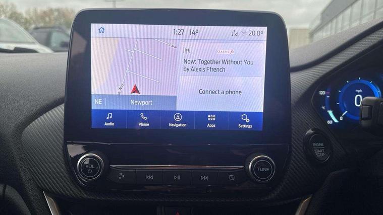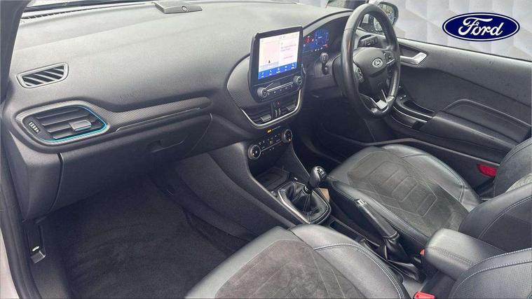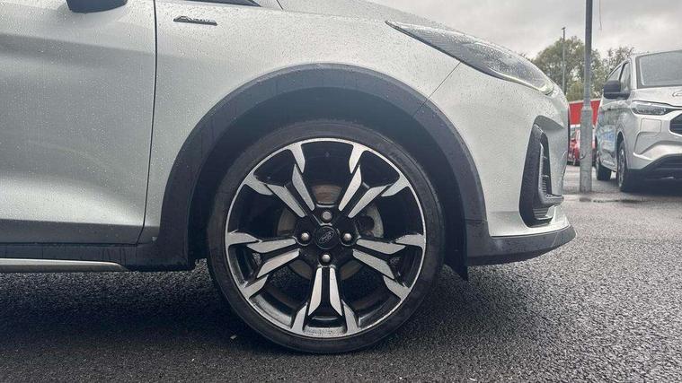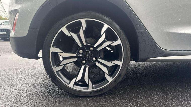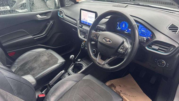 12.3" Full digital cluster, Driver alert system, Electric power steering, Extra selectable drive modes ( Trail, Slippery), Ford easy fuel, Ford SYNC 3 Nav with DAB radio, 8" touch screen, voice control, emergency assist, Apple CarPlay/Android auto, 2x USB, 6 speaker, Ford pass connect, Rear parking distance sensors, Rear view camera, Speed sign recognition, Trip computer, Wrong way alert, Rough road suspension with increased ride height adjust, Auto high beam, Body colour bumpers, Body coloured electrically operated with side indicators, Electric front windows/one touch facility, Electric rear windows, Front ST line scuff plate, LED Night signature to rear lights, LED third brake light, Quickclear heated windscreen, Rain sensing wipers and auto dimming rear view mirror, Rear privacy glass, Rear side wing doors, Rear wiper, Rugged bodystyling kit with active front wing badges, 3 seat bench in 2nd row, 4 way manually adjustable passenger seat, Adjustable head restraints, Centre console with opening armrest, 2x cupholders, 12v and USB, Drivers and Passenger lumbar support, EATC - Electronic Auto Temperature control, Front floor mats in velour, Leather gaiter, LED ambient lighting, Manual 4-way driver seat adjust, Sensico partial premium leather upholstery with blue stitching, Sensico wrapped steering wheel, Single front passenger seat, NCAP Pack - Fiesta, Winter pack [GTBAB]- Fiesta, 3 point seatbelts on all rear seats, Electronic stability control with hill start assist, Manual child lock in rear doors, Tyre pressure monitoring system, Ford keyfree system with Keyless entry and keyless start, MyKey system, Remote central locking, Thatcham alarm with power door dead locks, 18" 5x2 spoke alloys with bi-colour black machined finish,