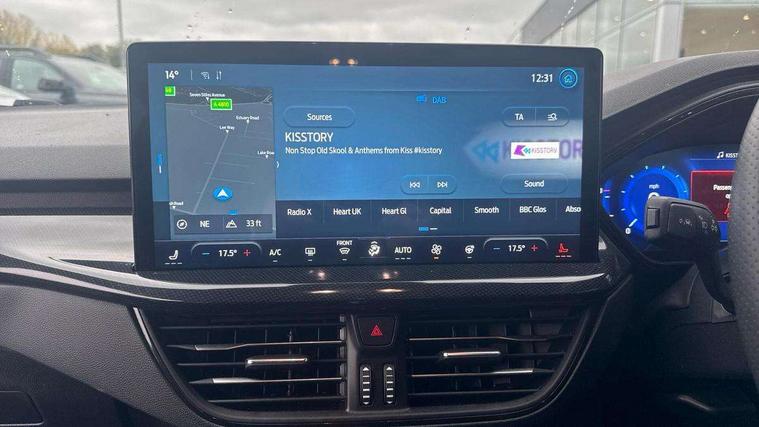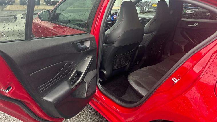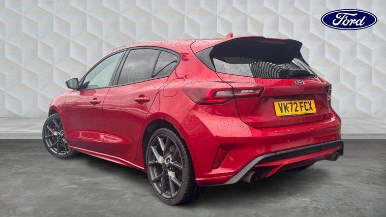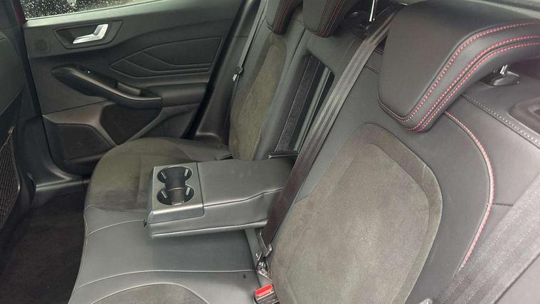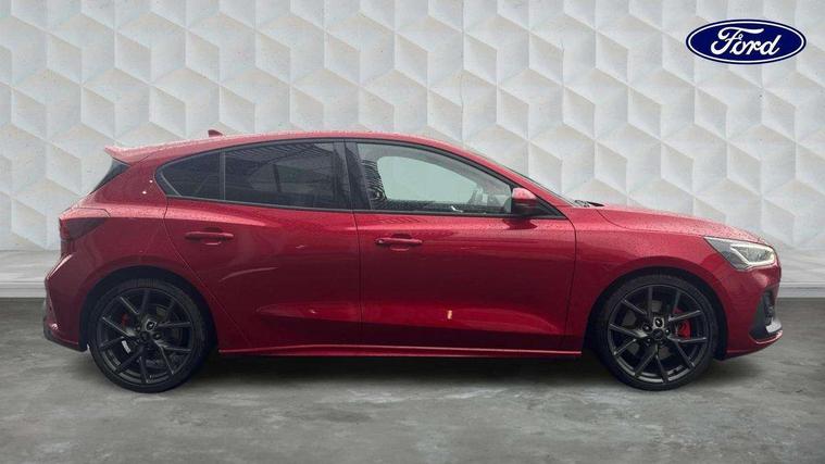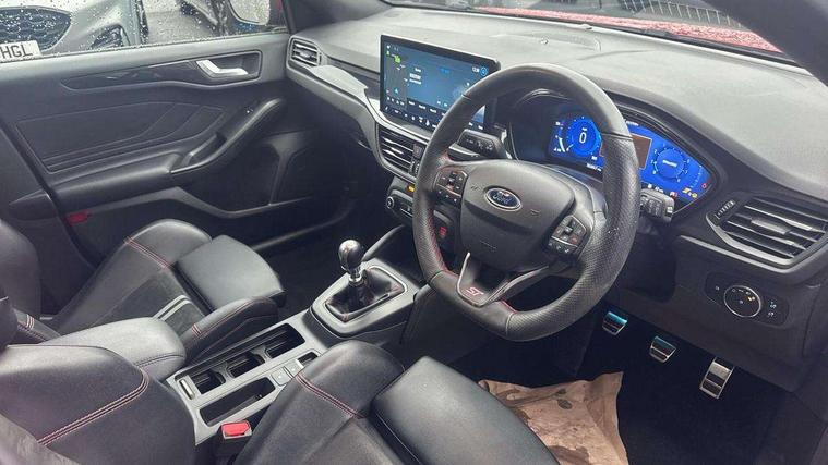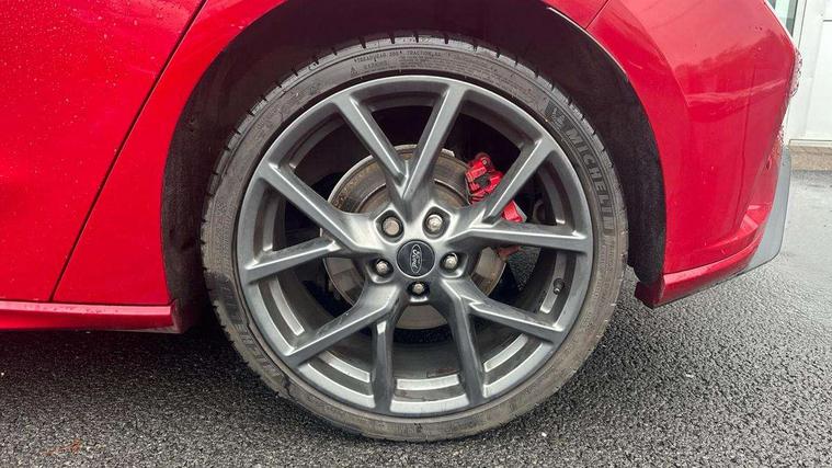 12.3" Digital instrument cluster, Bluetooth system, Digital clock, Easy fuel capless refuelling system, Eco mode, Ford SYNC4 Nav with 13.2'' touchscreen, DAB, Emergency Assistance, Apple Carplay & Android Auto, B&O Premium Audio with 10 speakers, FordPass Connect, Lane keeping system - lane keeping alert and lane keeping aid, PAS, Rev counter, Selectable drive mode, Service interval indicator, Trip computer, Wireless charging pad, Unique ST sport suspension with limited slip differential, 2 USB ports, Auto headlamps (on/off), Auto high beam assist, Body coloured door handles, Daytime running lights, Dynamic matrix LED headlamps including Glare free lighting, Electrically operated front and rear windows with one touch opening and closing, Electrically operated heated power fold door mirrors with puddle lamp with side indicators, Front variable intermittent wipers with electric wash, Heated rear window, LED rear lamps, LED third brake light, Privacy glass, Quickclear heated windscreen, Rain sensor, Rear side wing doors, Tailgate wash/wipe, Unique ST upper & lower grille with full bodystyling kit, 3 rear headrests, 3 seat bench in 2nd row, Dual zone electronic air temperature control, Height adjustable front headrests, Isofix child seat preparation, Load through ski hatch, Partial sensico upholstery with ford performance seat, Power 6-way driver seat adjust, with power lumbar adjust, Power 6-way passenger seat adjust, with power lumbar adjust, Reach + rake adjustable steering column, Single front passenger seat, Winter pack - Focus, 3x3 point rear seatbelts, ABS+Electronic Brake force Distribution, Auto hold function, Driver airbag, EDL traction control, Electronic parking brake, Electronic stability control, Front and rear seatbelt reminder, Front inertia reel height adjustable seatbelts with pre-tensioners, Front passenger airbag, Front side airbags, Passenger airbag deactivate switch, Post collision braking, Pre collision assist with autonomous emergency braking and pedestrian/cyclist detection, Red brake calipers, Remote/power child rear door locks, Side curtain airbags, Three rear inertia reel lap/diagonal seatbelts, Tyre pressure monitoring system, Keyless entry and keyless start, MyKey system, Remote central locking & engine immobiliser, Thatcham alarm with power door dead locks, 19" 5x2 spoke magnetite matte finish alloy wheels with mini spare wheel,