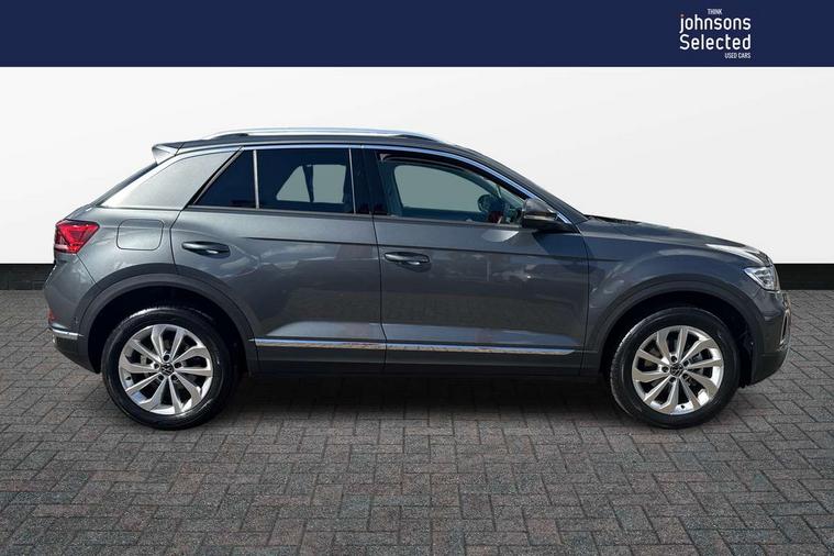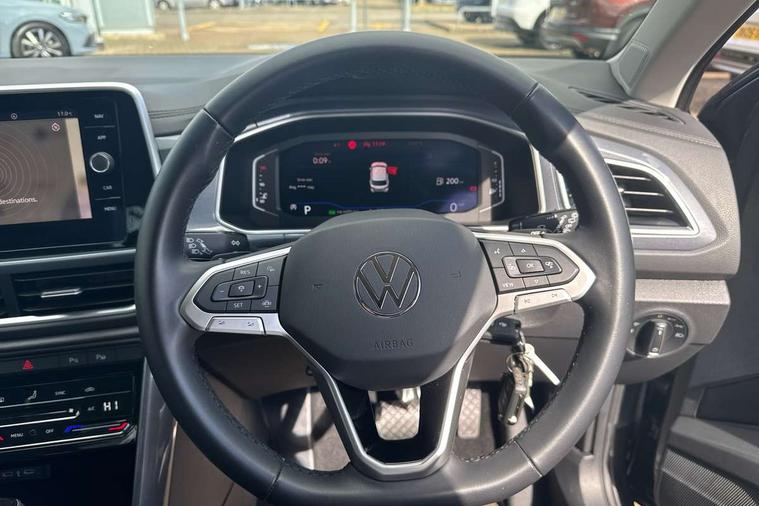 10.25" Digital cockpit pro, Bluetooth mobile phone interface, Driver alert system with fatigue detection, Driver tips and journey analysis, Emergency call service, Lane keeping system Lane Assist, Modified key software - reduce switch off time for key status change to Long no motion, Online services, Park assist including front and rear parking sensors, Service interval indicator, Tailgate/trunk lid release from outside, Think blue trainer driver tips and journey analysis, Warning sound and light for front seatbelts unfastened, Wireless app connect, Battery regeneration during braking, Start/stop function with battery regeneration, Diversity antenna for FM reception, Front and rear 6 speakers, Music playback - MP3, WMA and AAC files, Premium USB cable in choice of either Apple or Android smartphone compatibility, SD card slot, Simultaneous pairing of 2 compatible mobile devices, Title and cover art display, We Connect and We Connect Plus functionality, 3rd brake light, Auto dimming interior rear view mirror, Automatic hazard lights activation under emergency braking, Automatic headlight control with LED separate daytime running lights with coming/leaving home function, Body colour sports bumpers with silver metallic underbody fascia, Dynamic headlight range control with self adjusting whilst driving, Extended roof spoiler, Exterior mirrors aspherical on driver side, convex on front passenger side, External USB type C socket and charging sockets, Front windscreen wiper with intermittent wipe and 4 position delay, Heated rear window, LED Plus headlamps, LED rear combination lamps, LED rear number plate lights, LED tail lamp rear comination lamps, Light mode for poor weather, rain, fog or snow, Power windows with comfort operation and circuit breaker, Rain sensor, Rear exhaust tailpipe, Rear fog light on one side and reversing lights on both sides, Rear side wing doors, Rear wash/wipe with intermittent wipe setting, Remote electrically foldable door mirrors, puddle lights and reverse activated passenger's door mirror, 12V power socket in centre console, 3 rear head restraints, 3 seat bench in 2nd row, 4 load lashing points in luggage compartment, Air care climatronic air conditoning system with active combination filter and 2-zone temperature control, Chrome plated radiator grille inserts, air vent surrounds and light switch surrounds, Door and side trim panel with leatherette insert, Drawer under drivers seat, Front + rear carpet mats, Front centre armrest, Front comfort sports seats, Front cupholders x 2, Front footwell illumination, Instrument lighting, white adjustable panel illumination, Interior ambient lighting and surround lighting, Interior light delay, Isofix child seat preparation, Leather gearshift handle, LED interior light with switch off delay/dimmer and 2 front/rear LED reading lights, Load-through provision with cup holder when folded down ('Unsplit rear seat bench, split folding backrest, with centre armrest), Luggage compartment lighting, Non-folding front passenger seat backrest, Single front passenger seat, Storage compartment in left and right luggage area, Storage compartment in rear doors, Storage compartments in driver and front passenger doors, Sunvisors with illuminated vanity mirrors, Variable boot floor, height adjustable and removable, Driver assistance pack without proactive passenger protection - T-Roc, 3 point height adj front seatbelts + pretensioners, 3 point seatbelts in outer rear with ECE label, ABS, Child locks on rear doors, Driver and front passenger airbag with front passenger airbag deactivation, Driver and front passenger safety-optimised head restraints, Drivers seatbelt reminder, Electronic parking brake, Electronic Stability Control (ESC) inc EDL (Electronic Differential Lock) and ASR (Traction Control), Front and rear passengers curtain airbag system including front side airbags, Front assist with city emergency braking and pedestrian monitoring, Front seat side impact airbags, Predictive pedestrian protection, Rear disc brakes, Single tone horn, Tyre pressure loss indicator, Volkswagen roadside assistance, Alarm with interior protection, Anti-theft alarm system with interior monitoring, backup horn, and towing protection, Remote central locking with SAFELOCK, radio remote control with 2 remote control folding keys, Trims for alloy wheels,