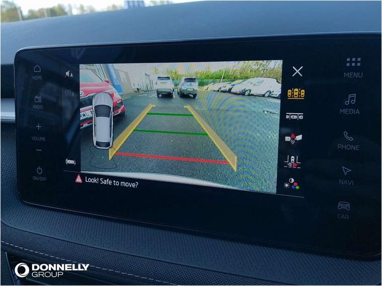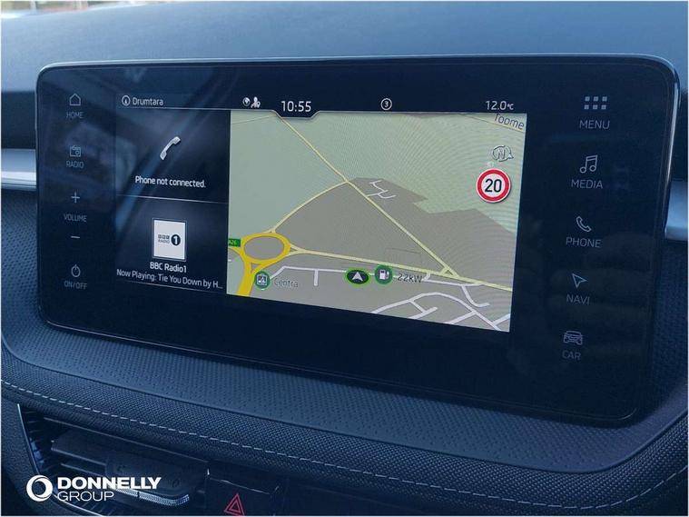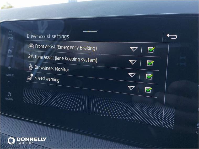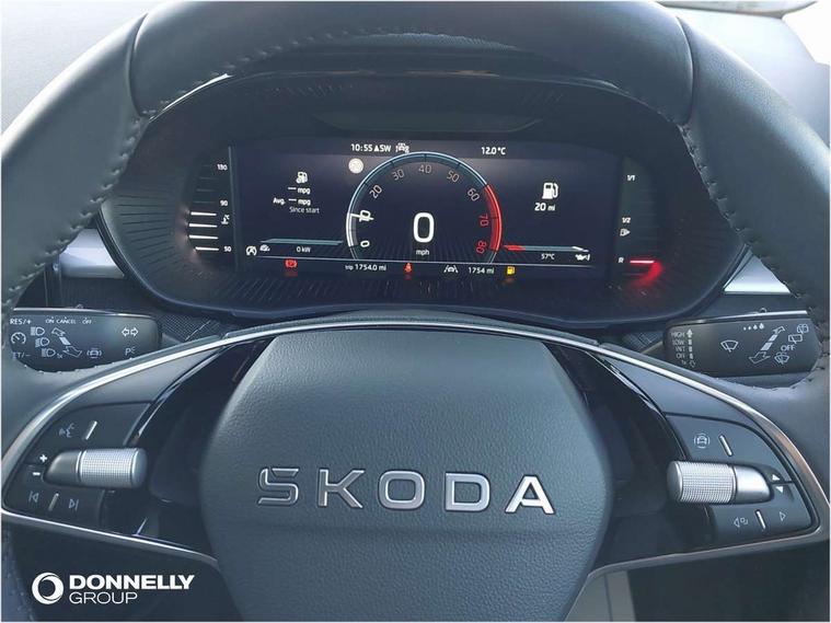 Advanced driver attention and drowsiness monitor, Bluetooth connection, Electromechanical power steering, Exterior temperature gauge, Service interval indicator, Traffic sign recognition, Virtual cockpit with 10.25" colour display, Wireless SmartLink for Apple CarPlay and Android Auto, 6 Speakers (4 in front and 2 in rear), 9.2" colour display skoda navigation system with voice control and web radio, Auxiliary socket for external MP3 player, DAB digital radio reception, Auto dimming rear view mirror, Body colour door mirrors, Body coloured bumpers, Chrome window surround, Door mirror integrated indicators, Front and rear electric windows, Front window wiper intermittent control, Headlight range control - Automatic, Ice scraper in fuel cap, LED 3rd brake light, LED daytime running lights with coming and leaving home feature, LED rear lights, Privacy glass, Rear LED fog light, Rear side wing doors, Rear window wiper with washing nozzles, Roof mounted spoiler, SKODA tailgate lettering in chrome, Unique dark chrome design logo on alloy wheels, 2 LED reading lights in front and rear, 3 rear headrests, Backrest split and folding, Central console with removable cup holder and storage box, Chrome handbrake release button, Comfort seats, Door sills with fabia badging, Dual zone air conditioning with climatronic electronic control, Fabric upholstery, Front centre armrest, Gearshift knob/handle in leather, Hand brake lever handle in leather, Height adjustable front headrests, Height adjustable front seats, Height adjustable steering wheel, ISOFIX and TopTether anchorage points to the outer rear seats, ISOFIX and TopTether on the front passenger seat, Luggage compartment lighting, Manually adjustable lumbar support in front seats, Metallic grey interior door handles, Pollen filter, Rear seat bench unsplit, Single front passenger seat, Skoda lettering on steering wheel, Storm grey headlining, Sun visors with mirror and airbag label on passenger side, Textile floor mats, Ticket holder, Umbrella in drivers door, 3-point height adjustable front seats belts with pretensioner and force limiter, Automatic warning lights in case of crash, Driver and passengers airbag with switch off function, e-Call+, ESC including ABS, MSR, ASR, EDS, HBA and XDS, Front and rear seat belt warning, FRONT ASSIST (AEB City and AEB Inter Urban), Front side airbags, Head airbags, One tone horn, Pedestrian protection, Three rear 3-points safety seat belts with pretensioner and force limiter including stop function for outer rear seat belts, Tyre pressure monitoring system, Anti-theft alarm system including immobiliser, interior monitoring, backup horn, and towing protection, Central locking with radio remote control, interior controls, SAFE function and 2 foldable keys, Black painted air vents, Metallic grey central console cover, Metallic grey upper decorative trim, Satin black door and side trim panel in front, Textile microsuede grey lower decorative trim with art grey stitching, Anti-theft wheel bolts protection, Super-low rolling resistance tyres,