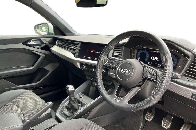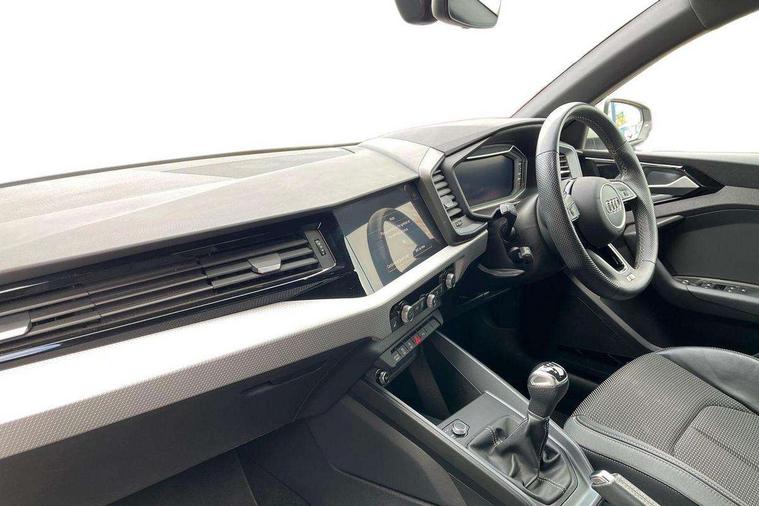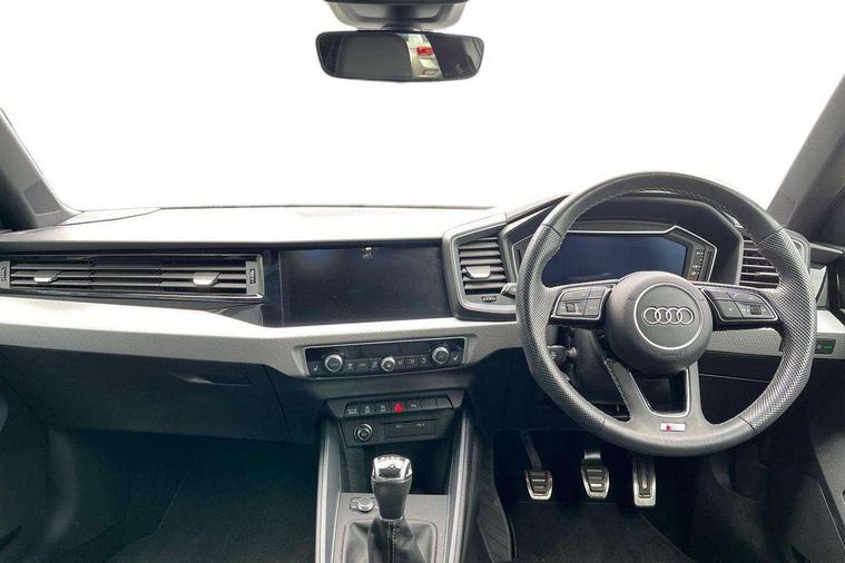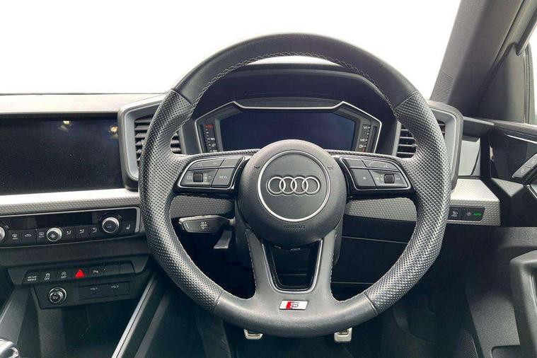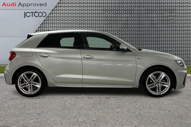 10.25" Digital instrument cluster display classis style instrument dials + speed, odometer, time, outside temperature, telephone menu + fuel level warning, Audi drive select - power steering assistance + engine, Audi smartphone interface with connect compatible smartphone via USB directly MMI display + Nav, music, third party apps controlled via MMI controller, Automatic start/stop system, Bluetooth interface, Cruise control, Driver's information system, Electromechanical power steering, Emergency e-call, Emergency services call system, Lane departure warning system, Service interval indicator, Speed limiter, Voice control system, Washer fluid level indicator, Sports suspension, 1 x SDXC card reader, 2 x USB type C connection points, DAB Digital radio, MMI radio plus with 8.8" colour MMI display screen and MMI touch, Auto dimming rear view mirror, Body coloured door mirrors, Door sills with aluminium inlays and S Line logo, Electric front and rear windows, Electrically adjustable, heated, folding door mirrors with integrated LED side indicator, Front side air inlets in grained matt black and C frame in anthracite black, Heat insulating glass windscreen and side windows, Heated rear windscreen, High level LED brake light, LED headlights with LED rear lights + dynamic rear indicators + headlight adjustment and high beam, turning light + LED daytime running lights, Radiator grille and rear diffuser in matt anthracite black, Radiator protective grille frame in matt aluminium silver, Rain and light sensors, Rear fog lights, Rear side wing doors, Rear wing door, Rear wiper, S line badges on front wings, Side front spoiler lips in grained matt black, 12V socket in centre console with two cup holders, 3 rear seats with headrests, 3 seat bench in 2nd row, 3 spoke leather multi-function plus steering wheel features S badging and grips in perforated leather with contrast stitching, 40:60 Split folding rear seat or folded fully, Black cloth headlining, Driver and passenger seat with manual height adjust with forward and backwards adjustment, Front and rear black floor mats with contrast stitching in fine silver, Front head restraints, Front passenger seat, Height and reach adjustable steering wheel, ISOFIX child seat mounting for front passenger and outer rear seats including top tether attachment point of outer rear seats, Leather gear knob with aluminium trim, Luggage compartment light with front and rear reading lights, Manually adjustable lumbar support in front seats, Stainless steel pedals, LED interior lighting pack - A1, Luggage compartment pack - A1, S line exterior styling pack - A1 Sportback, 3x3 point rear seatbelts, Audi pre-sense front with pedestrain and cyclist recognition, Brake assist function, Driver and front passenger airbag with front side and head airbags, Electronic Stability Control including ABS, EBD, ASR and EDL, Front passenger airbag deactivation switch, Hill hold assist, Manual rear child locks, Seatbelt height adjustment for front seats, Seatbelt monitoring, Tyre pressure warning light, Warning triangle and first aid kit, Anti theft alarm, Anti theft wheel bolts and loose wheel warning, Immobiliser, Remote central locking with 2 foldaway keys, Aluminium trim for control switches, air vents and digital instrument cluster, Silver grey inlays polygon structure in diamond paint finish, Structured grey accent areas including air vents, door handle recesses and centre console in quartz paint finish,