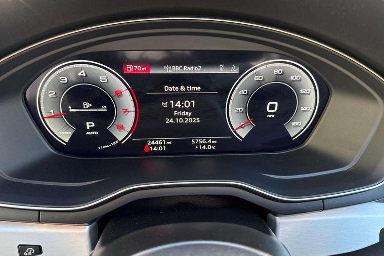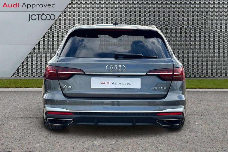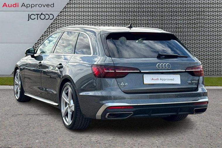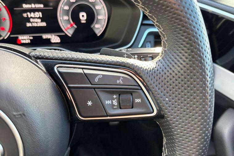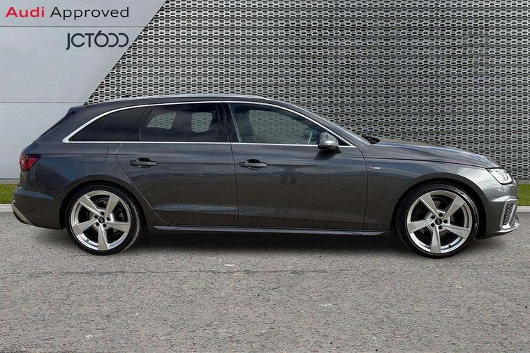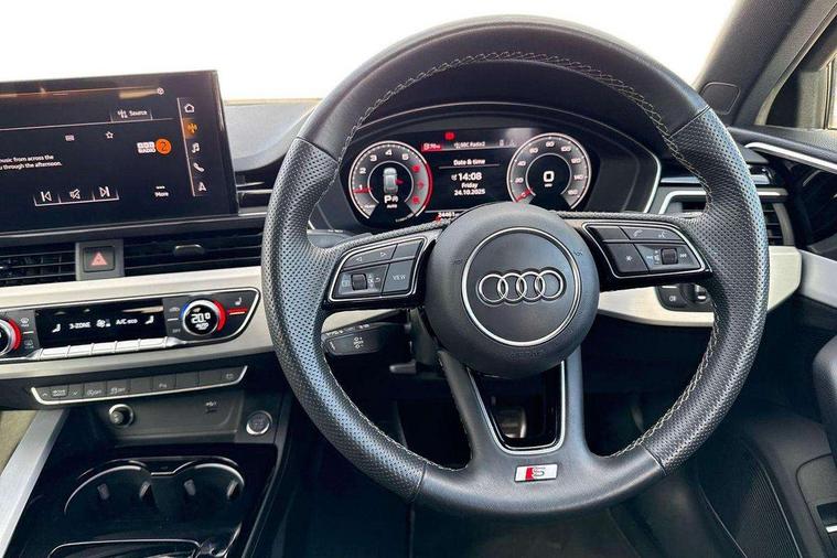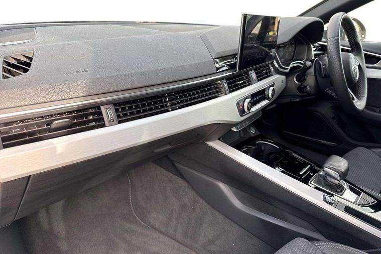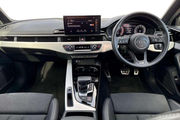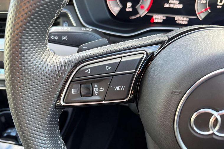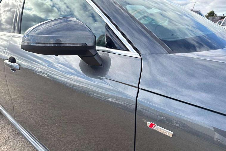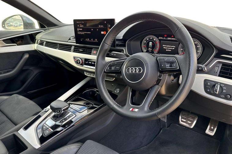 Audi connect safety and service (e-call), Audi connect with Amazon Alexa Integration, Audi drive select, Audi smartphone interface, Audi virtual cockpit, Automatic start-stop system with coasting functionality and efficiency programme, Bluetooth interface, Electromechanical power steering, Email, calendar and text messages displayed via MMI, MMI Navigation plus with MMI touch includes 10.1" high resolution colour MMI display, 3D map, Power operated tailgate, Voice control system, 54 litre fuel tank, Sports suspension lowered by 23mm, 2 USB charging ports, 8 passive loudspeakers, DAB digital radio reception, Aluminium roof rails, Auto dimming rear view mirror, Body colour door handles, Body colour front spoiler lip, Body colour side sill trim, Body coloured door mirrors, Electrically folding auto dimming/adjustable/heated door mirrors with LED side indicators and kerb view function for passenger side, Grained matt black side air inlets with matt aluminium silver inlay, High beam assistant, Honeycomb structure radiator grille in grained matt black, LED headlights with LED rear lights + dynamic rear indicators + headlight adjustment and high beam, turning light + LED daytime running lights, LED third brake light, Matt aluminium silver tailpipe trim, Privacy glass, Rain and light sensors, Rear side wing doors, Rear wiper, S Line badges on the front wings, S line front and rear bumpers with side skirts, S Line rear diffuser in matt anthracite black with trim strip in matt aluminium silver, S Line roof edge spoiler, Variable intermittent front wash/wipe, Windscreen with acoustic glazing, 3 spoke high multi-function sports leather steering wheel grips in perforated leather with S badging including paddle shift, 4 way electric lumbar support for driver and front passenger, 40/20/40 split folding 3 rear seat bench in 3 parts with rear centre armrest, Black cloth headlining, Black perforated leather gearknob, Contrast stitching on seats, steering wheel and gear lever gaiter, Deluxe 3 zone electronic climate control, Door sill trims with aluminium inlay, Electric load area cover, Front and rear head restraints, Front centre armrest, Heated front seats, Illuminated door sill trims with S logo, ISOFIX child seat mounting and top tether, Manual seat adjustment, Single front passenger seat, Stainless steel pedals and foot rest, High gloss package - A4, LED Interior light pack - A4/S4, 3 rear seatbelts, 6 airbags - Driver, front passenger, curtain and side windows, Electronic Stabilisation Control (ESC) including ABS, ASR and EDL, Hill hold assist, Multi collision brake assist, Pop-up bonnet for pedestrian protection, Pre sense city, Rear door child safety locks, Seatbelt monitoring, Warning triangle and first aid kit, Anti theft alarm, Anti theft wheel bolts, Central locking, Keyless Go, Matt brushed aluminium inlays, Tool kit, Tyre repair kit,