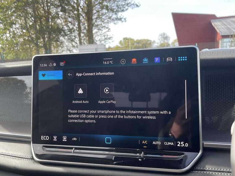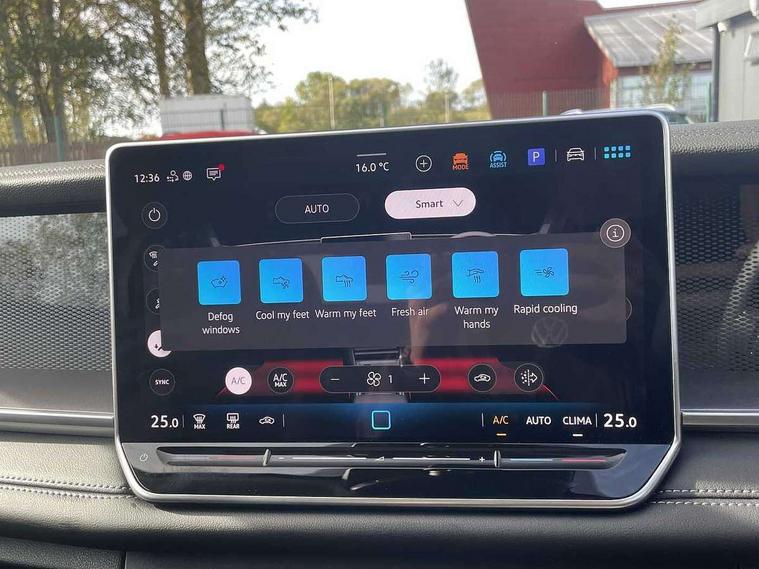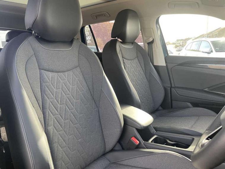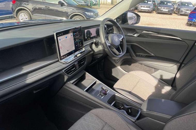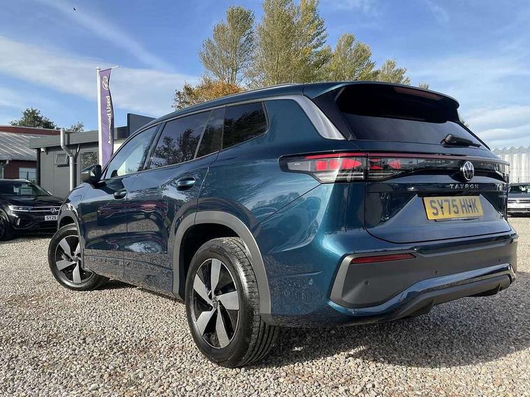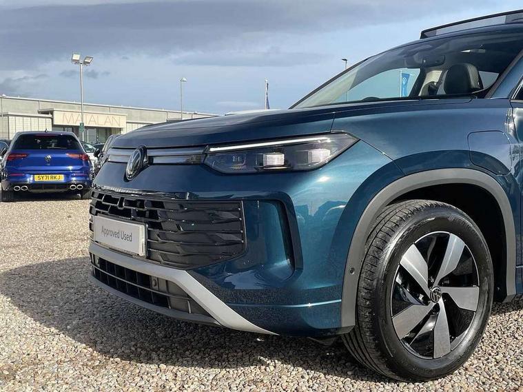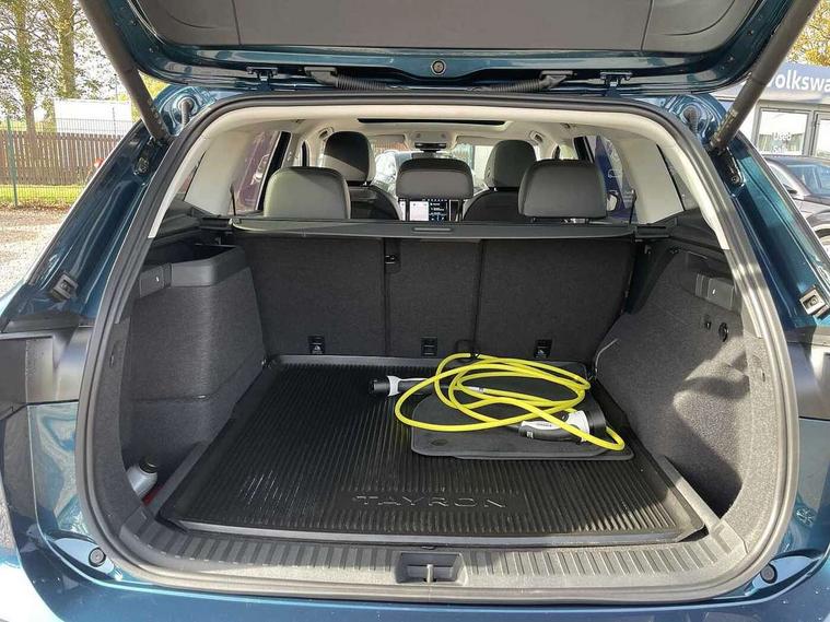 Adaptive cruise control (ACC), Digital Cockpit Pro - 10.25" high resolution dash display screen with customisable menus and information, Driver alert system, Driver attention monitoring system, Dynamic road sign display, E-Sim card for online connectivity, eCall emergency call system, Lane change system, Side assist, Rear traffic alert and Exit warning system, Multifunction front facing camera, Oncoming vehicle braking when turning including swerve support, Power assisted steering with speed sensitive, Start/stop system with regenerative braking, Voice activation spoken voice commands for telephone and navigation system, Warning signal and warning light for front and rear seatbelts not fastened, Wireless App-Connect, Adaptive chassis control DCC pro includes driving mode selection, Charging cable Mode 2 Type 2 / G (10A), Charging cable Mode 3 Type 2 / 3 (16A), Front shock absorption G08, Front wheel drive, Rear shock absorption, Digital radio reception (DAB), Diversity antenna for FM reception, Auto dimming interior rear view mirror, Automatic headlight control system, Body colour door handles, Body-coloured exterior mirror housings, Chrome moldings on the side windows, Comfort bumpers, Coming/leaving home lighting function, Exterior mirrors convex on the left and aspherical on the right, Heat insulating glass in side and rear windows, Laminated safety glass winshield, heat insulating, LED 3rd brake light, Puddle lights, Rain sensor windscreen wipers, Rear fog light on one side, reversing light on both sides, Rear side wing doors, Rear wiper, Reverse activated passenger's door mirror, Surround lighting with welcome light, Tilting and sliding panoramic sunroof with rear panoramic sunroof, 12V outlet in center console rear and in luggage compartment, 3 rear headrests, 3 rear seat bench in 2nd row, split folding, longitudinally movable and folding with load-through hatch, Carpet mats, front and rear, Centre console with illuminated storage compartment with sliding cover and two drinks holders, Door and side trim panel with leatherette insert, Flat luggage compartment floor, Front centre armrest, ISOFIX anchors for child seats on outer rear seats and front passenger seat compatible with i-Size, Mechanical rear seat release, Power adjustable lumbar support in front, Single front passenger seat, Sun visors with illuminated vanity mirrors, Comfort package with park assist pro - Tayron, 3 Point seat belts in front with pretensioners, 3 point seatbelts in outer rear with ECE label, Autonomous emergency braking front assist with pedestrian and cyclist monitoring, Driver and front passenger airbag with front passenger airbag deactivation, Electronic parking brake with auto hold, First aid kit with warning triangle and safety vest, Front and rear curtain airbags, Front and rear side airbags, Front centre airbag, Front disc brakes, Hill start assist, Rear disc brakes, Two tone horn, Decorative material set, Tool kit for tyre mobility set, Tyre mobility kit including compressor and sealing foam. In lieu of spare wheel,