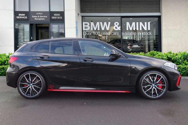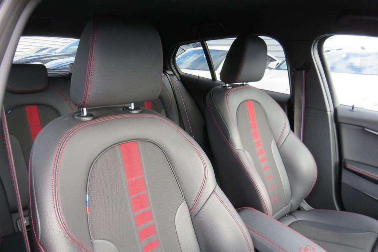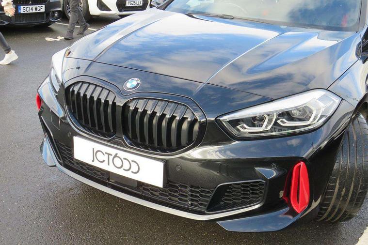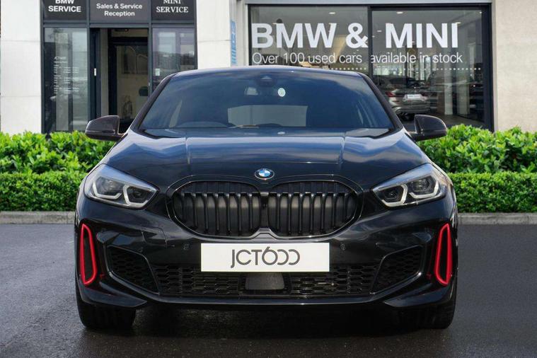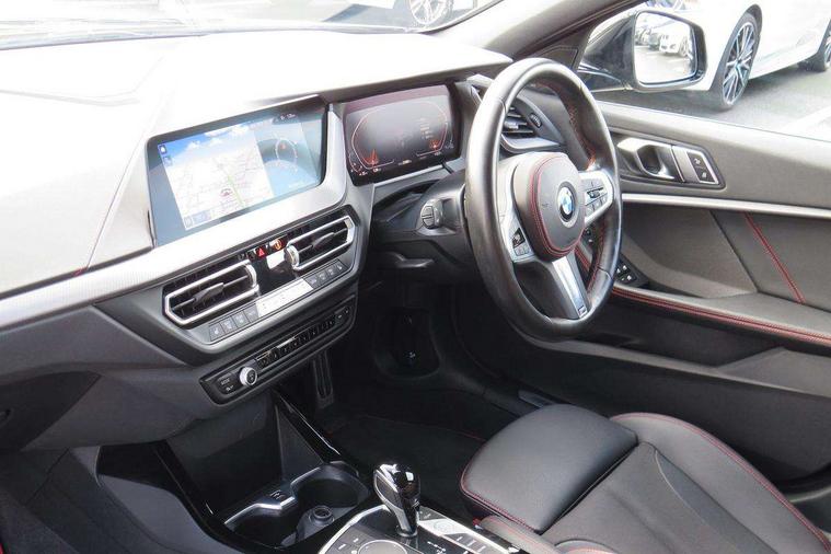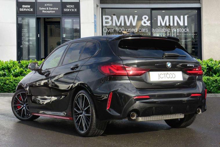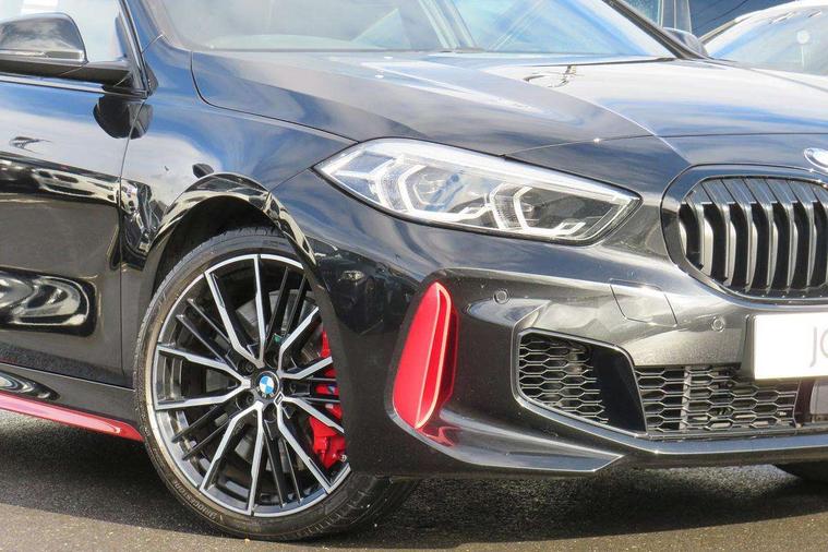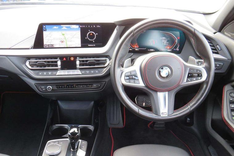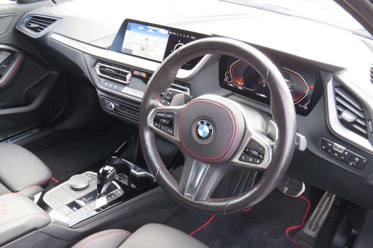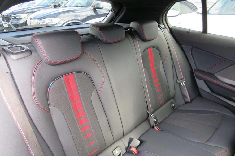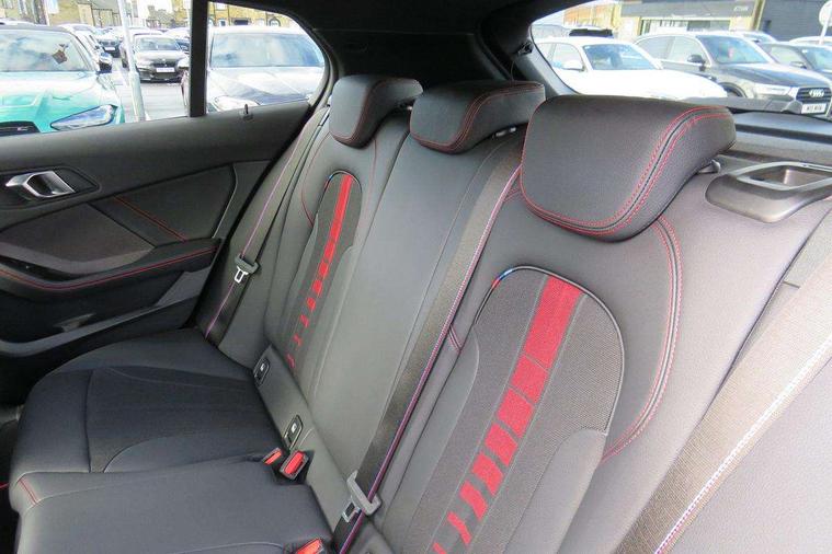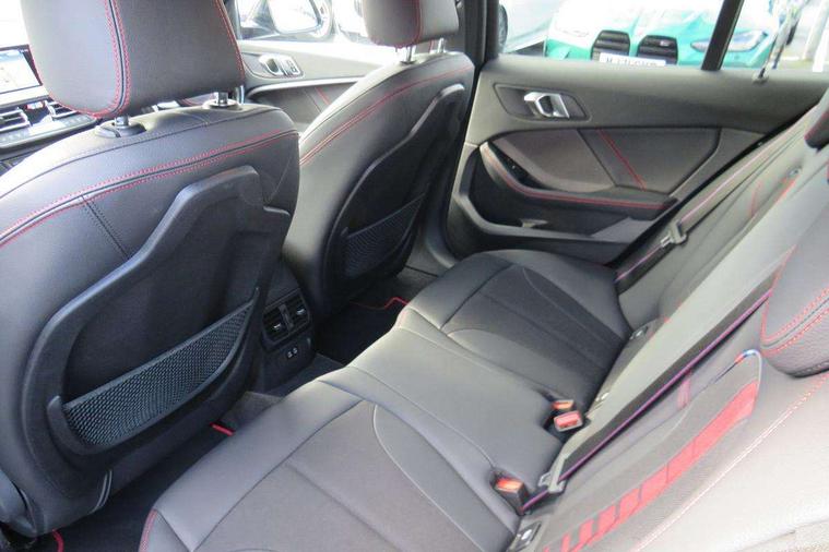 Active guard plus, Attentiveness assist, BMW ConnectedDrive online services, BMW Teleservices, Check Control warning system for monitoring of lights and door/luggage compartment open warning, Cruise control with brake assist, Eco pro mode, Electric power steering with Servotronic steering optimised at all speed ranges, Front axle single joint with specific axle kinematics to minimise drive influences on steering + provide increased rigidity agile driving behaviour, Integrated owners handbook, Lane departure warning system, Oil sensor for level and grade, On board computer, Optimum shift indicator, Personal Profile, Pull away assistant, Rigidly mounted rear subframe - Multi link construction with separate spring / damper configuration and excellent driving characteristics, Speed limit Info including no-overtaking indicator, Speed limiter, Aluminium lightweight construction, Anti roll bar front and rear, Balancer shaft, Double VANOS twin scroll turbocharging system, Drive Performance Control, Eight speed sport automatic transmission with gearshift paddle switches, Electronic differential lock, High precision injection, Larger fuel tank capacity (50 litres), M sport suspension with M128i xDrive specific settings, Petrol Particulate Filter, Twin tube gas filled shock absorbers with degressive characteristic curve, VALVETRONIC engine management, DAB Digital radio, Auto dimming rear view mirror, Automatic headlight beam throw control, Automatic windscreen wipers and automatic headlight, Black chrome tailpipe finishers, BMW individual high gloss shadow line with extended content, Body colour door handles, Body colour mirror caps, Body colour roof trims, Chrome 'M' logo side designation, Chrome kidney grille frame with Satin Aluminium struts, Direction indicator side lights in exterior mirrors, Fading support, Folding side mirrors with auto dimming/folding wing mirrors with auto dimming, Follow me home headlights, Front and rear bumper system with replaceable deformation elements, Front and rear electric windows with open and close fingertip control, anti trap facility and comfort closing, Front door sill finishers in black plastic with M designation in metallic look, Green tinted heat protection glazing, Heated, electrically adjustable exterior mirror aspheric on driver side, convex on passenger side, High gloss shadowline window frame, Recess cover mirror frames and B/C pillar embelisher trim, High level third brake light, Integrated front windscreen with washer jets, Kidney frame and struts in high gloss black extended, LED daytime running lights, LED eyebrow turn indicators, LED front fog lights, LED Headlights, Lightweight engineering, Matt black air guide grilles, Matt black wheel arch trim, Model designation on electric bootlid, Nearside reverse light in rear light cluster, Preparation for high beam assistant, Rear fog lights, Rear side wing doors, Rear window wiper, Shark fin antenna, Trailer stabilisation logic, Visible VIN plate, Welcome lighting, 12V power socket in front centre console with blanking plug, 3 rear seat head restraints, 3 seat bench in 2nd row, Anthracite headlining, Black boot net with lashing eyes, Cargo function on 2nd seat row, Centre armrest in black/red highlight including embroidered 'ti' designation in red, Child seat ISOFIX attachment for two outer rear seats and front passenger seat with anchorage points, Conditioned based service, Driver and front passenger seat heating, Floor mats with red binding, Folding rear clothes hook, Four grab handles integrated in roof lining, Front and rear door pockets with bottle holders, Front and rear side armrest integrated into door trim, Front armrest, Front sports seats, Glove compartment, Height adjustable front head restraints, Instrument panel top section , door armrests and door panels in black/red highlight, Luggage compartment for bag hooks on left and right, foldable luggage compartment liner and four lashing eyelets, Manual adjust steering wheel, Multi-function controls for steering wheel, Single front passenger seat, Storage compartment in centre console, Sun visors with vanity mirrors and insert tab, Three spoke M sport design multi function leather steering wheel in unique red stitching, Two front centre console cupholders, Two zone automatic air conditioning, Additional interior lighting pack - 1 Series, BMW live cockpit professional pack- 1 Series, Connected pack professional - 1 Series, Interior lights pack - 1 Series, M Sport exterior styling aerodynamics pack - 1 Series, 2 tone horn, 3 point seatbelts on all seats, front pyrotechnic belt tensioners, stopper and belt force limiters, rear coded belt buckles, Airbags - Front driver/passenger, front and rear curtain head protection, front side, manual deactivation of front passenger airbag, Anti lock braking system (ABS) with brake assist, BMW emergency call, Brake drying, Braking readiness, Child proof locking system in rear door, City braking function, Comfort modes, Cornering brake control, Crash sensor activating central locking release, hazard warning lights, fuel cut off, interior lighting + activation of safety battery terminal clamp, Driver and front passenger seat belt security check, Dynamic stability control + (DSC+), Dynamic Traction Control - DTC, Electrically operated hand brake including automatic hold function, Front and rear disc brakes, M Sport brakes with red calipers, M Sport seatbelts, Seatbelt warning, Side impact protection, Tyre pressure monitoring system, Warning triangle and first aid kit, Central locking switch for all doors, fuel filler cap and luggage compartment, Deadlocking function system to all doors, Drive away locking system on all doors and luggage compartment with de-activated in iDrive settings, Locking wheel bolts, Remote control with integrated key with High-gloss Black inlay and M designation and 1 button for open/ close lock, window, open luggage compartment, Start/stop button illuminated in centre console with keyless e
